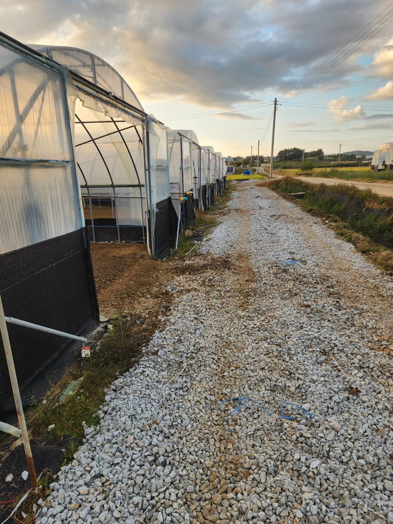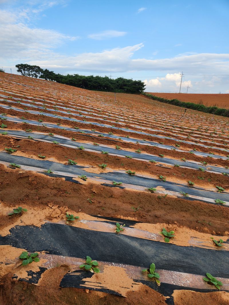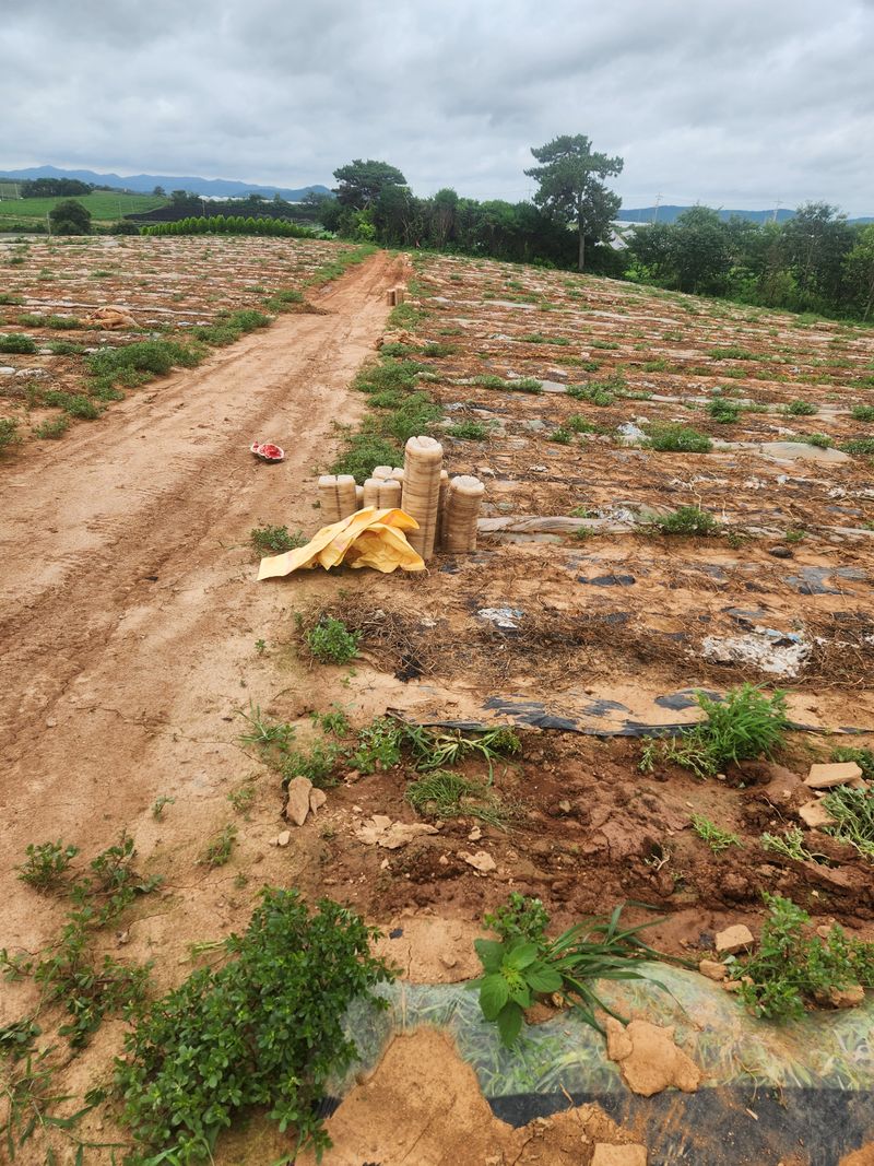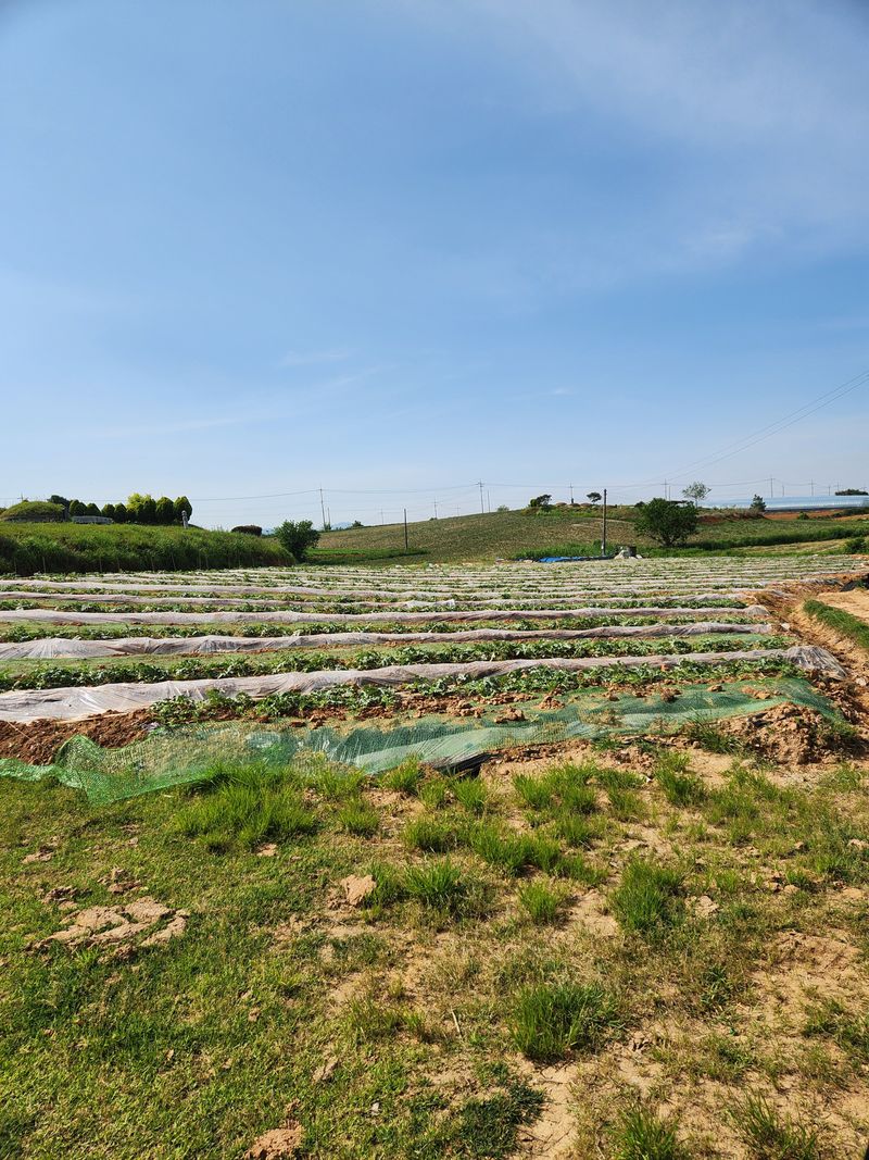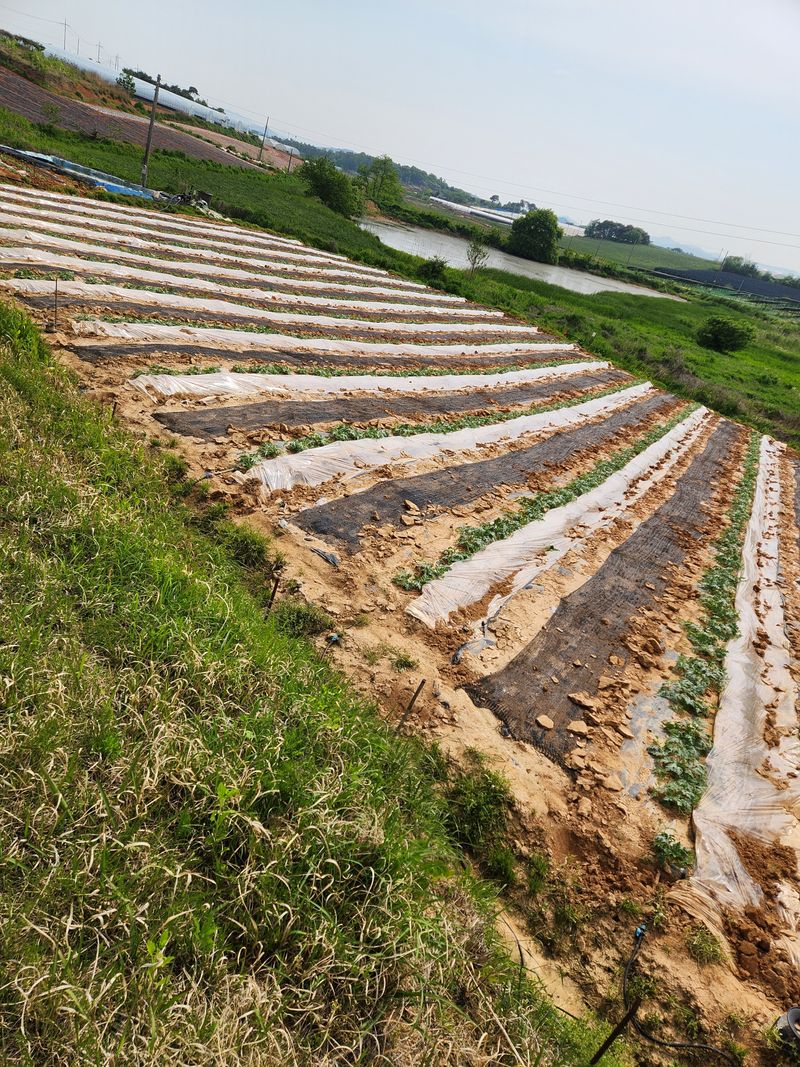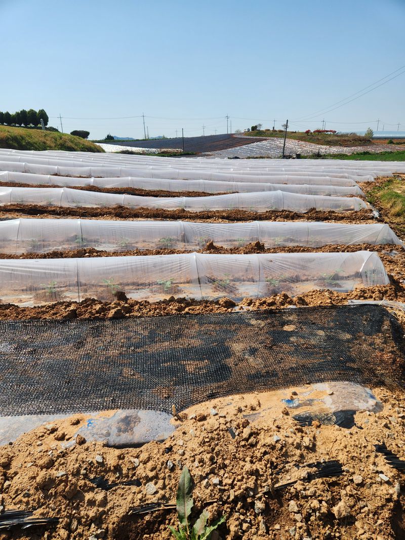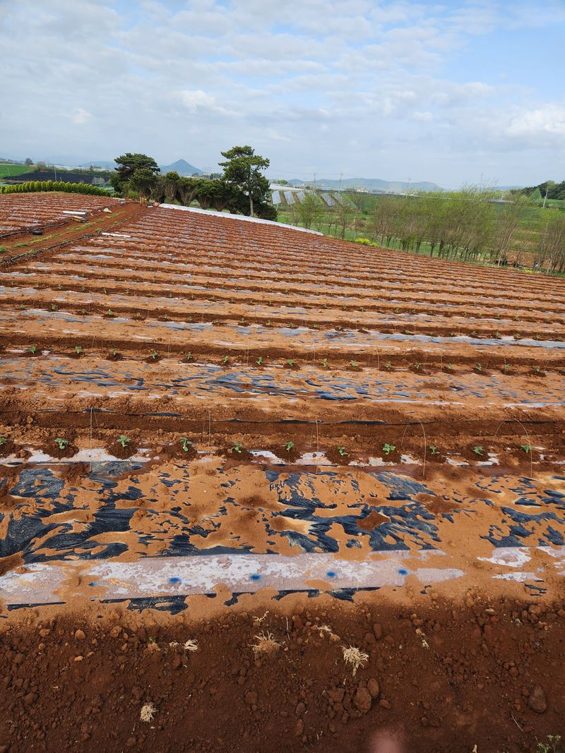 노지수박 온실밖 세상으로 나가기 위해 확기작업및 밭고랑 제초제 살포. 논 시설하우스 시공 2일ㅊㅏ