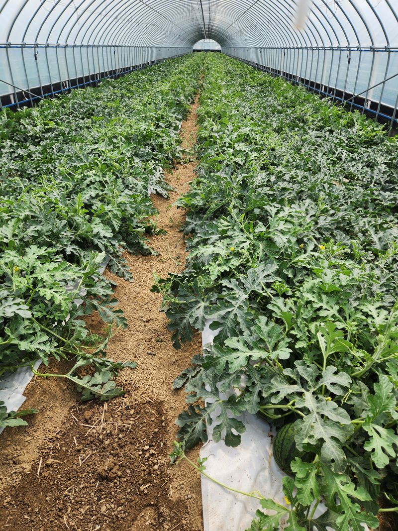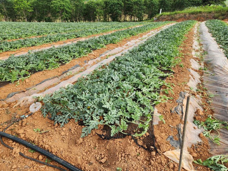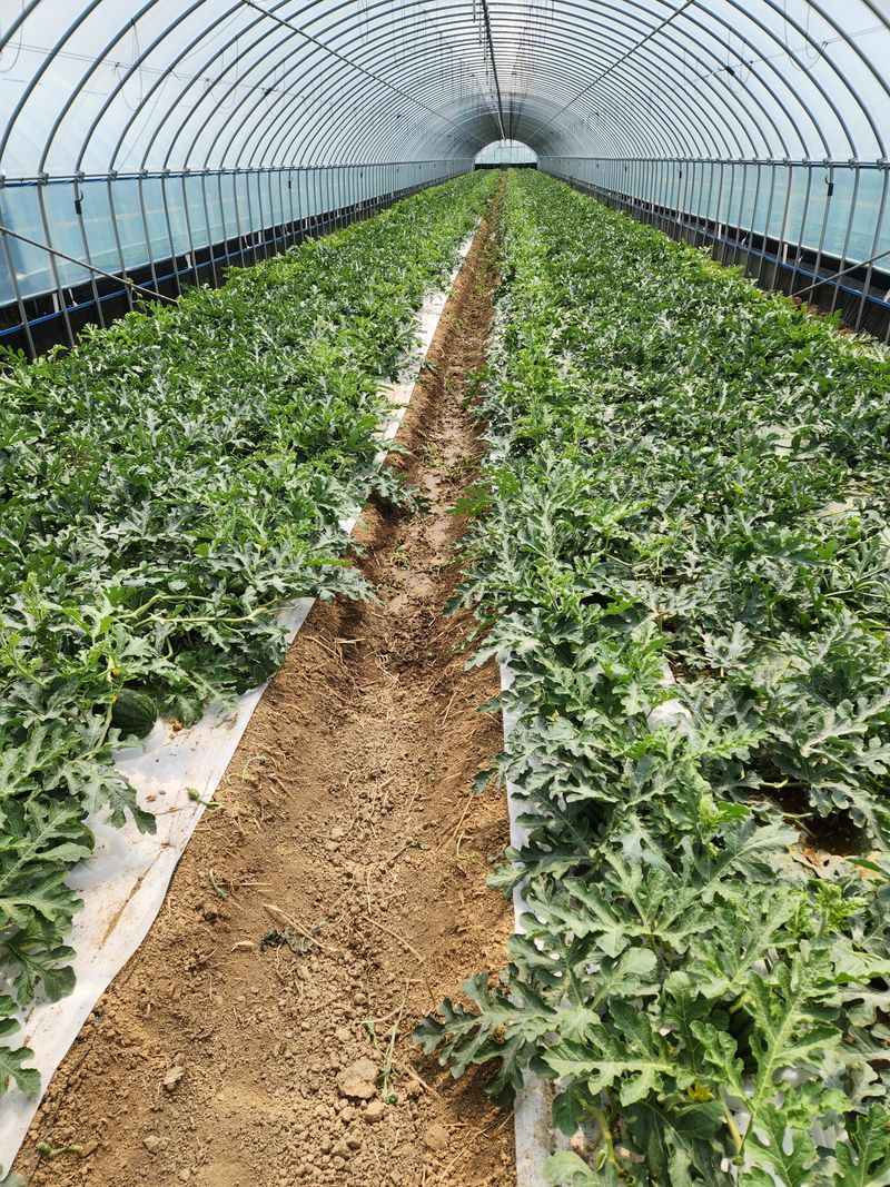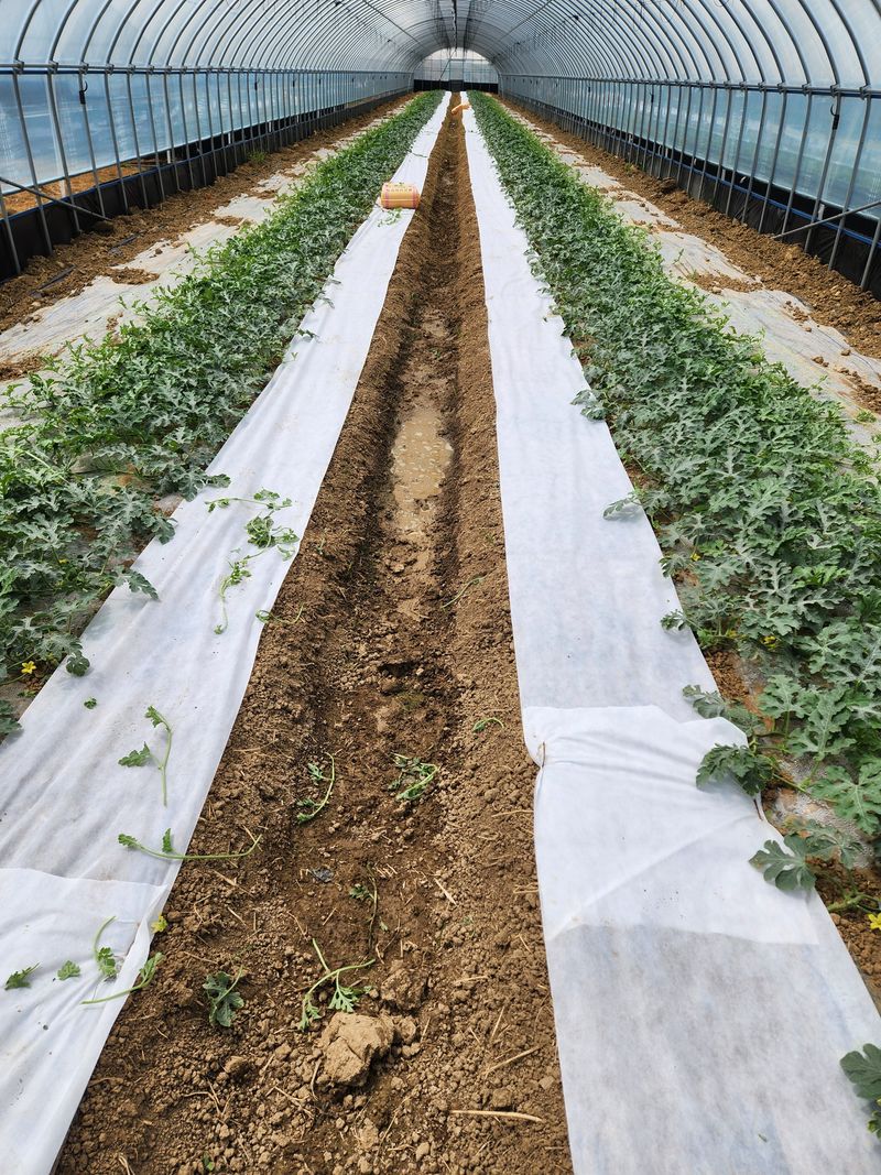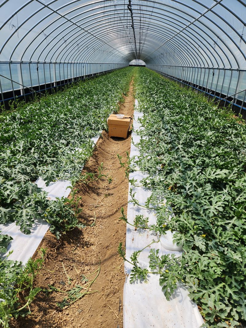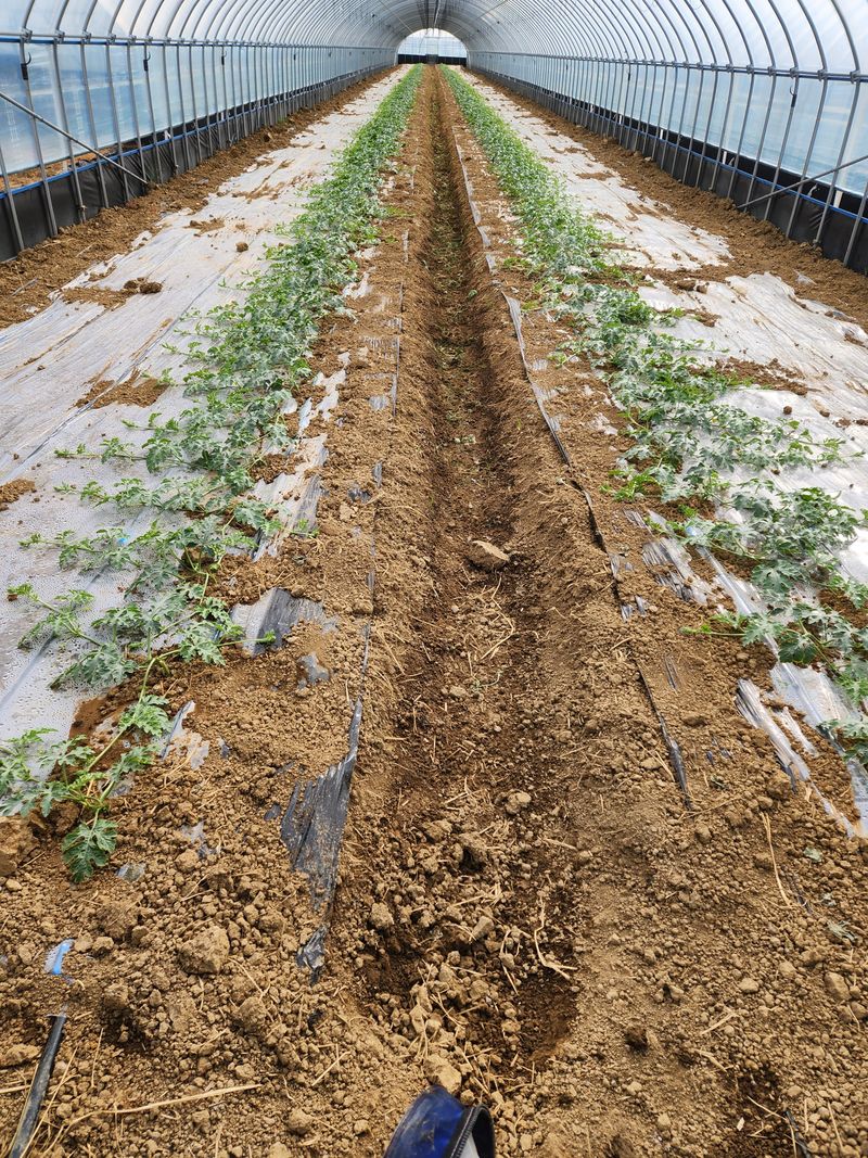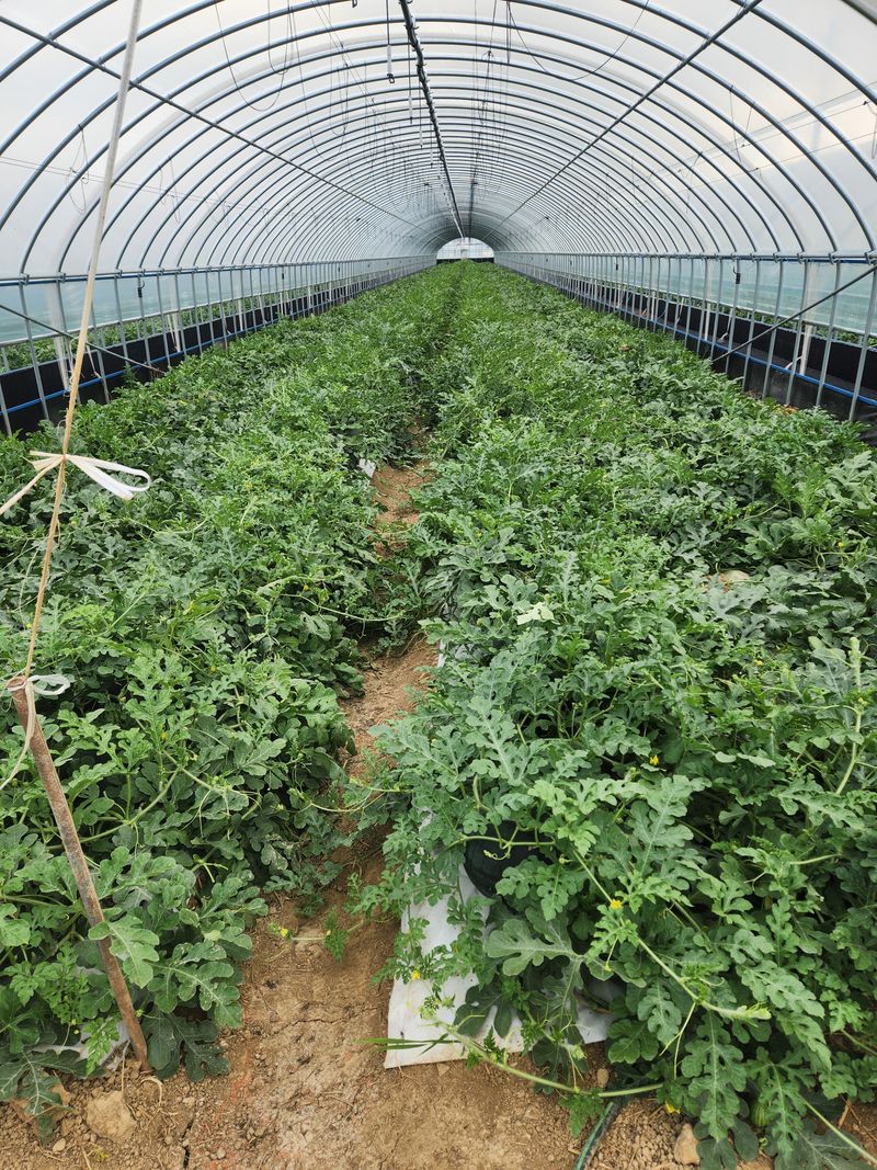 노지수박 생육상태 불량한것 골라서 영양제 살포작업. 논 시설하우스 시공완료