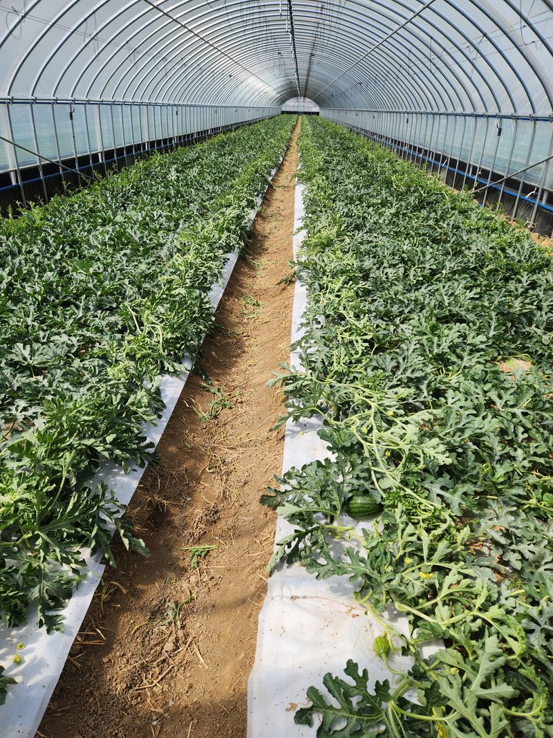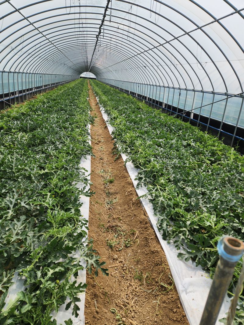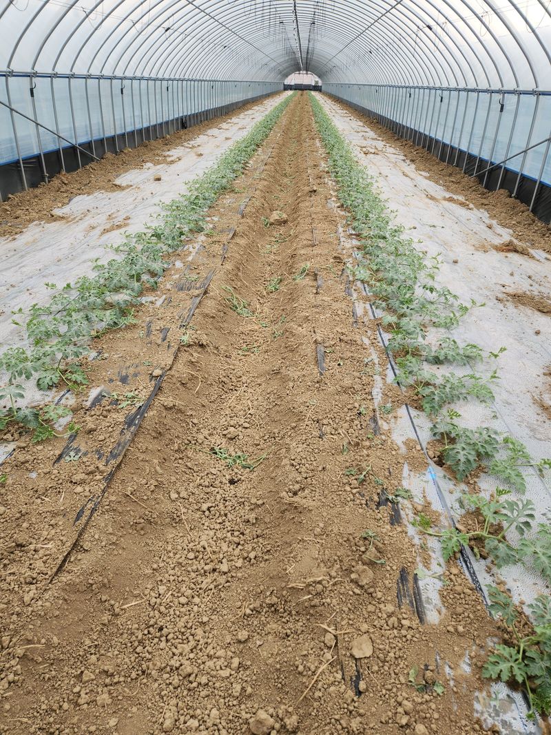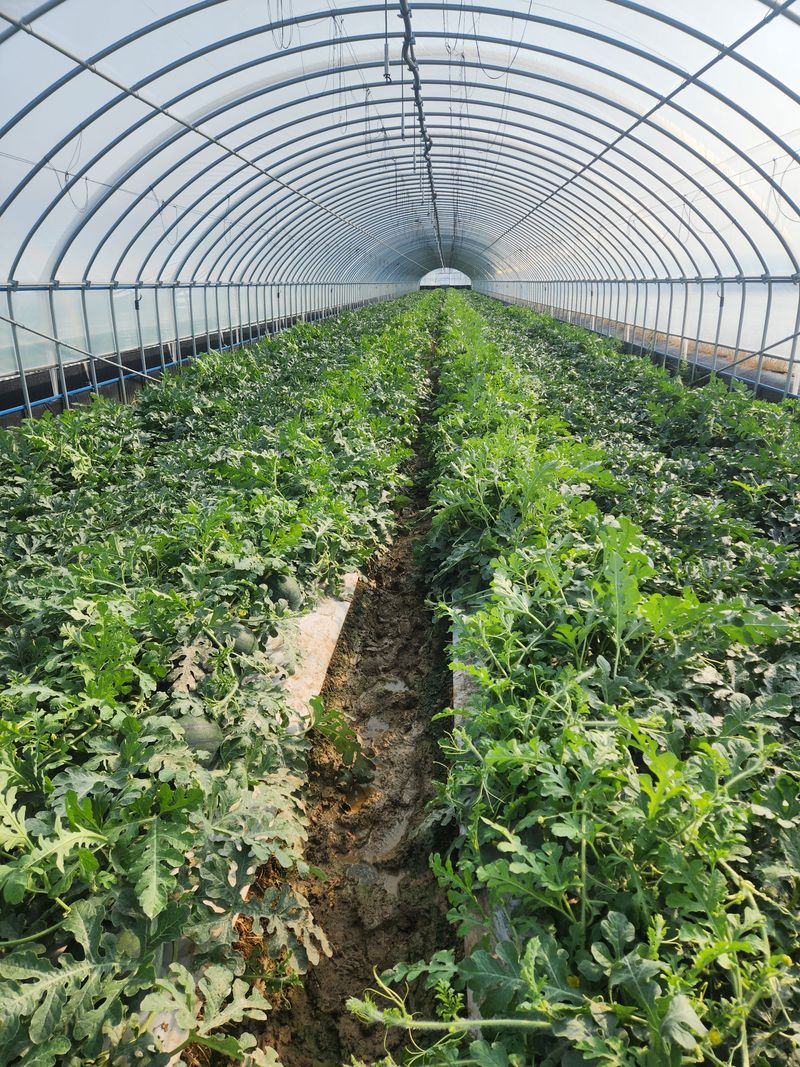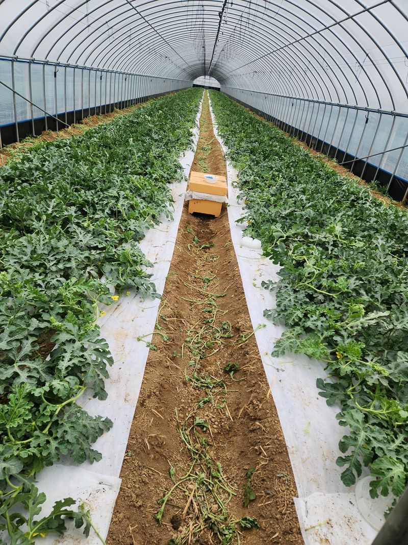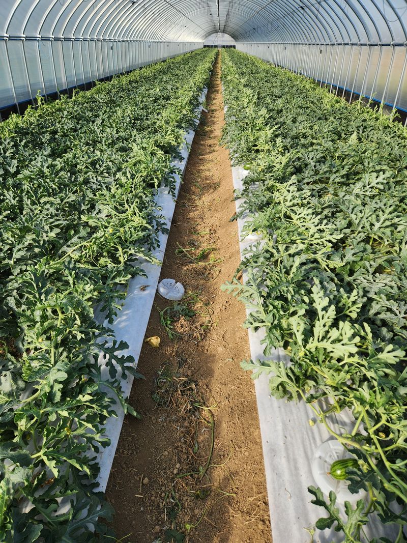 노지수박 생육상태 불량한것 골라서 영양제 살포작업. 논 시설하우스 시공완료