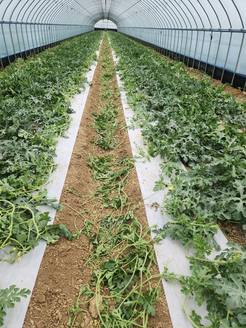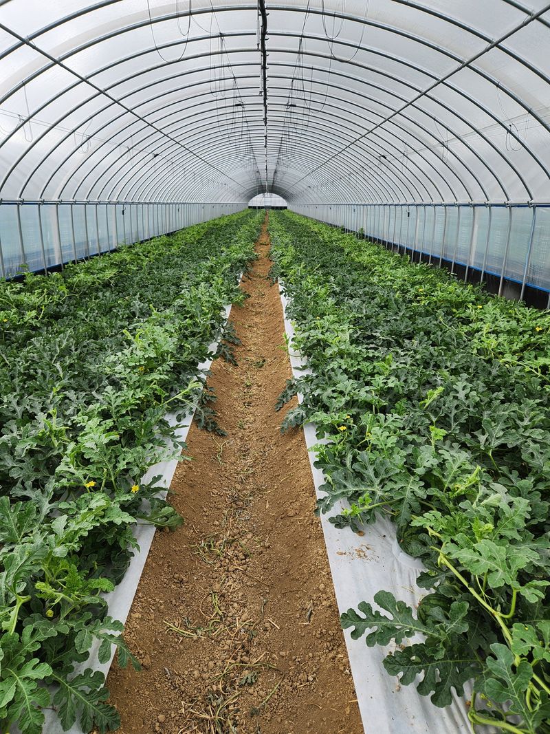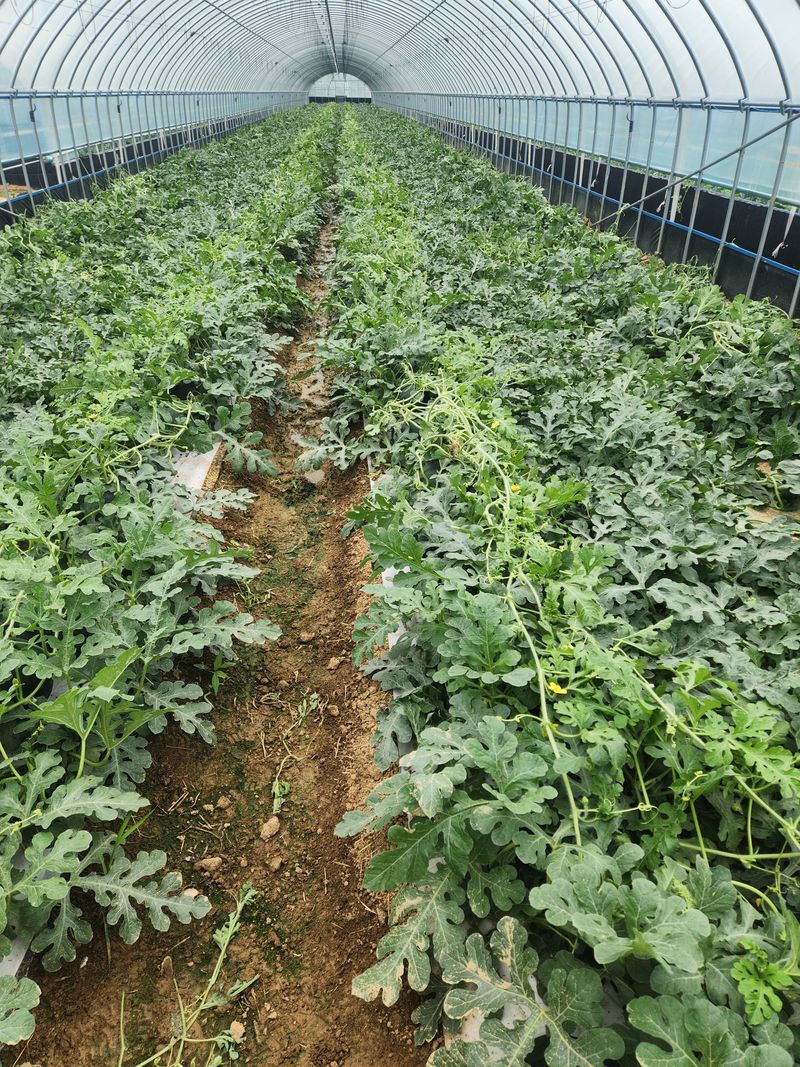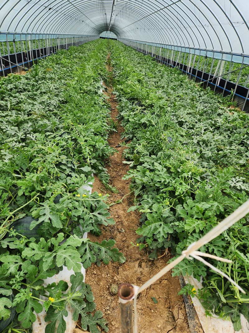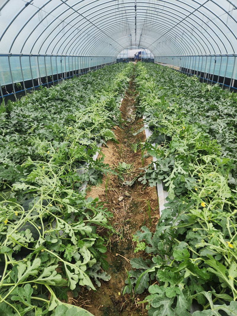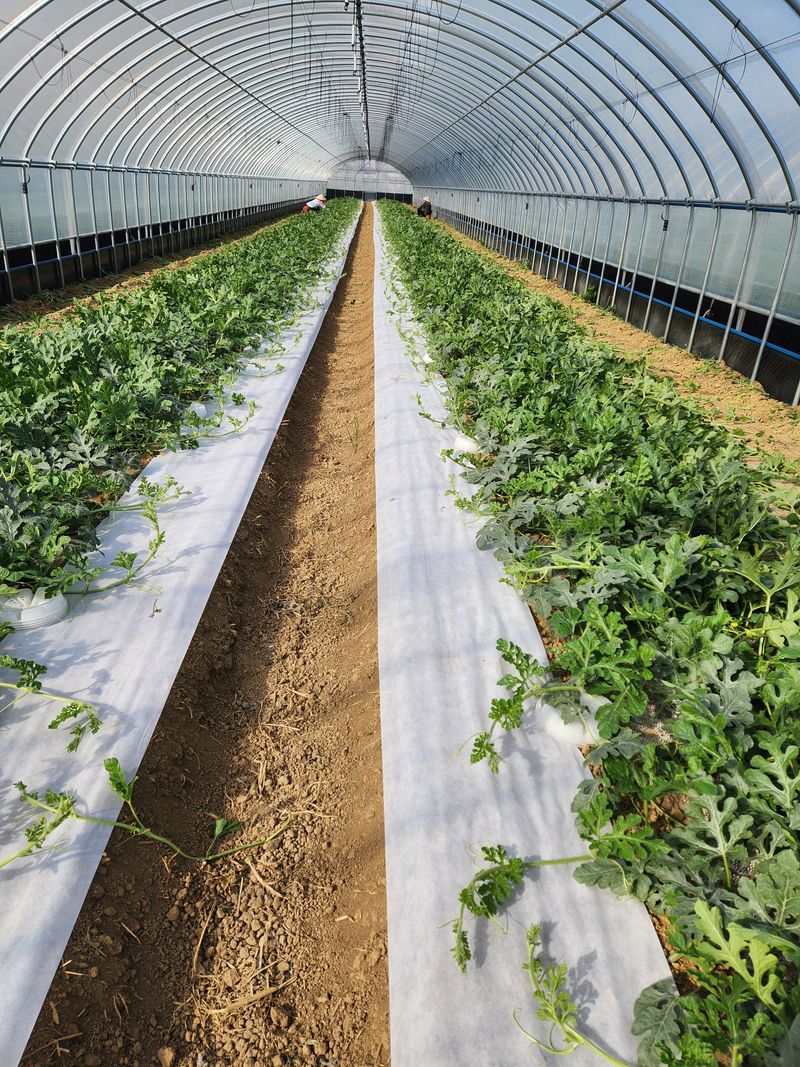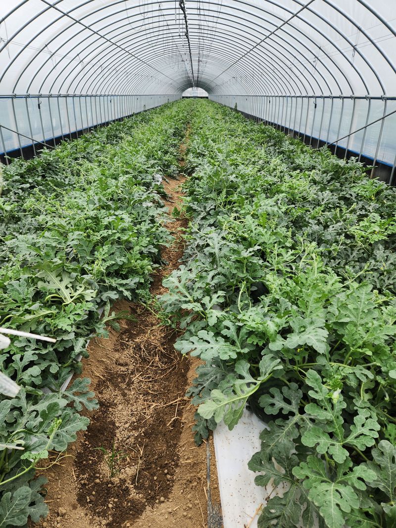 노지수박 생육상태 불량한것 골라서 영양제 살포작업. 논 시설하우스 시공완료