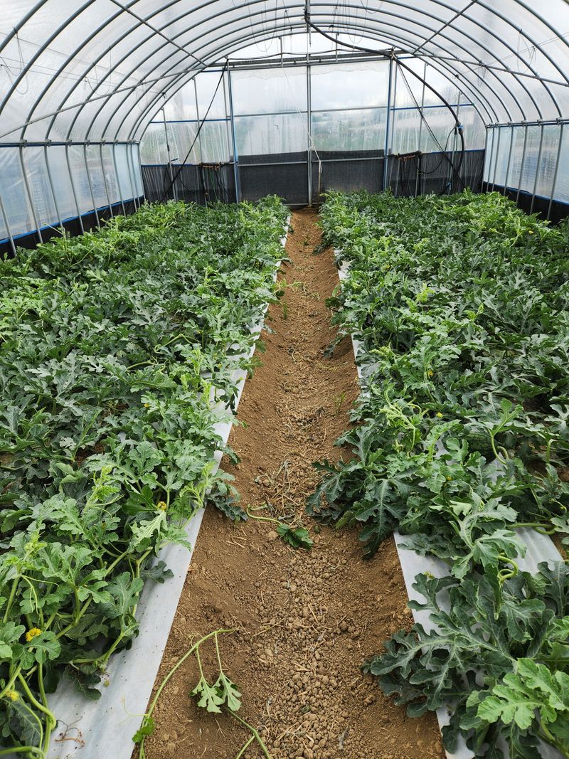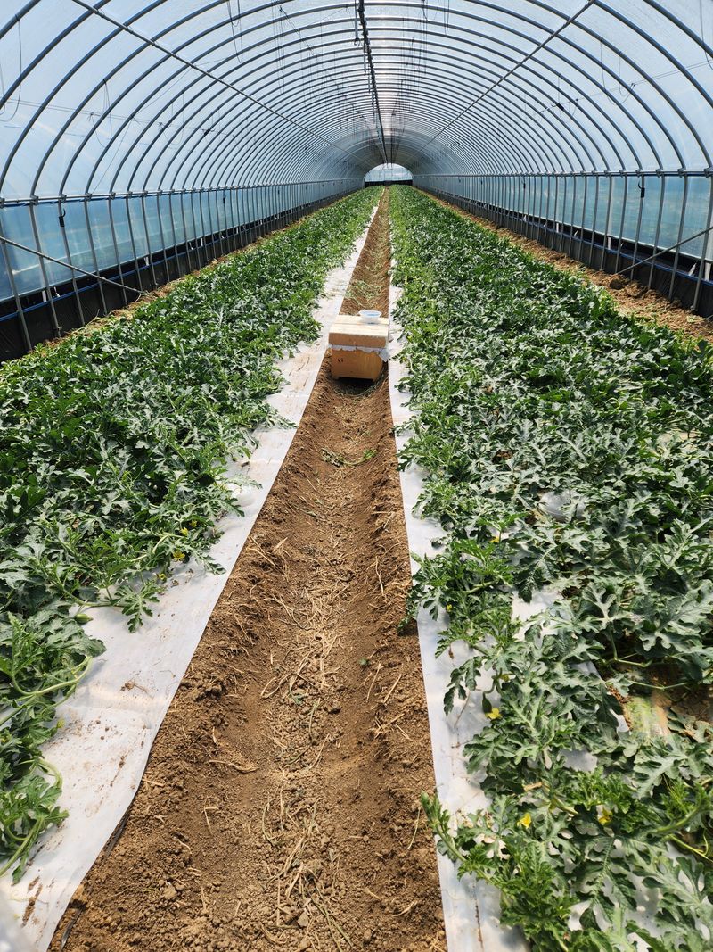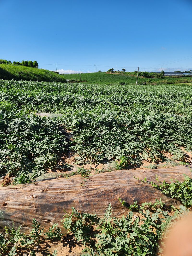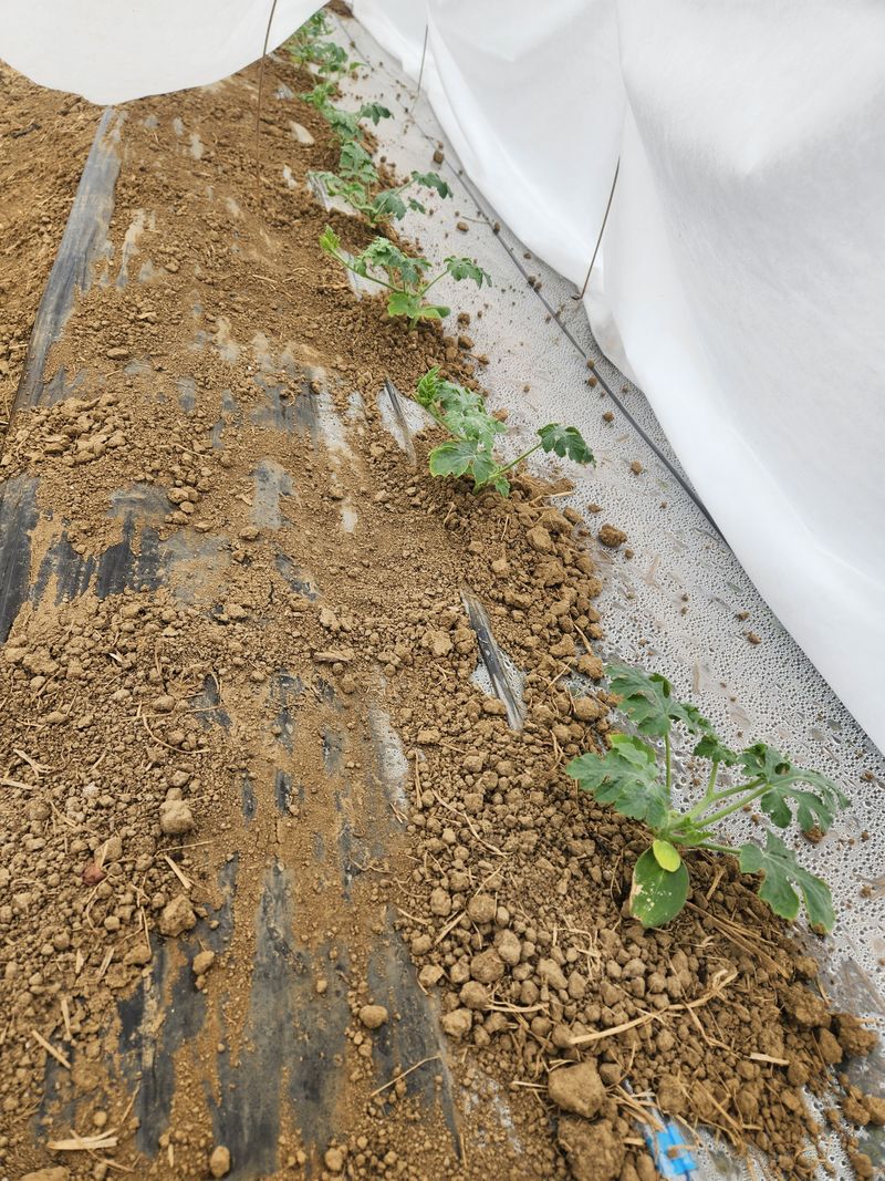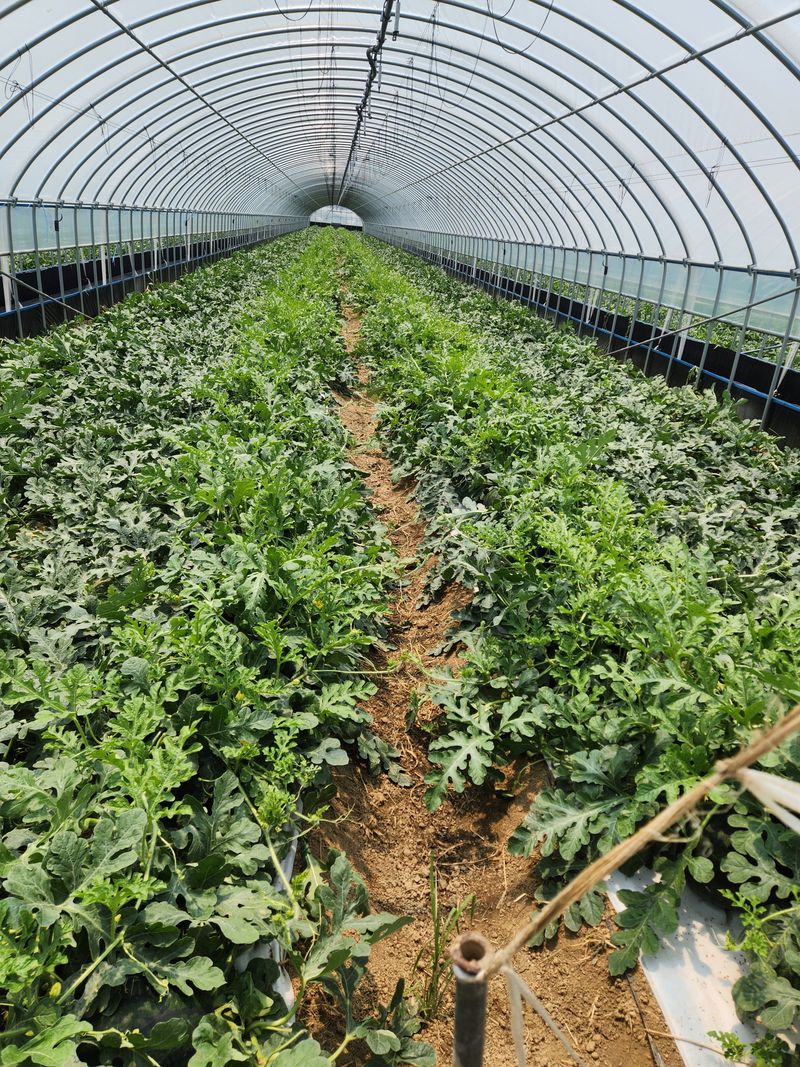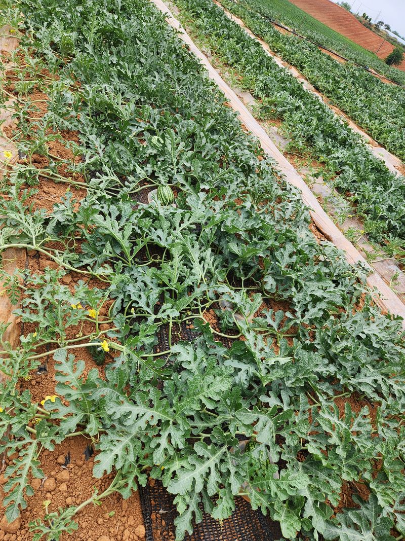 노지수박 생육상태 불량한것 골라서 영양제 살포작업. 논 시설하우스 시공완료