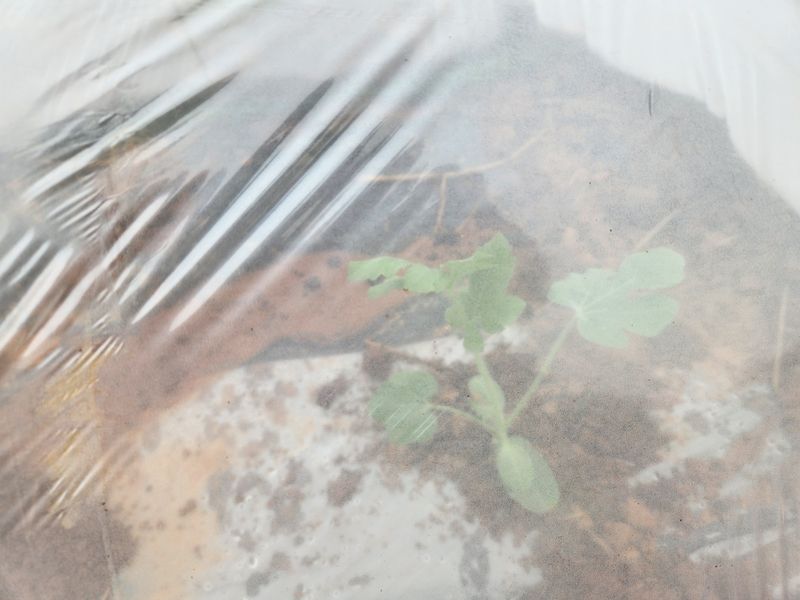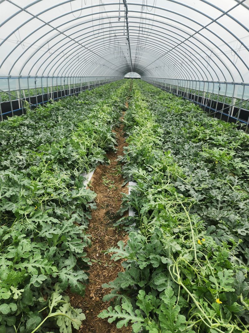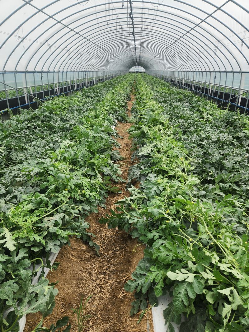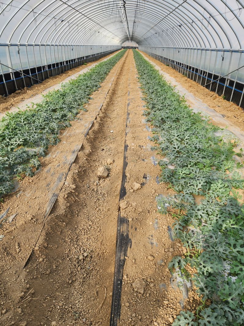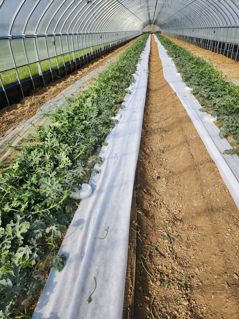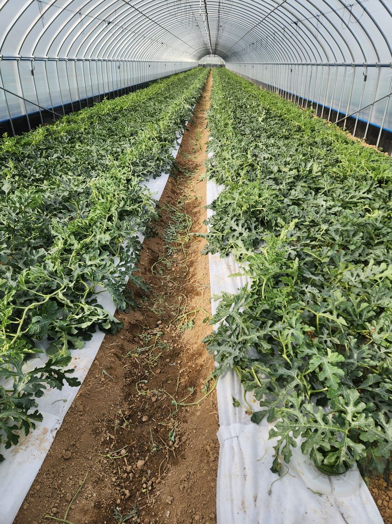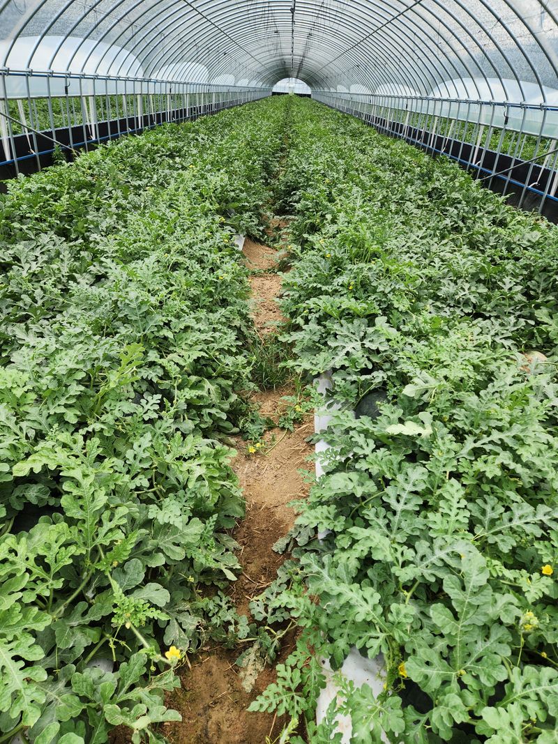 노지수박 생육상태 불량한것 골라서 영양제 살포작업. 논 시설하우스 시공완료