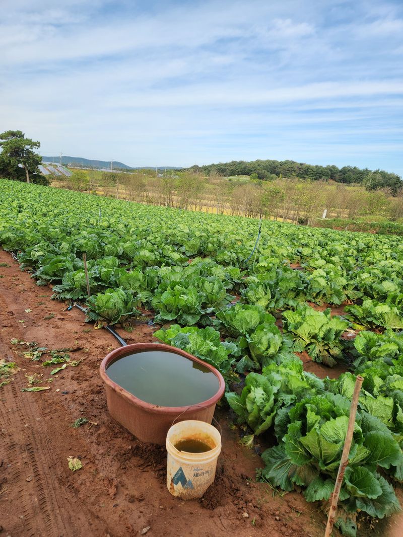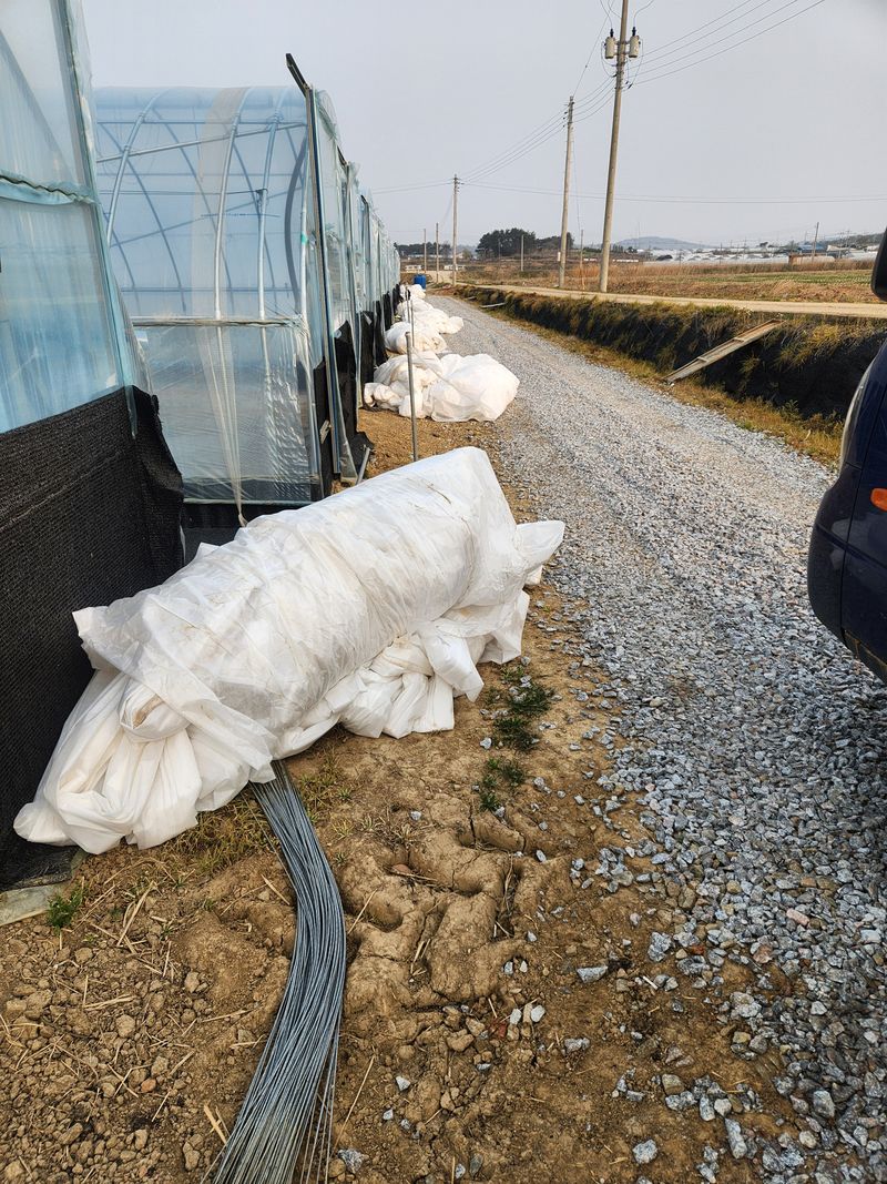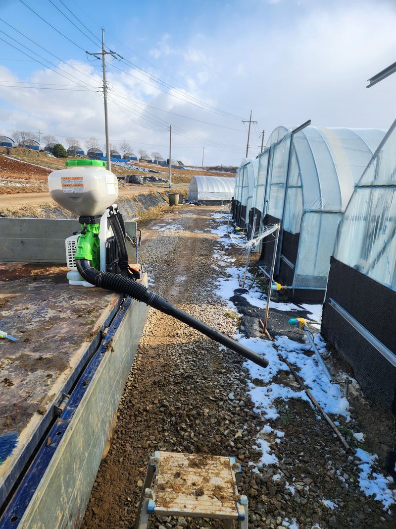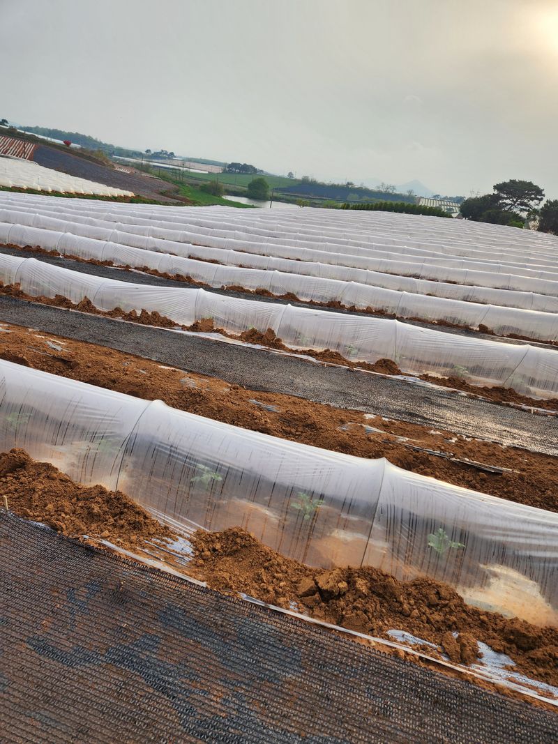 하우스 비니루 치기 작업. 남둥명투입. 노지배추 노균병.무름병 심한데 미생물.살균제 농약살포작업