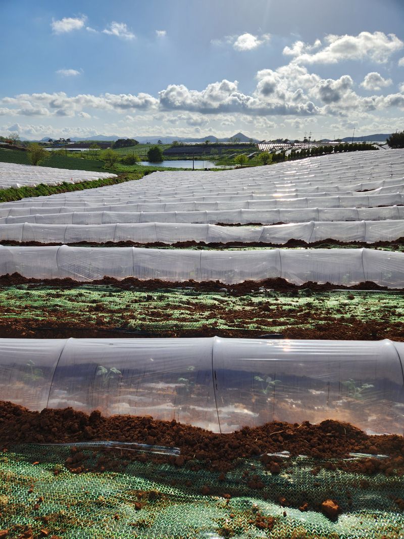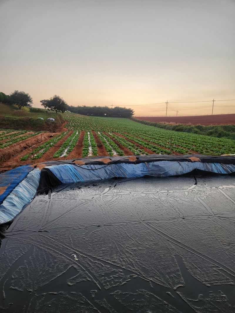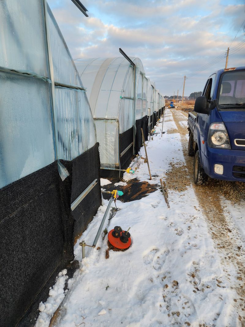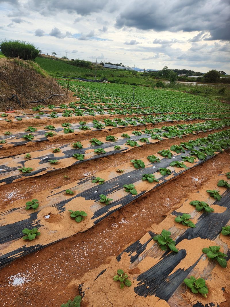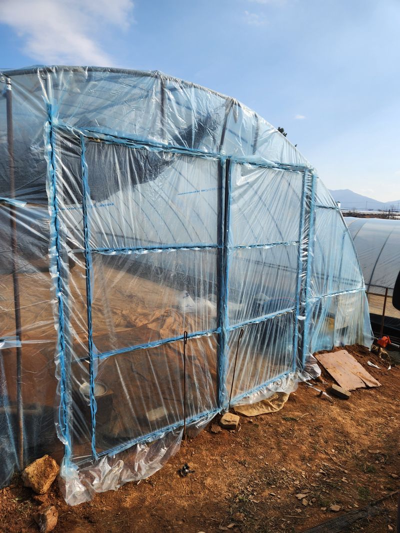 하우스 비니루 치기 작업. 남둥명투입. 노지배추 노균병.무름병 심한데 미생물.살균제 농약살포작업