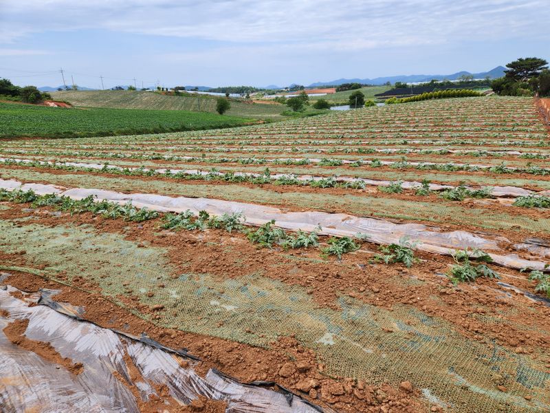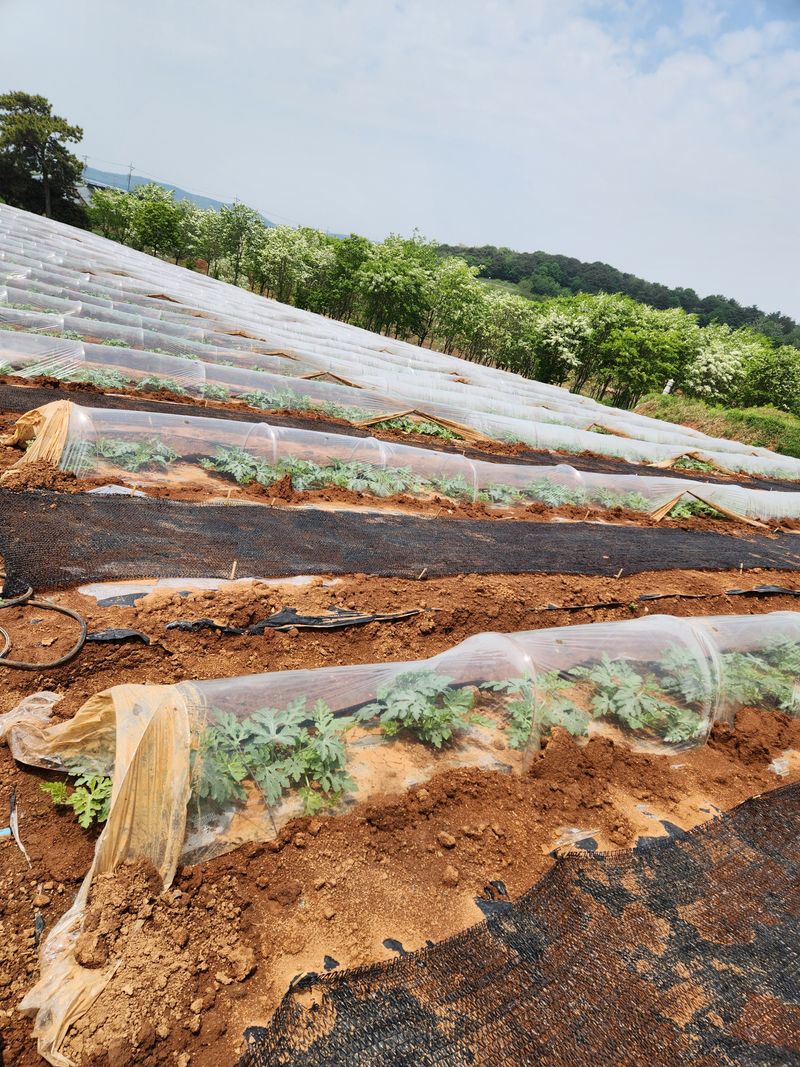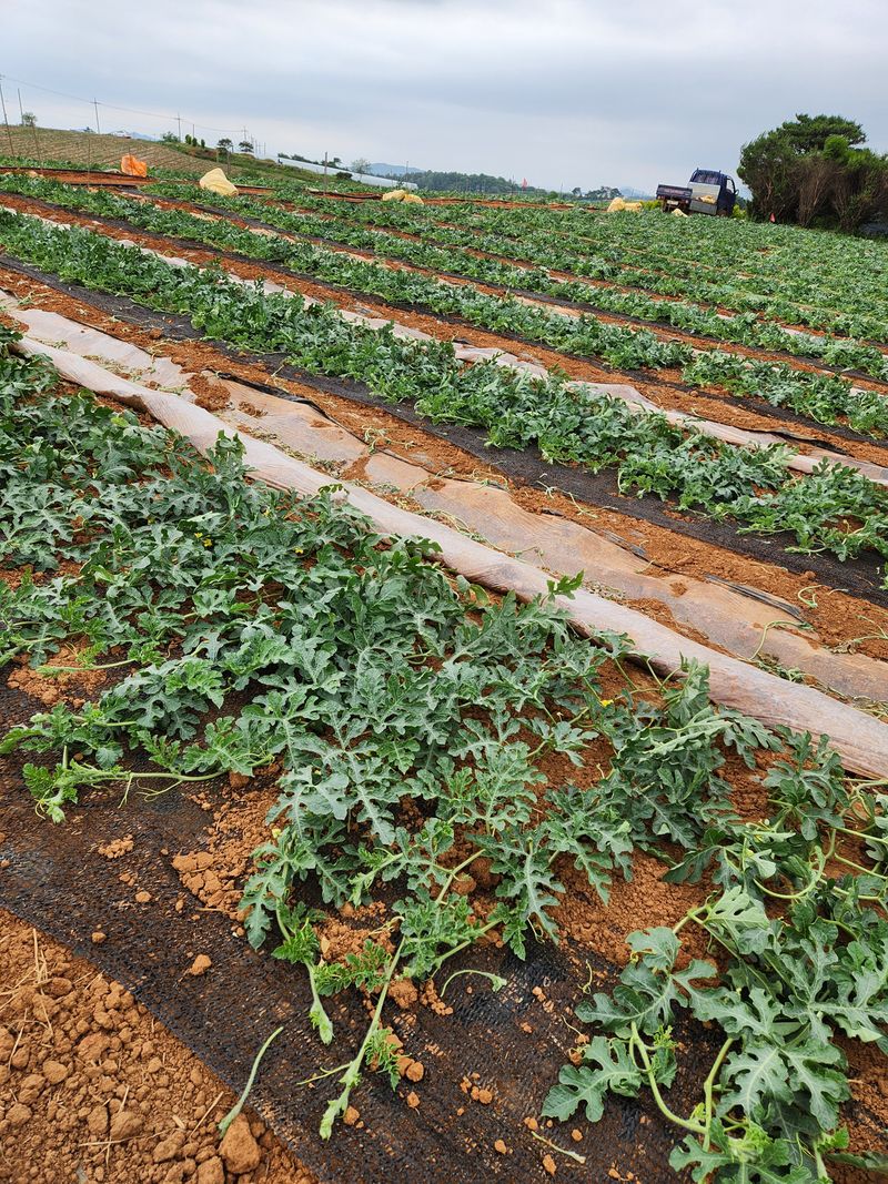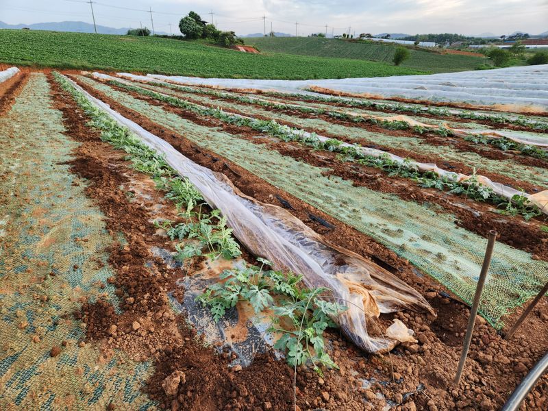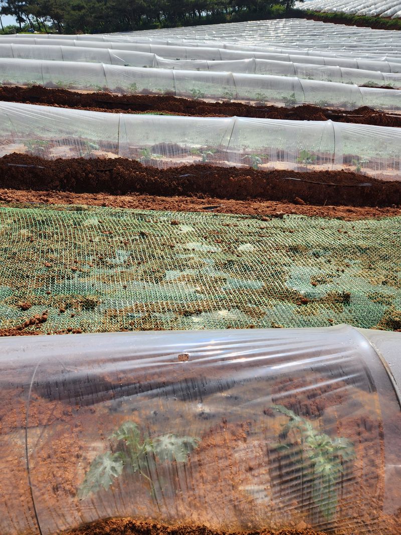 노지수박 마지막 농약살포작업. 하우스 메롱 모종 육묘장에서 배달옴 7,000주