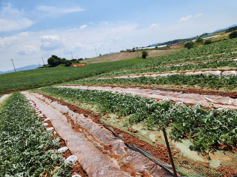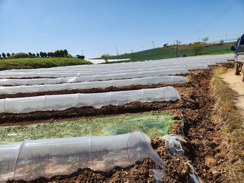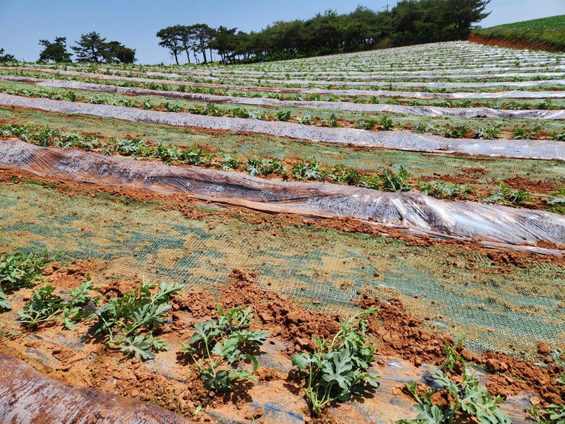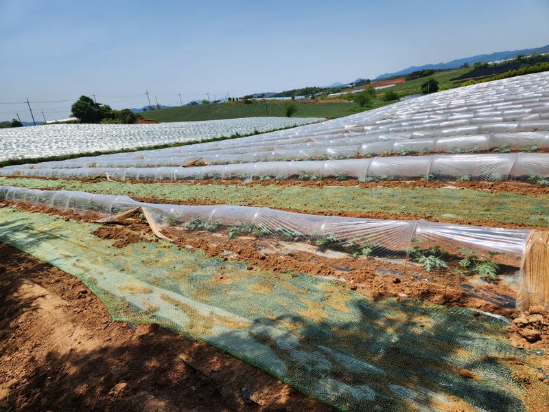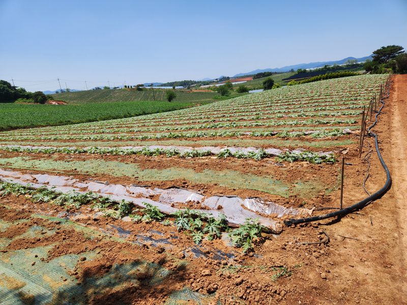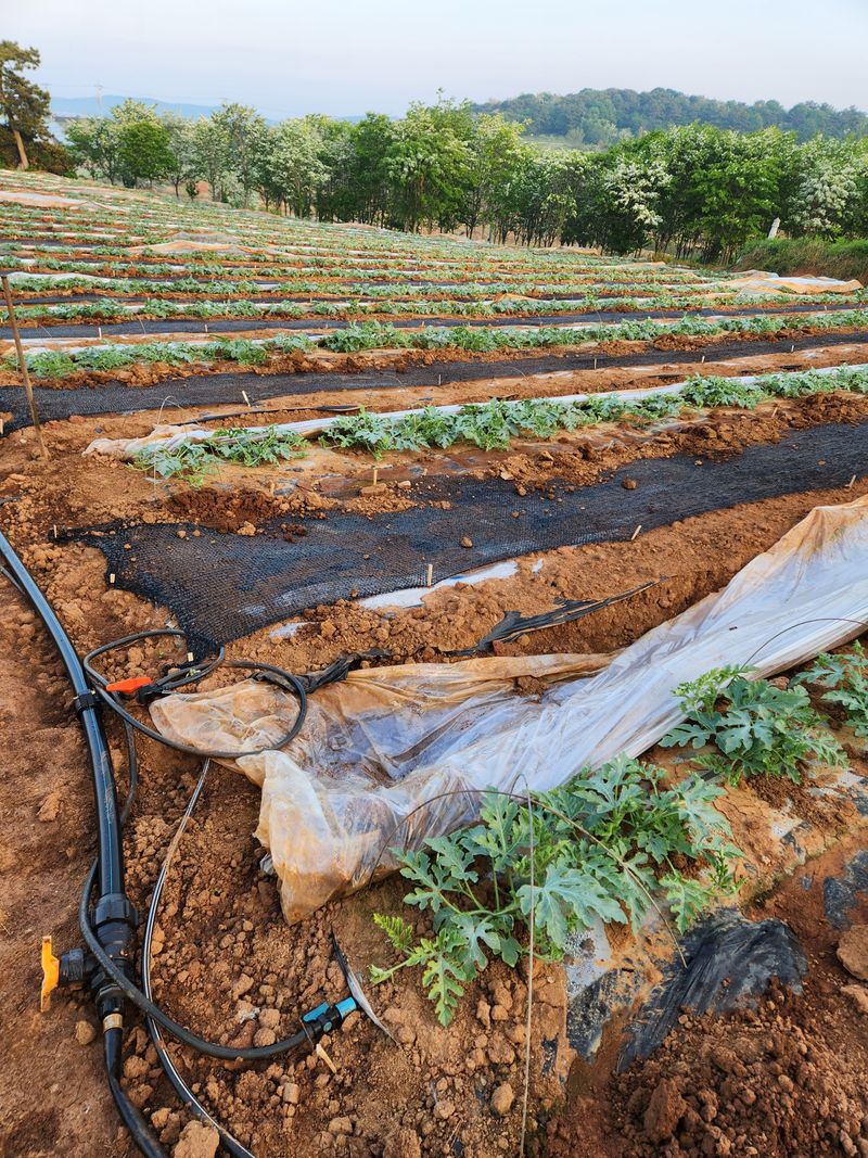 노지수박 마지막 농약살포작업. 하우스 메롱 모종 육묘장에서 배달옴 7,000주