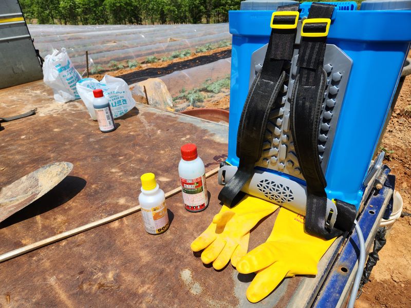 노지수박 농약살포작업.하우스 2기작 메롱 비료살충제 살포 준비작업