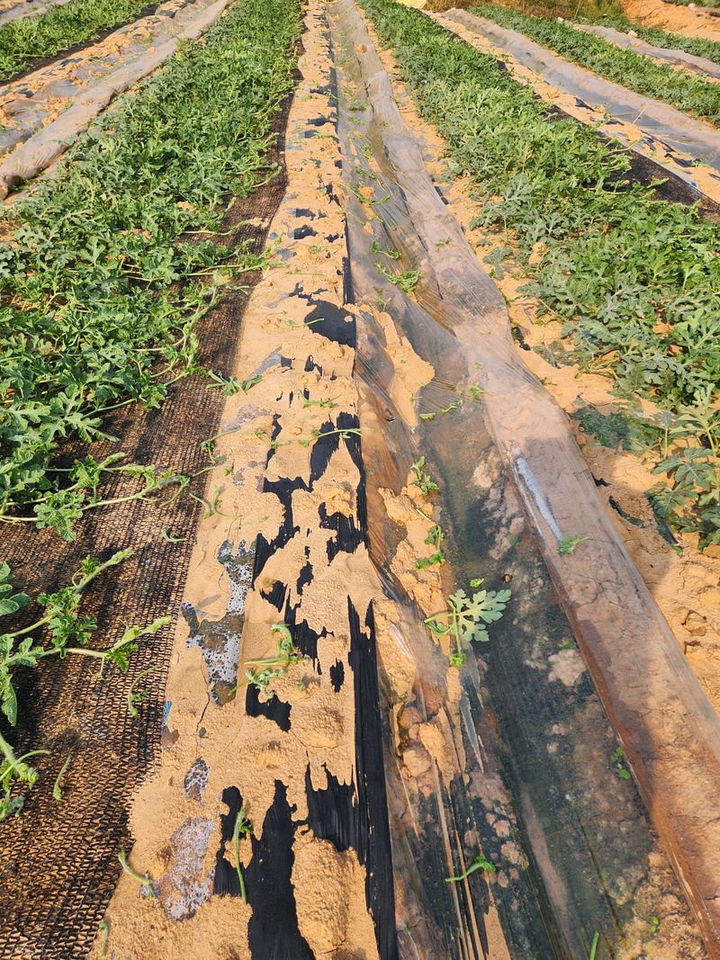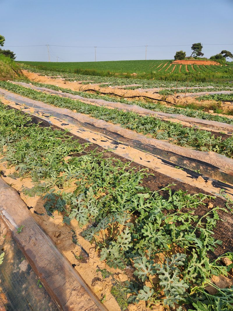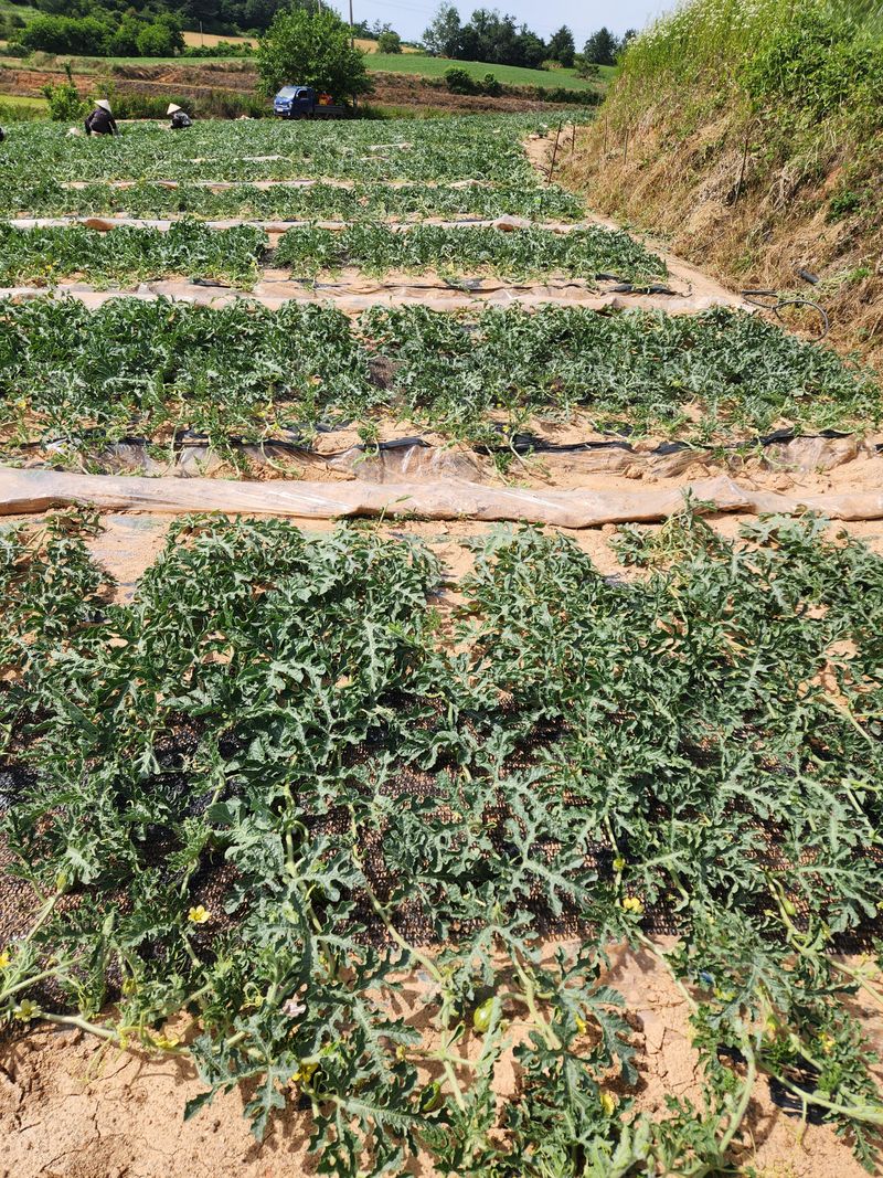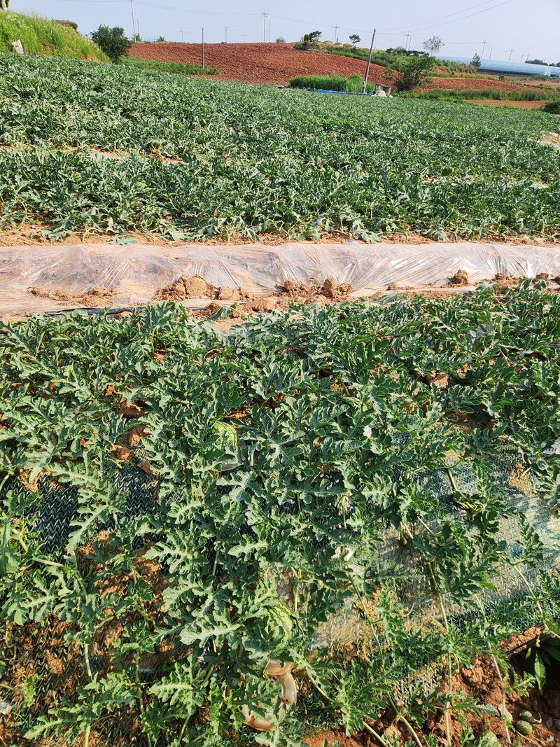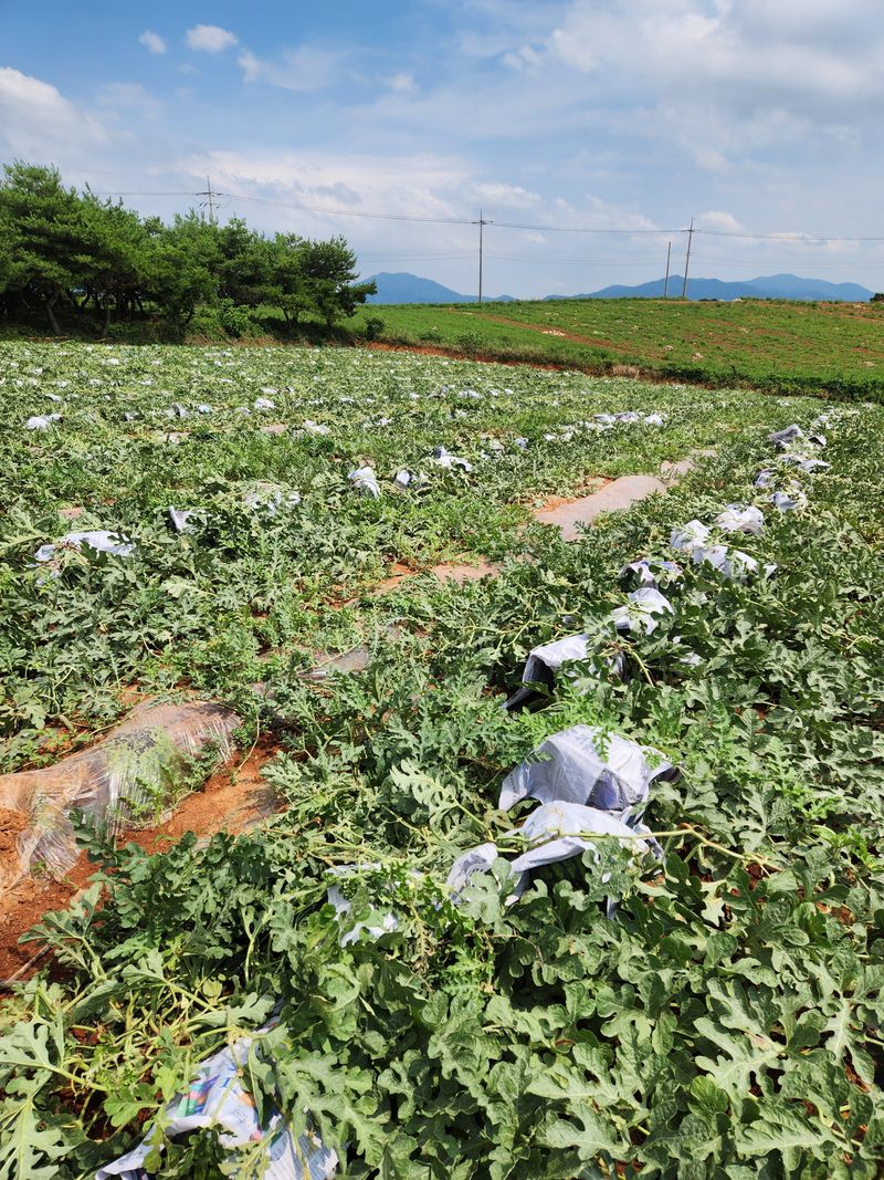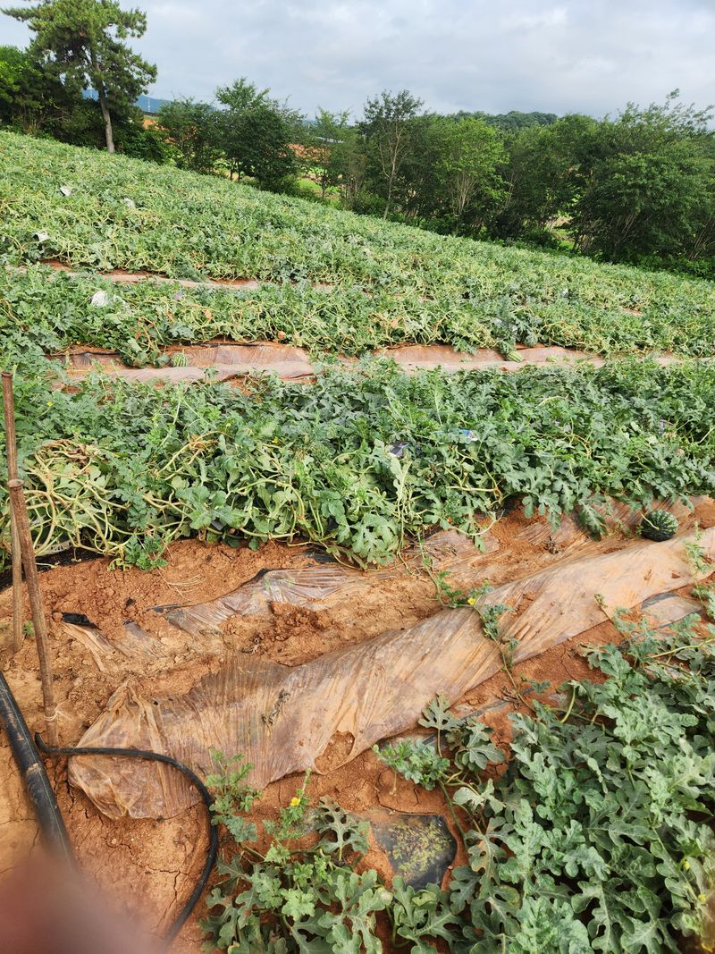 1차 메롱 측지거름 밀어주고 순감기작업 여자3명 투입 노지 수박밭 비니루 걷기 설거지 작업