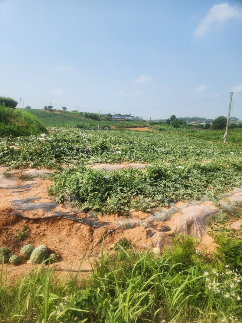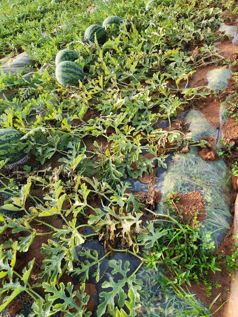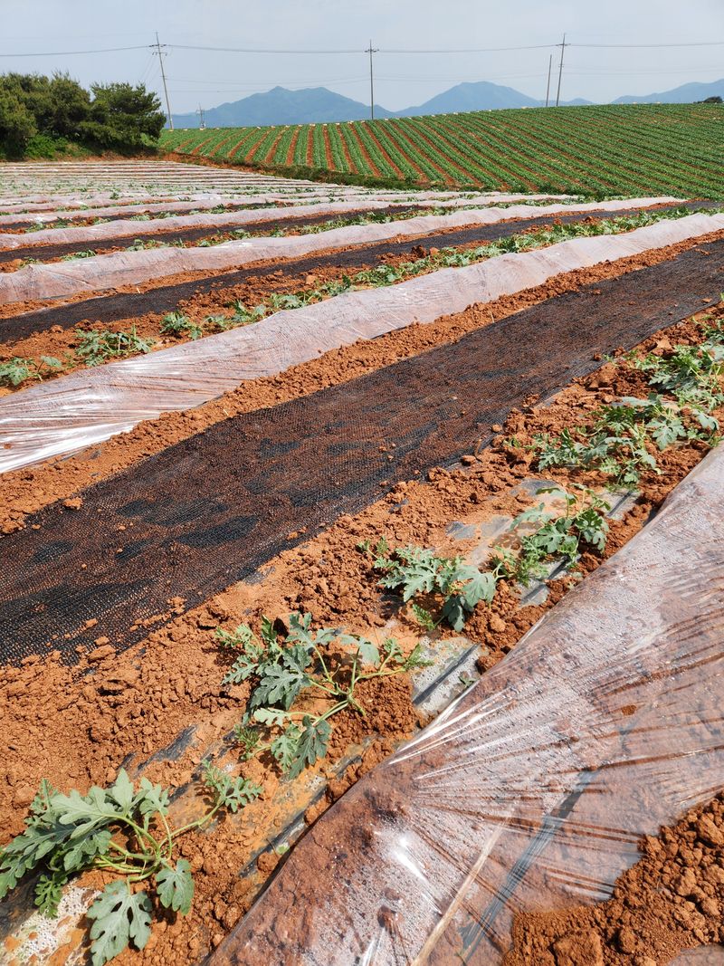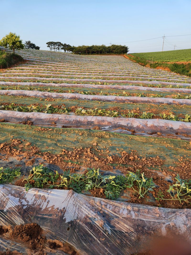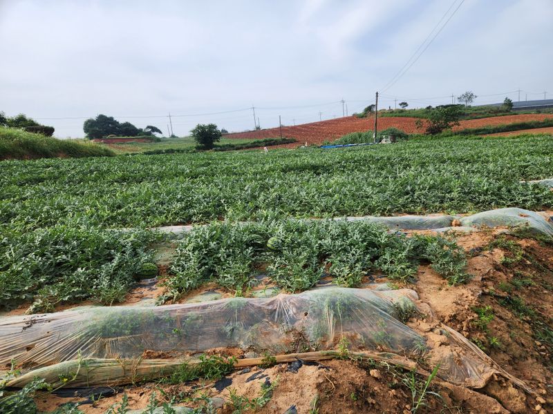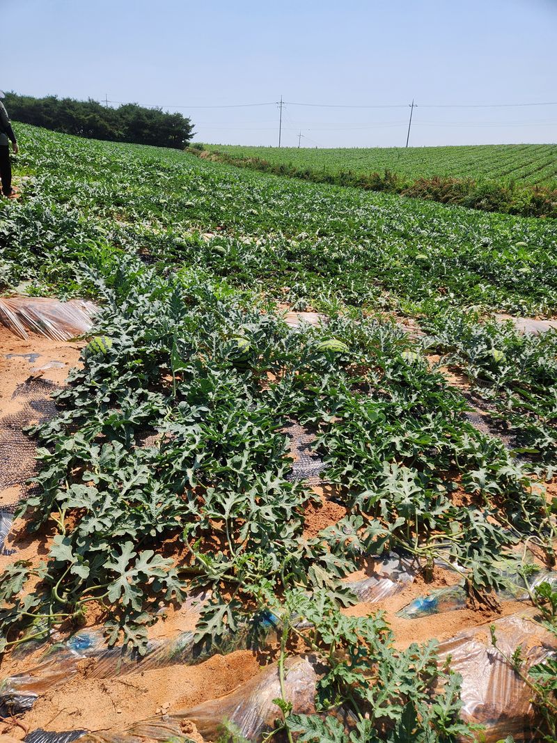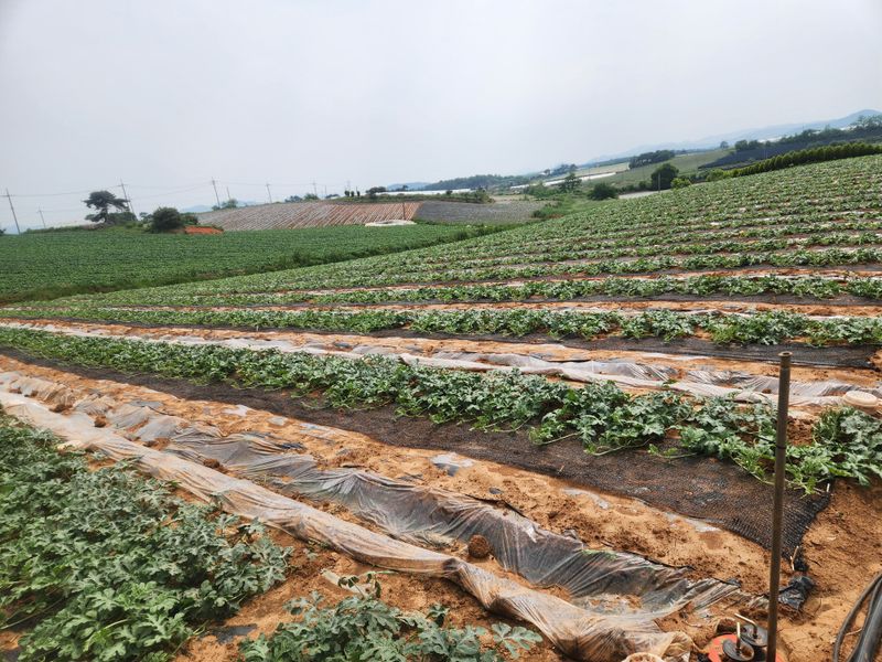 1차 메롱 측지거름 밀어주고 순감기작업 여자3명 투입 노지 수박밭 비니루 걷기 설거지 작업