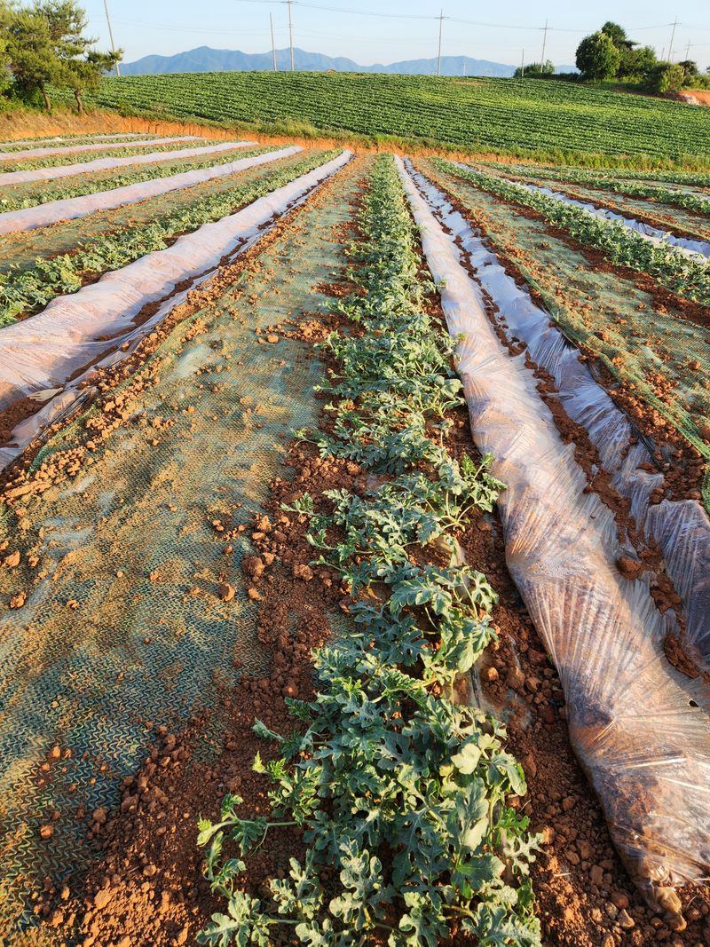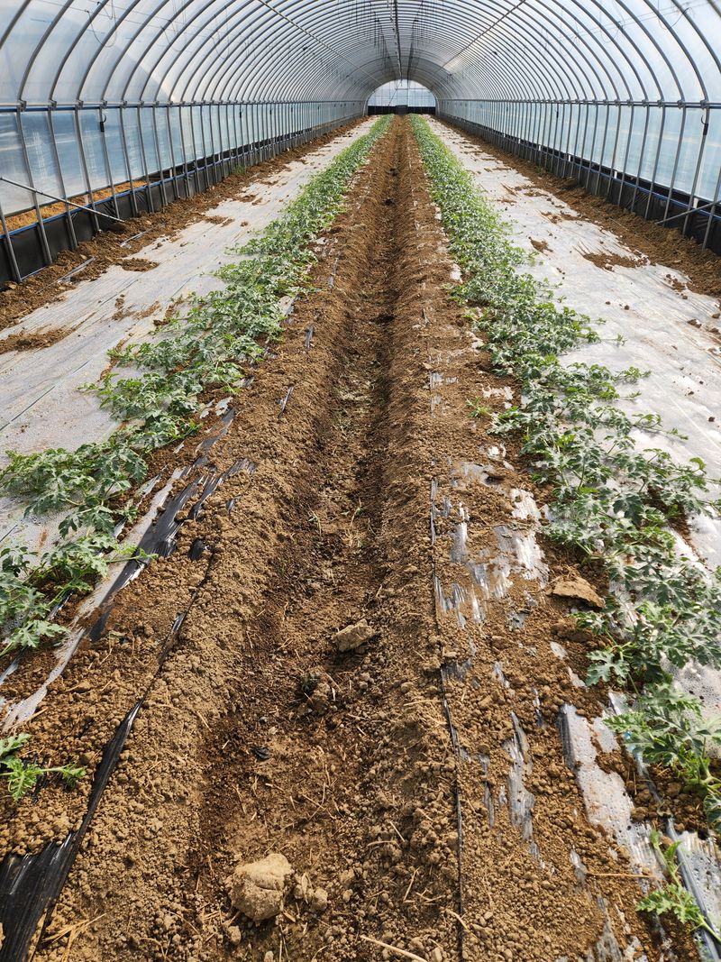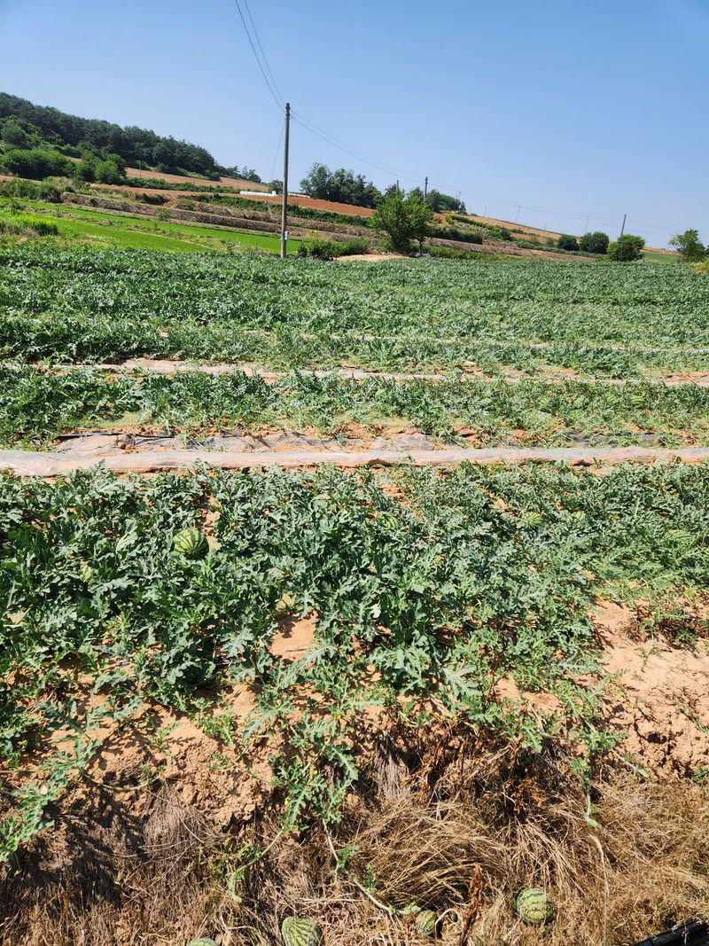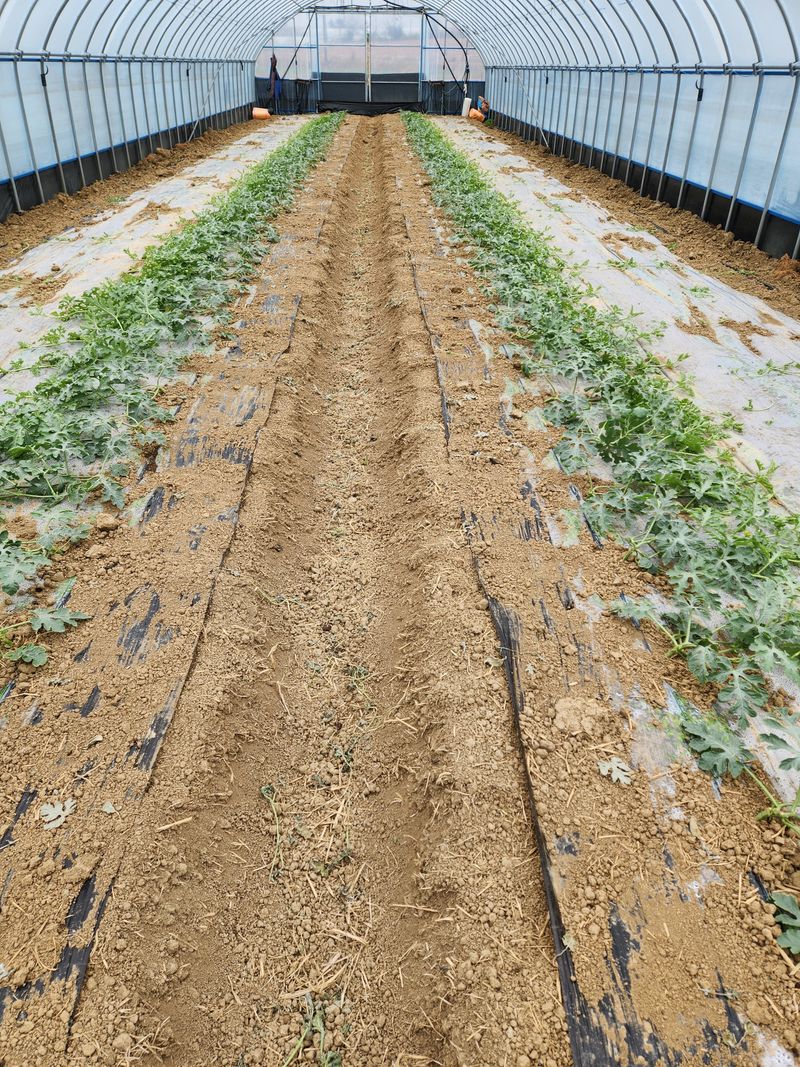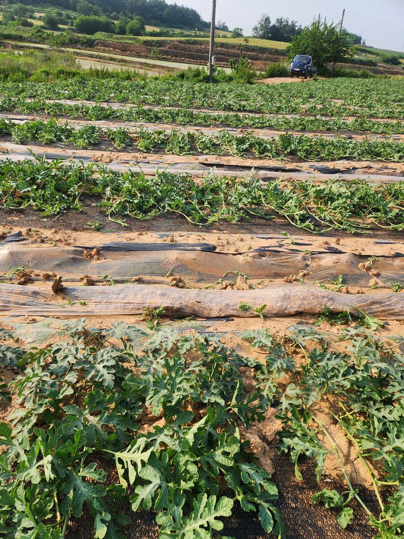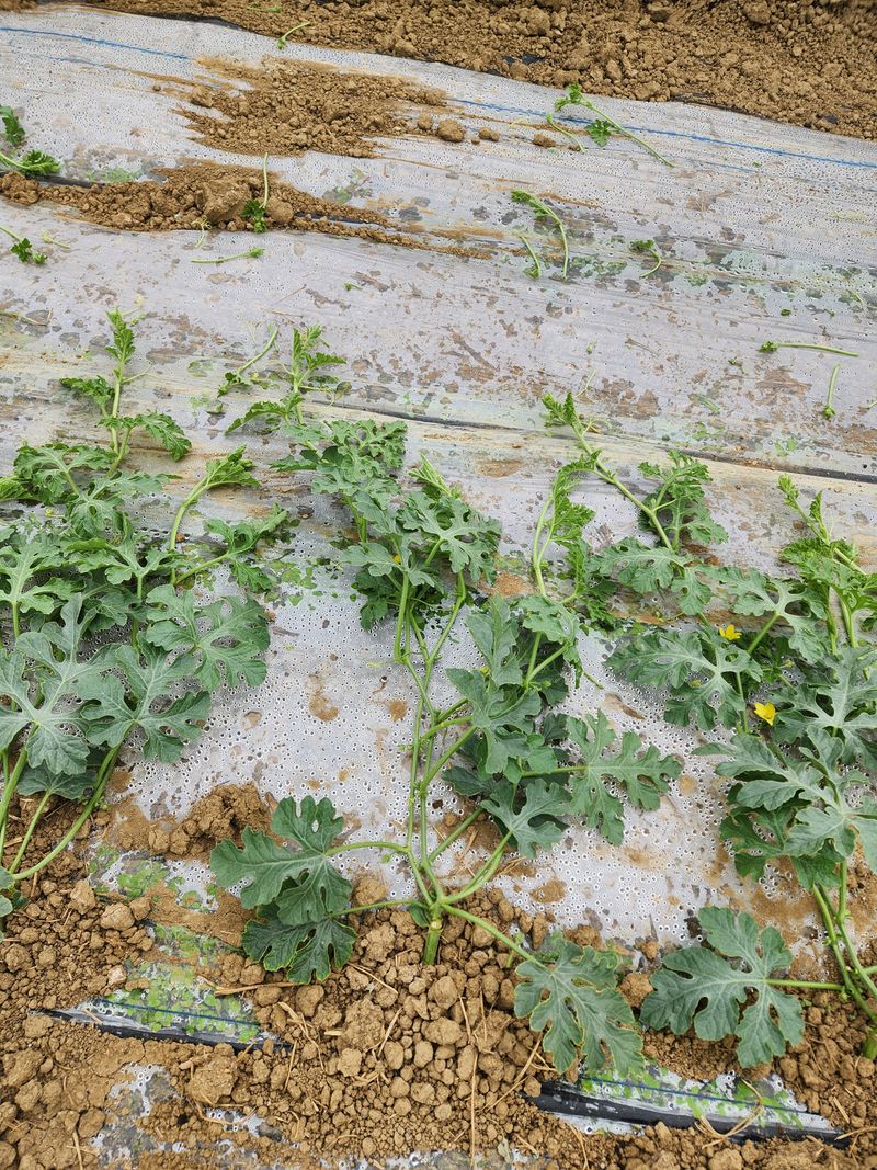 1차 메롱 측지거름 밀어주고 순감기작업 여자3명 투입 노지 수박밭 비니루 걷기 설거지 작업