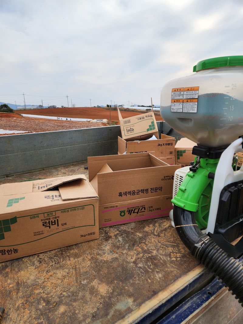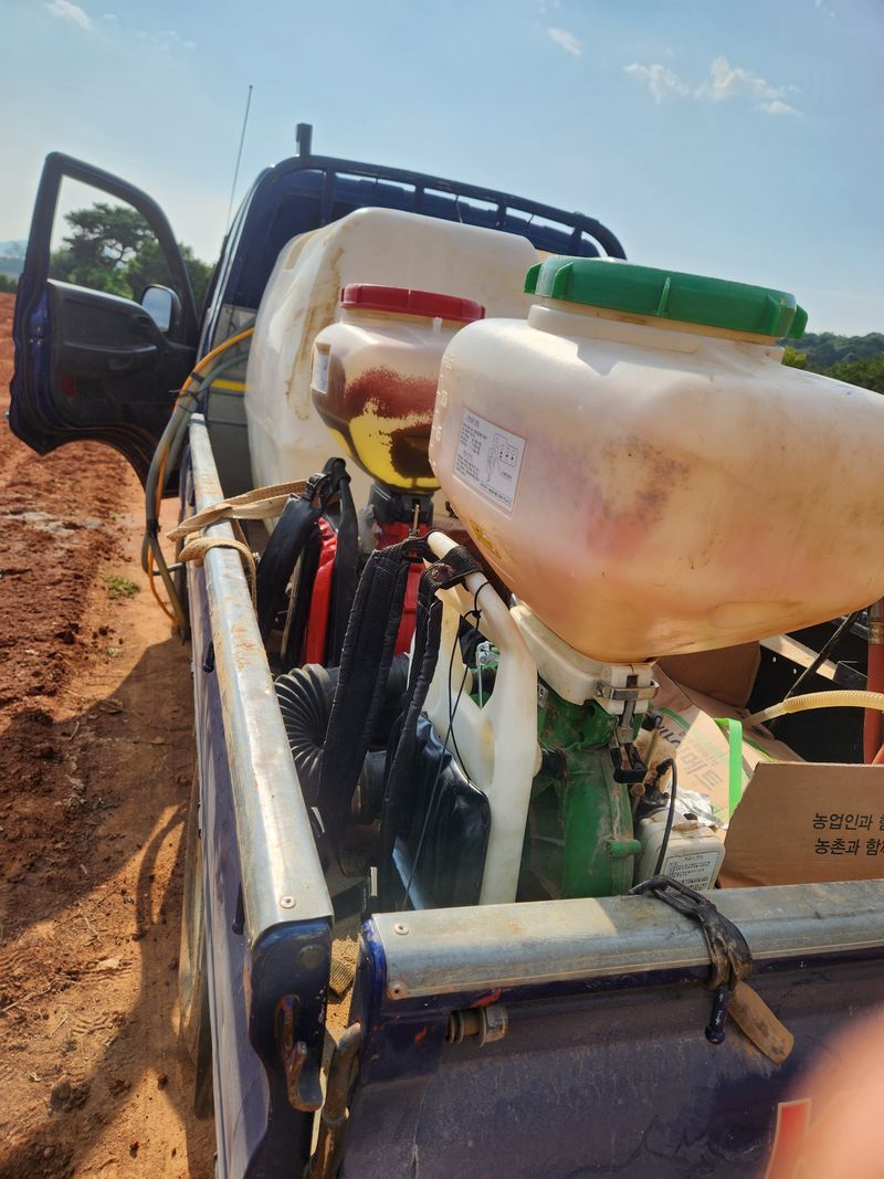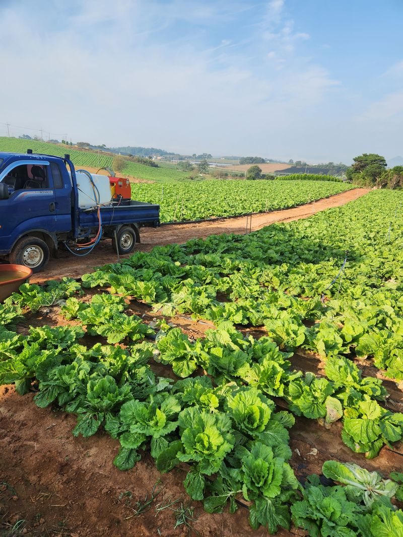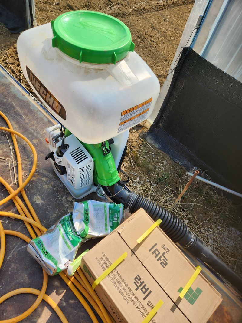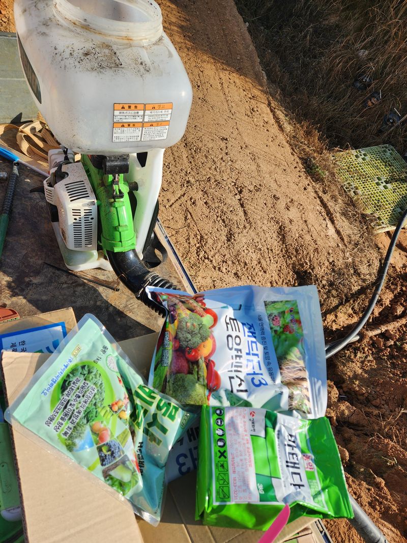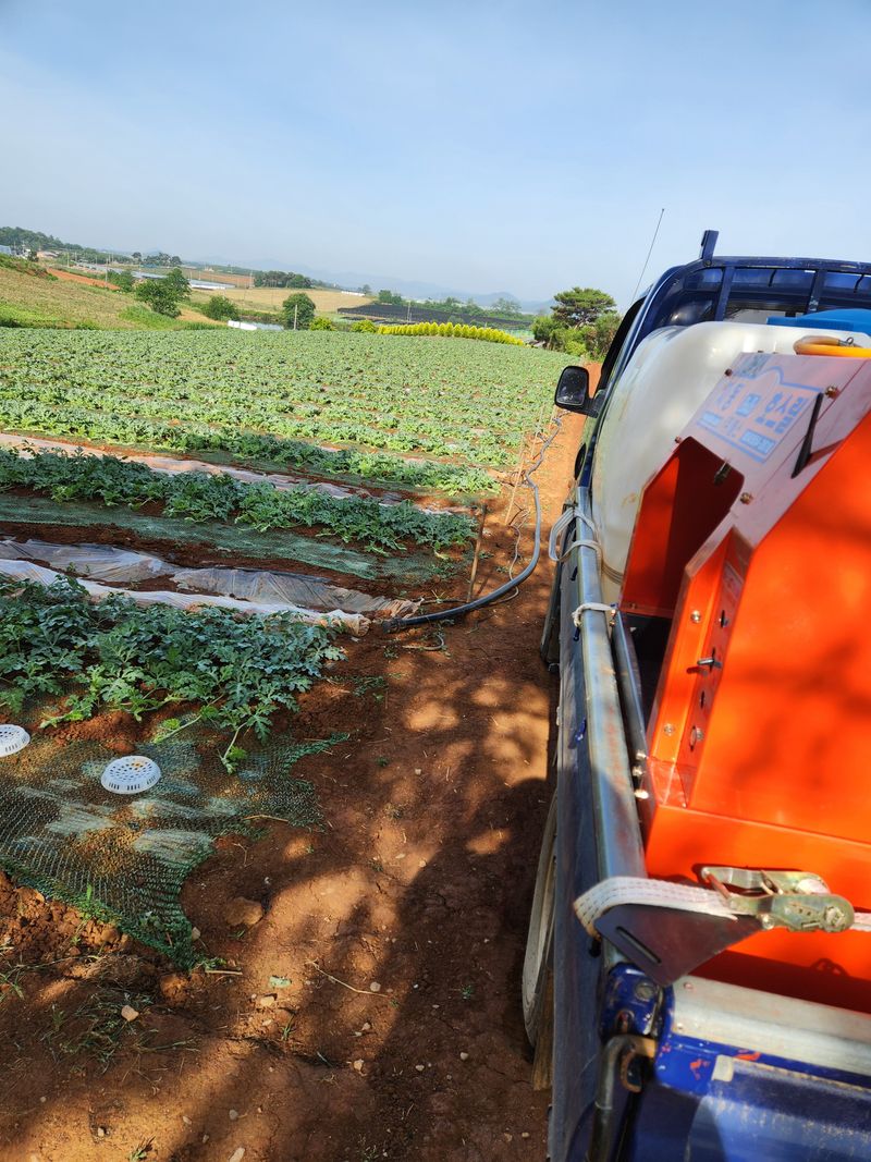 노지 배추 농약살포작업. 오후에 하우스 메롱 14동 농약살포작업