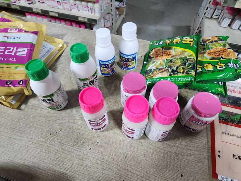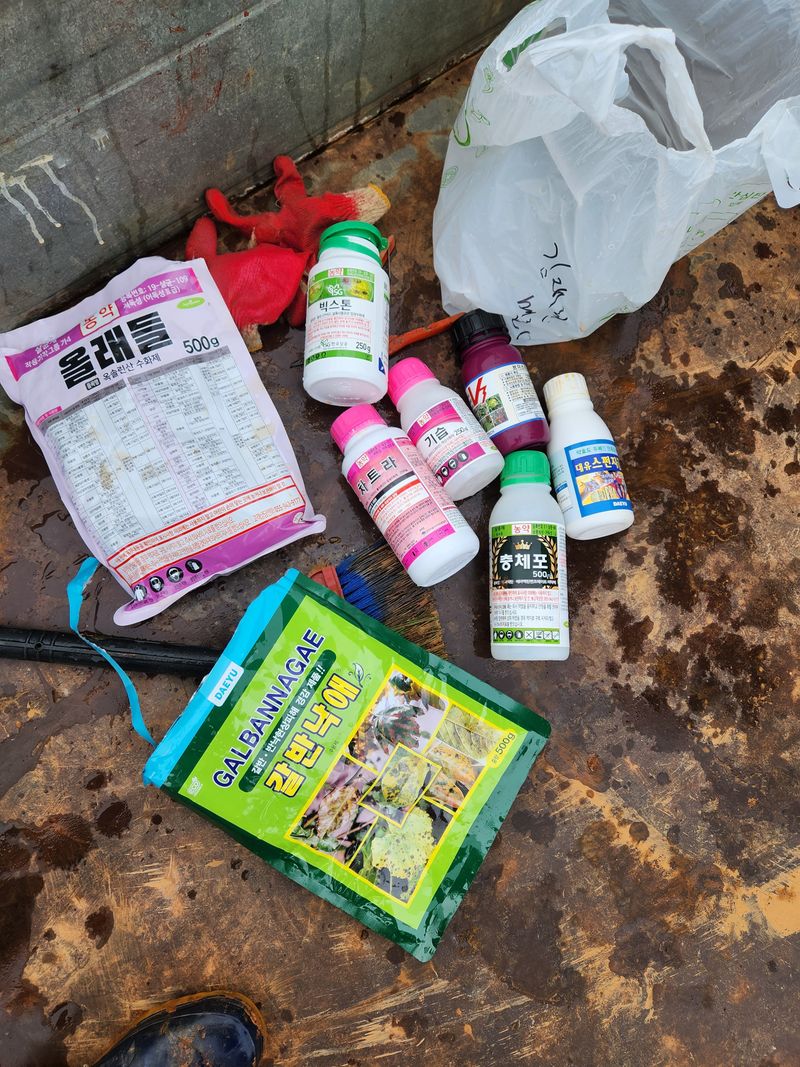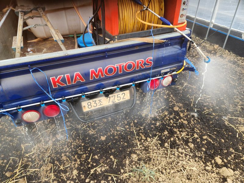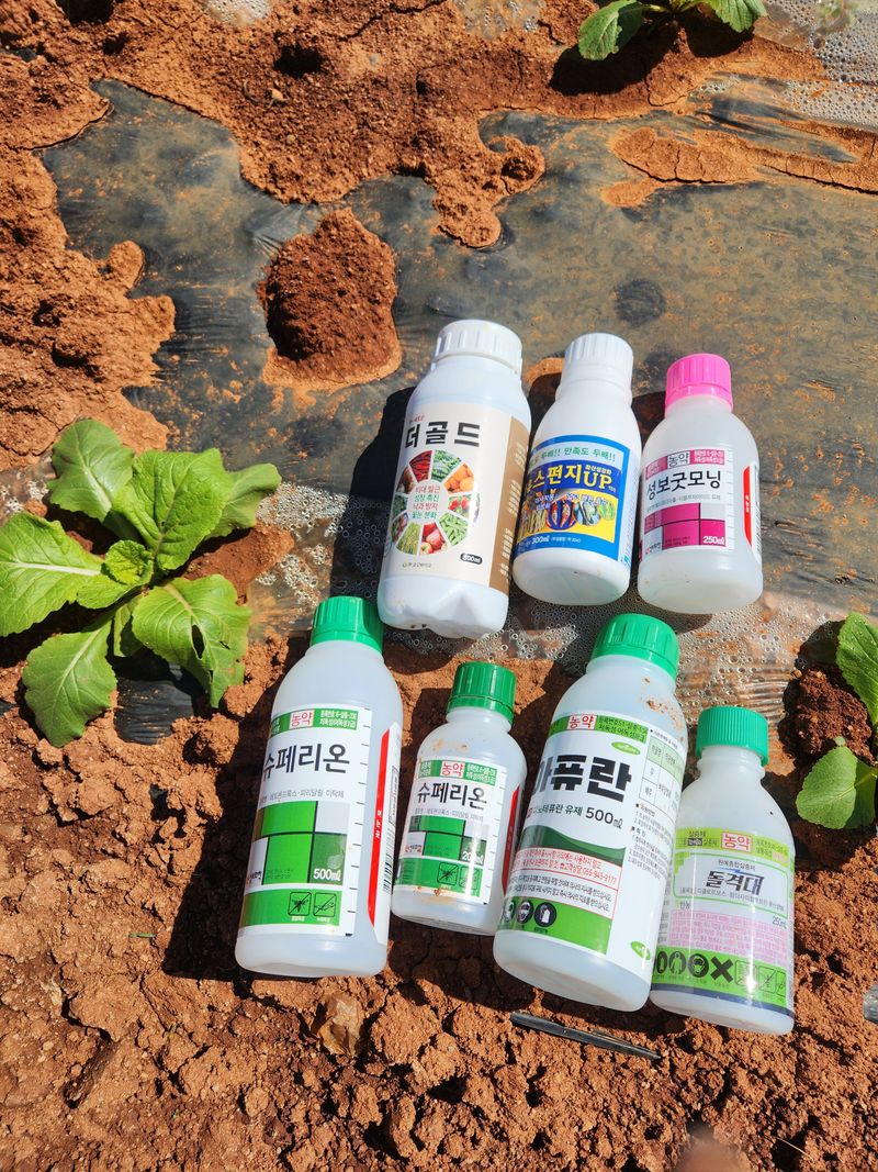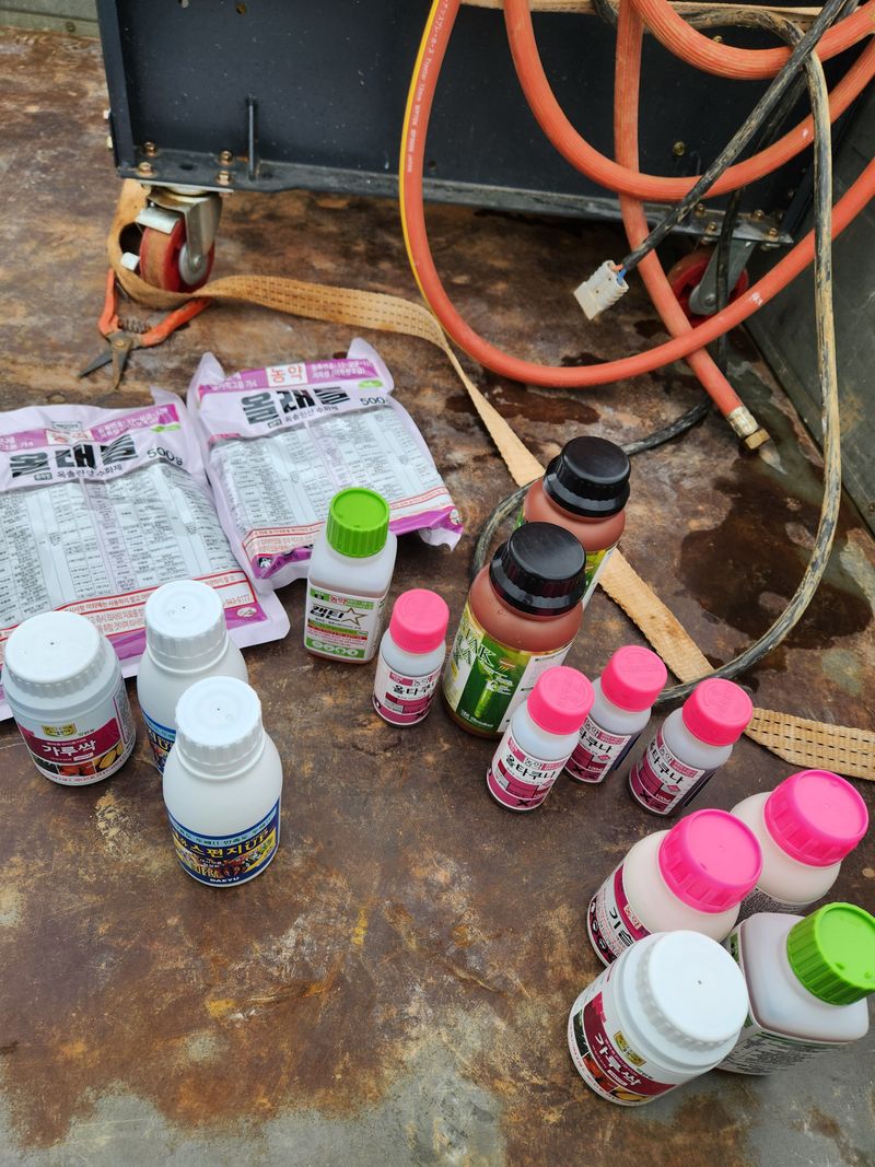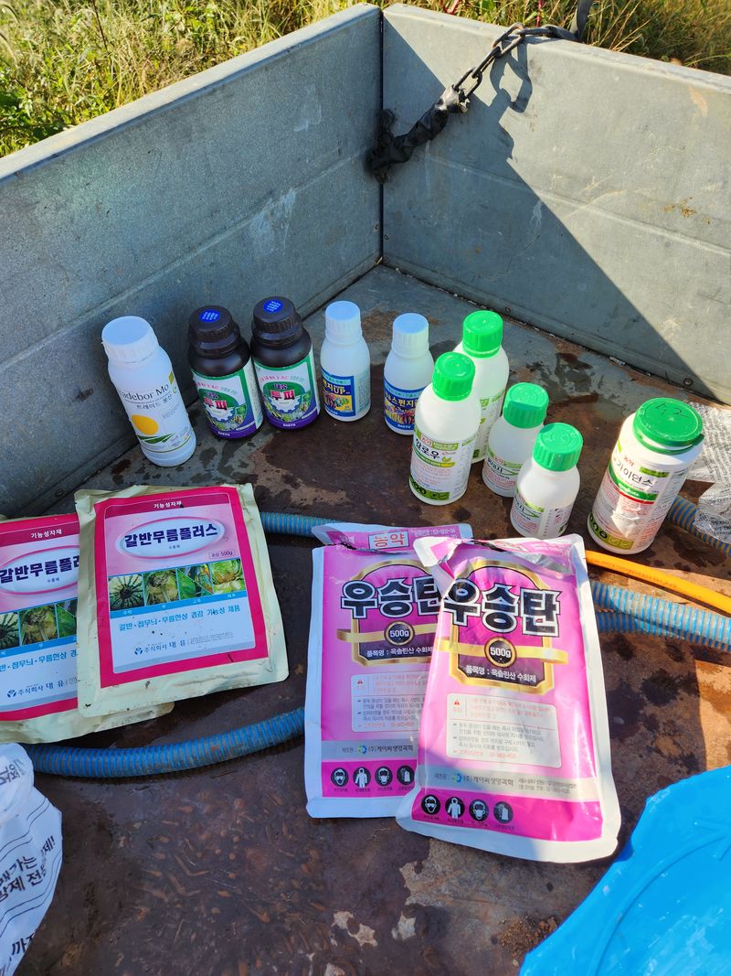 노지 배추 농약살포작업. 오후에 하우스 메롱 14동 농약살포작업