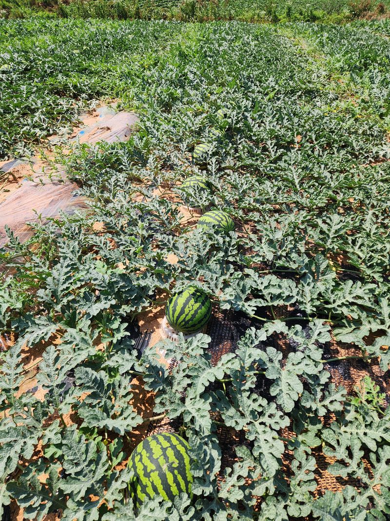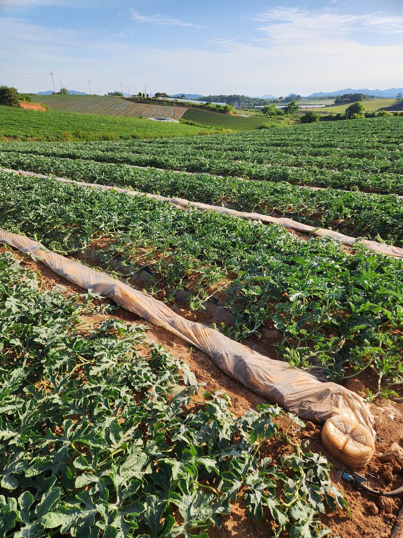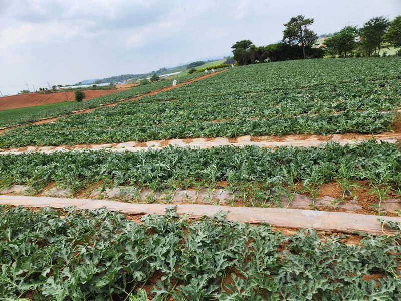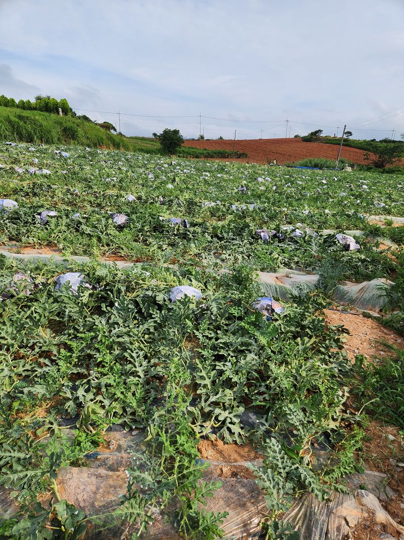 메롱 생육상태 점검. 노지수박 작업팀이 작업시작