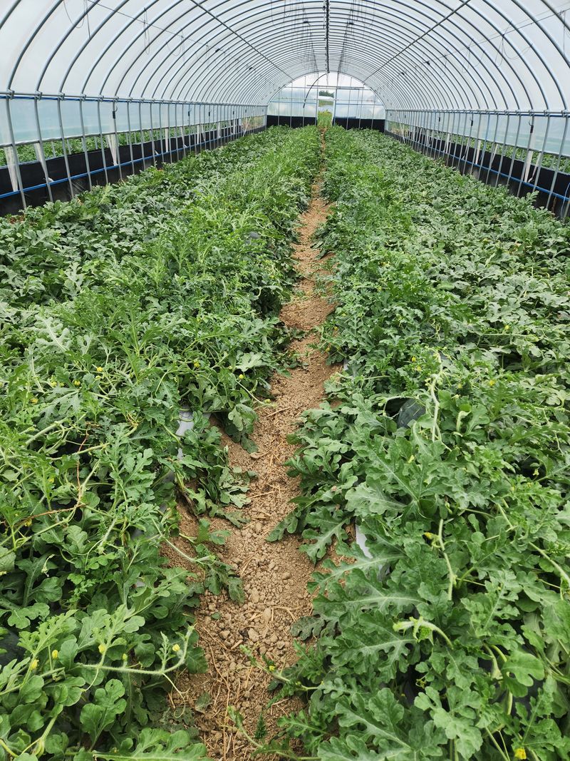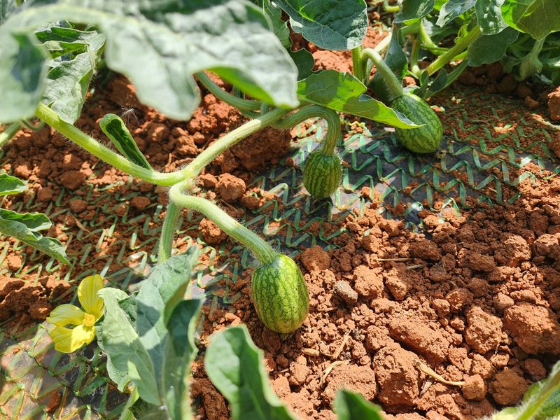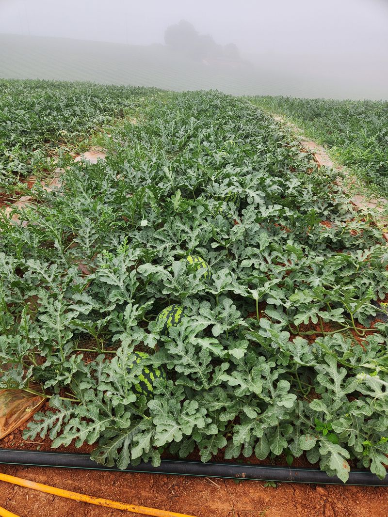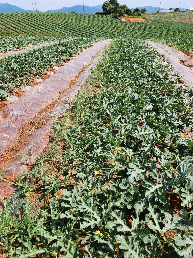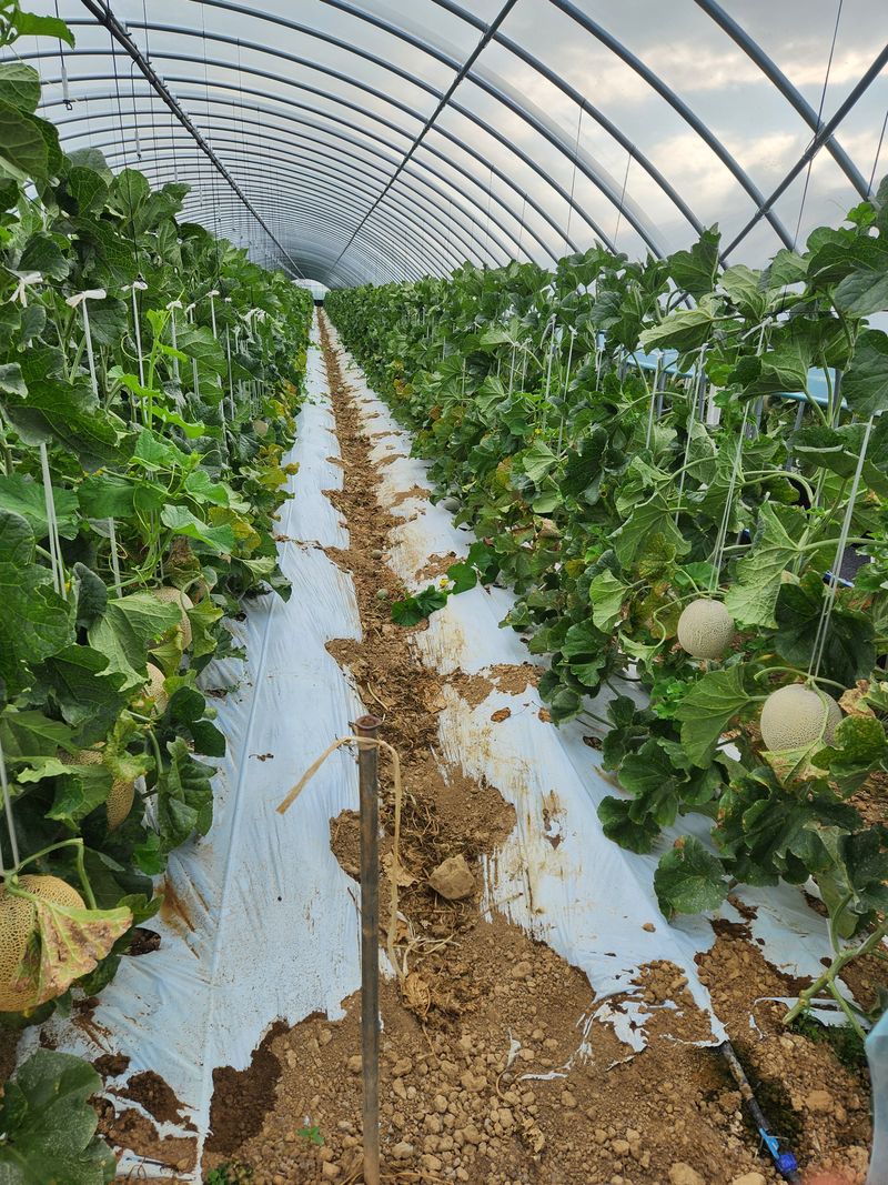 메롱 생육상태 점검. 노지수박 작업팀이 작업시작
