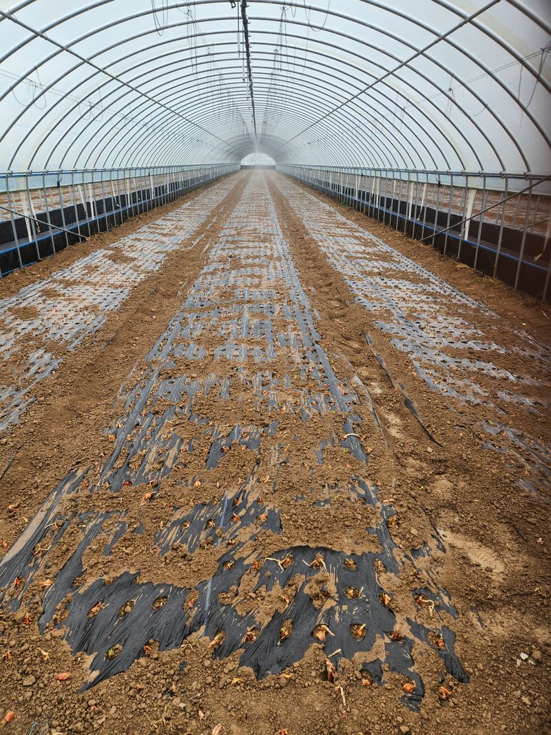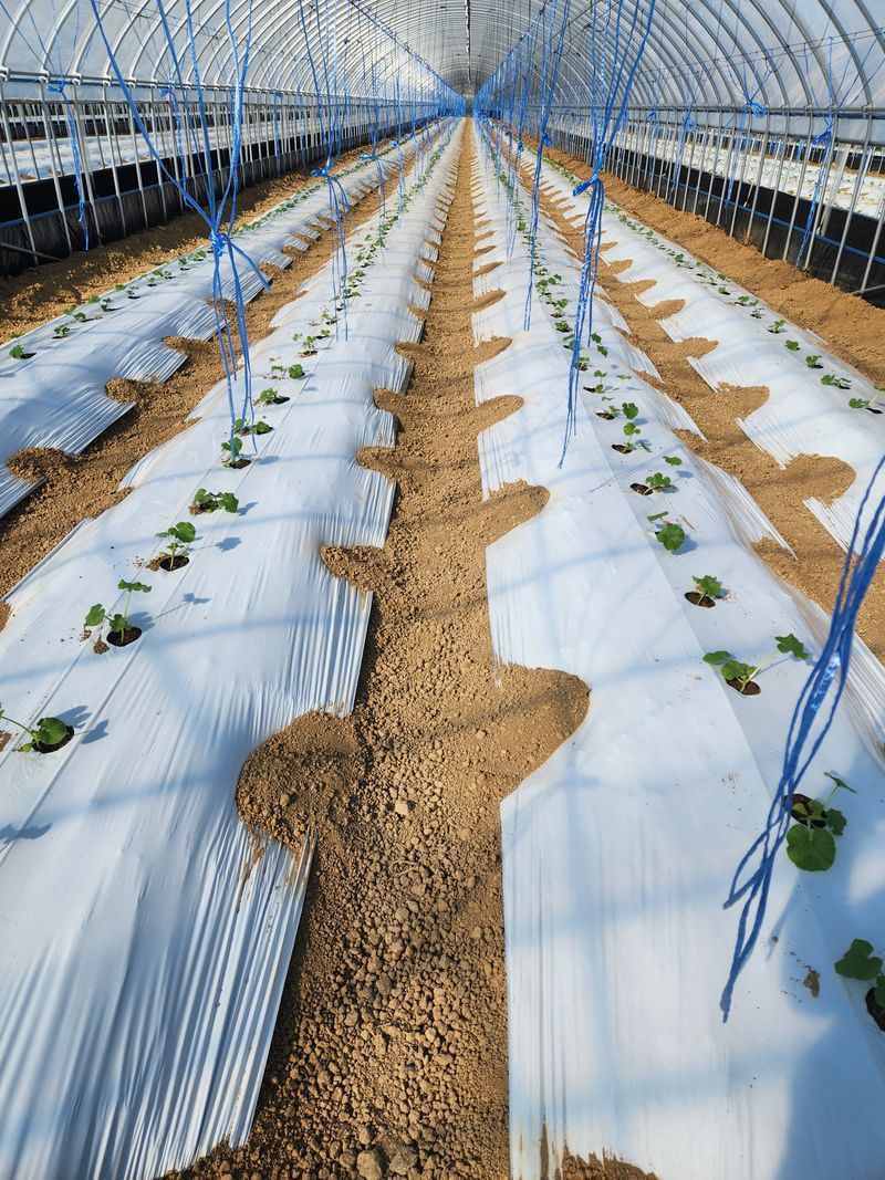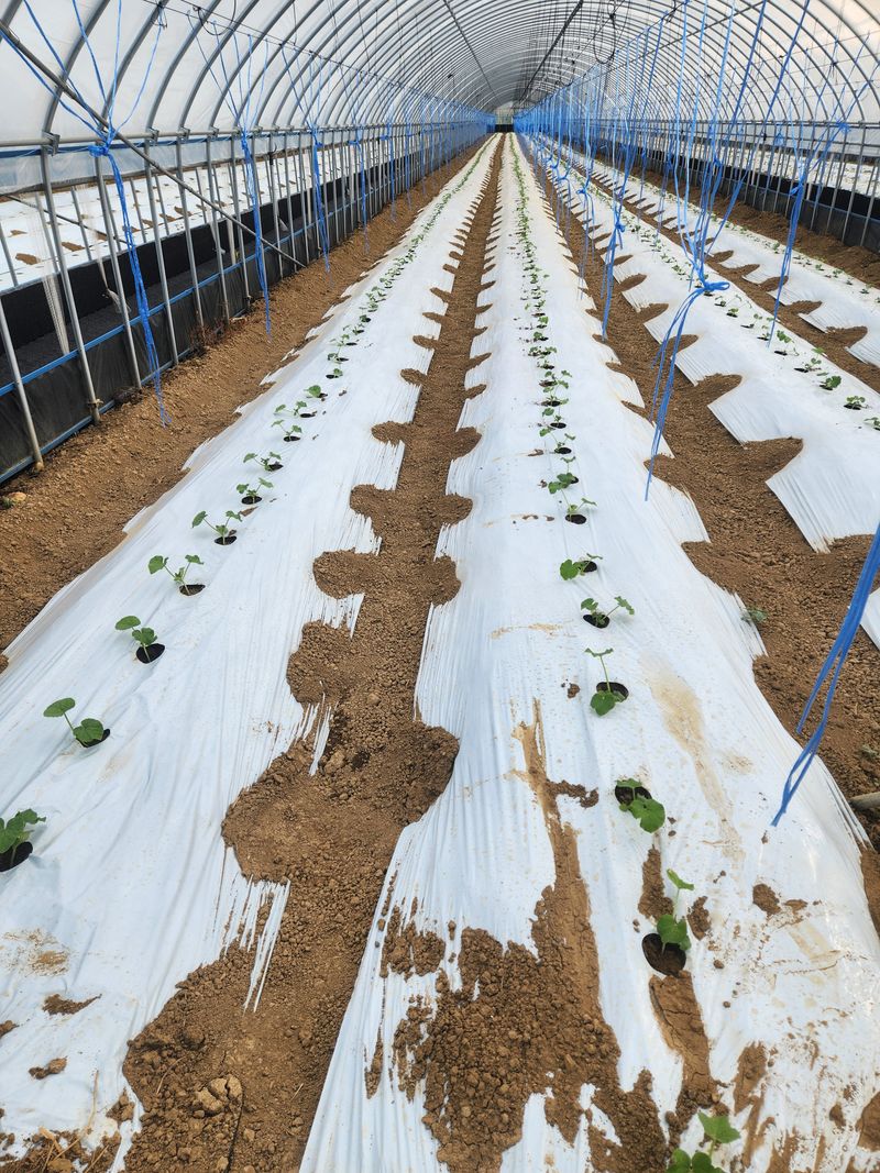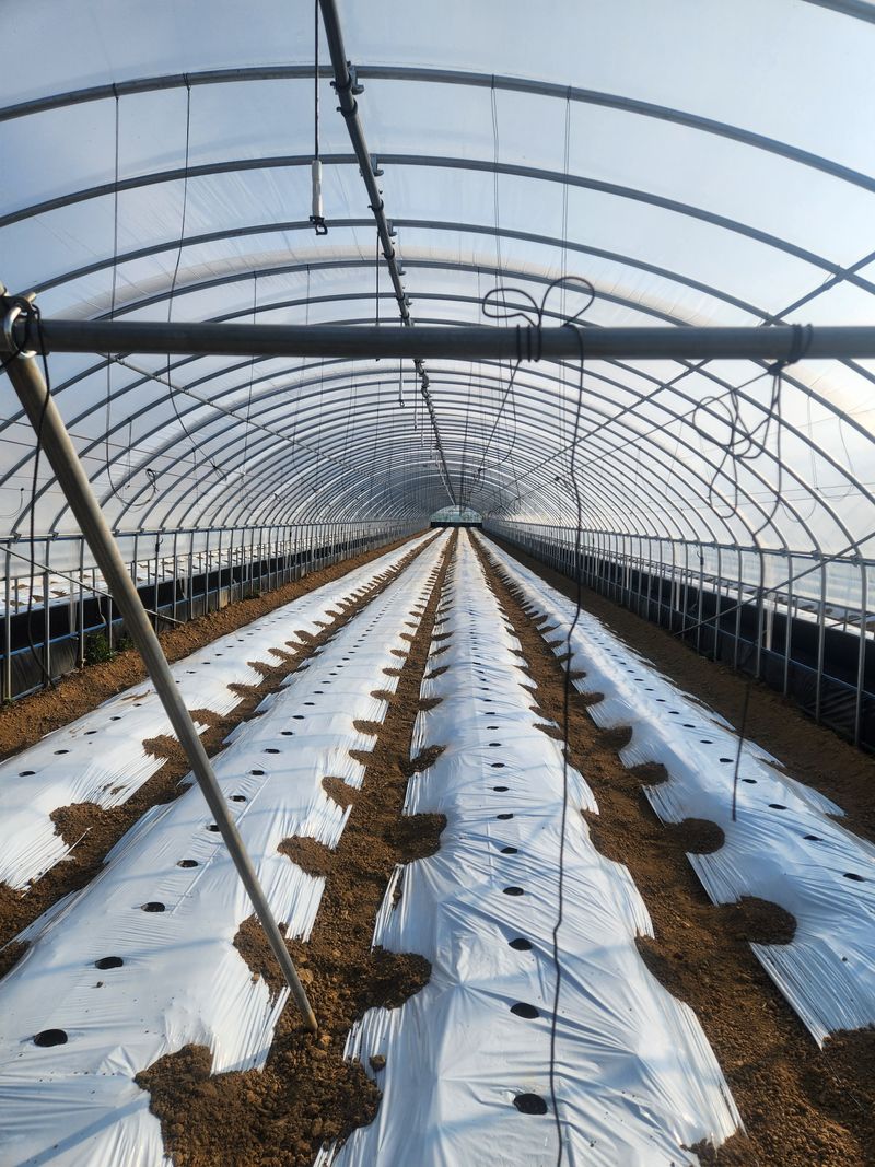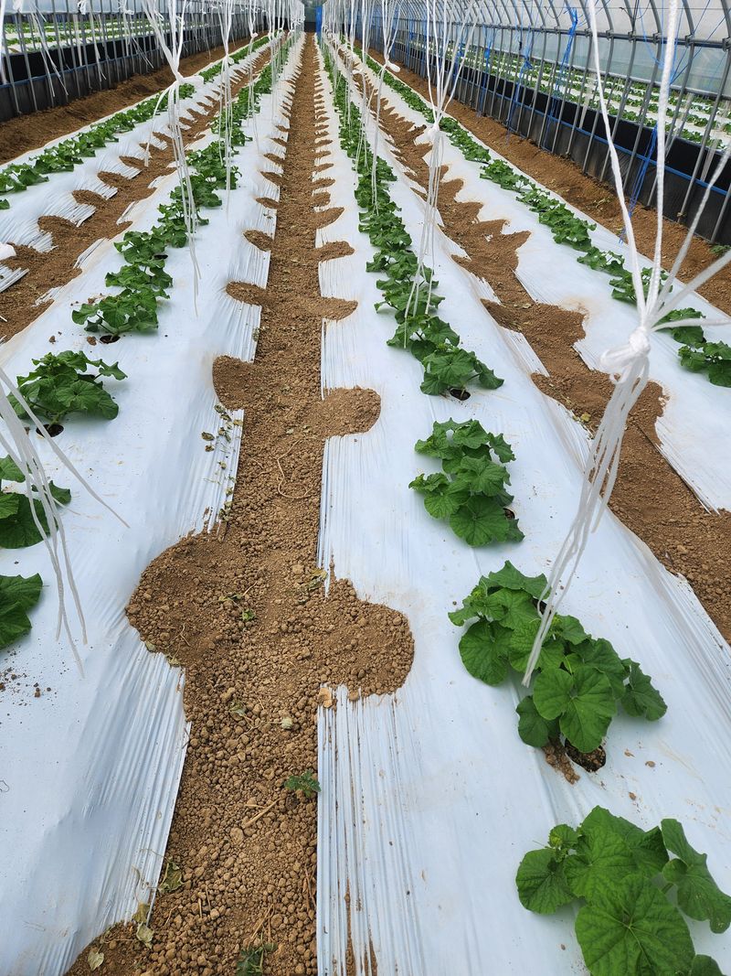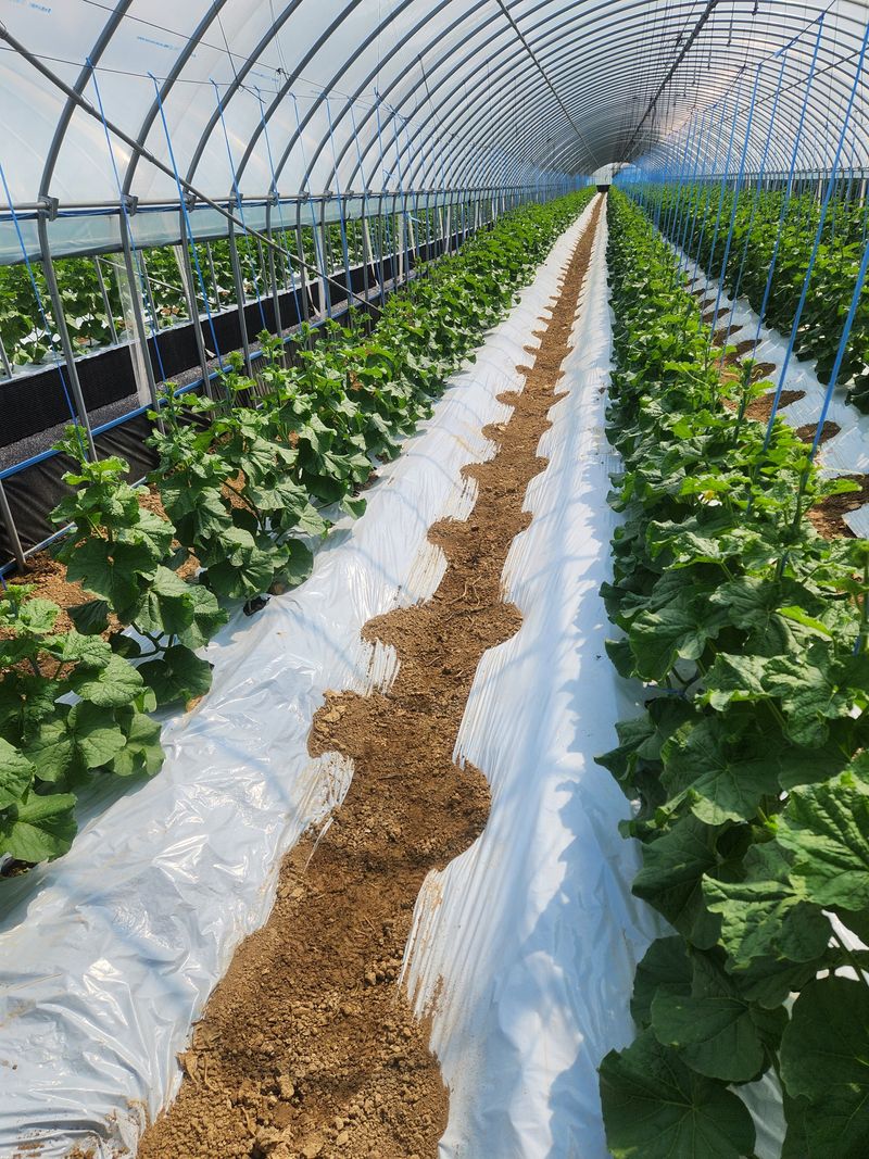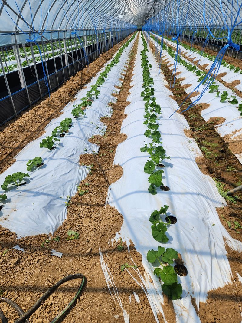 터널비닐걷고 고랑에 제초비닐멀칭후 생육상태 점검