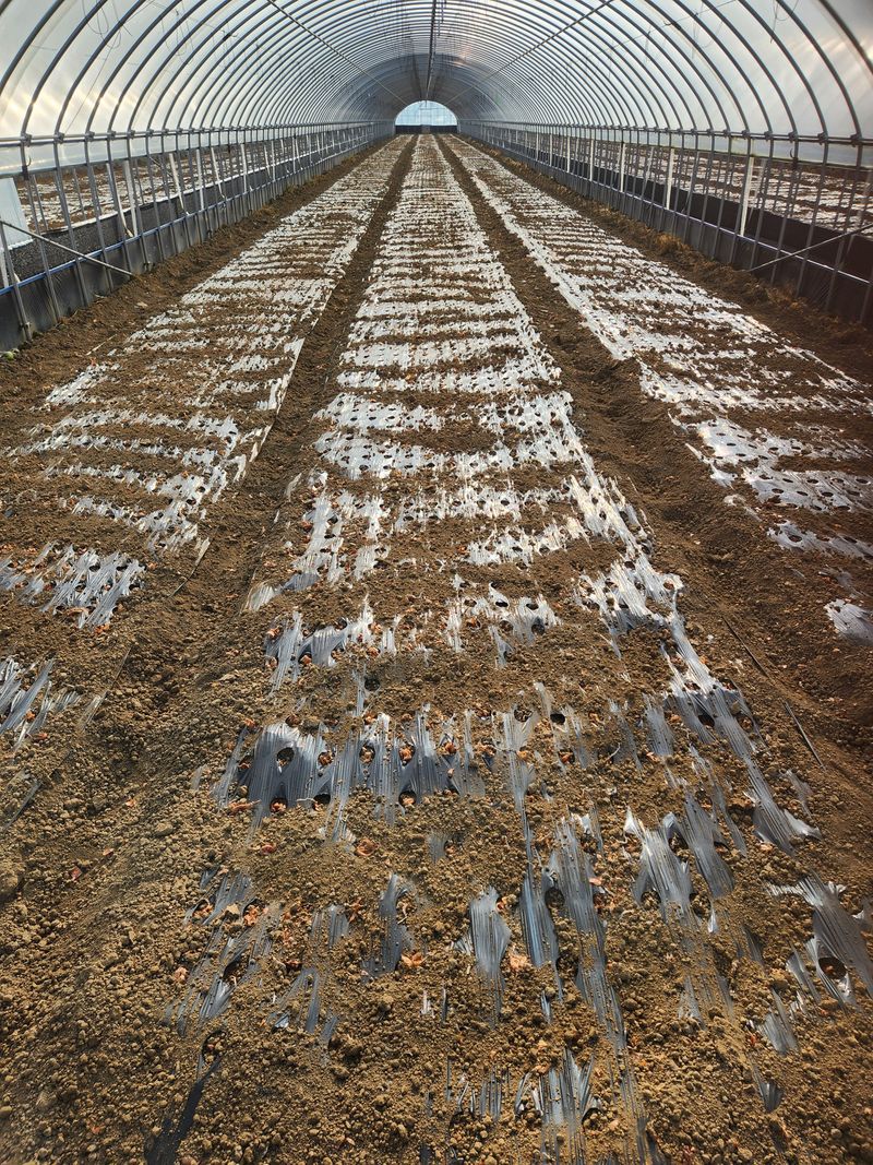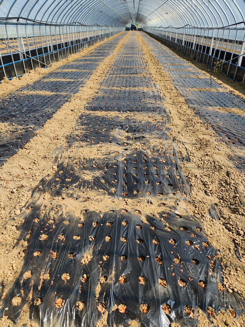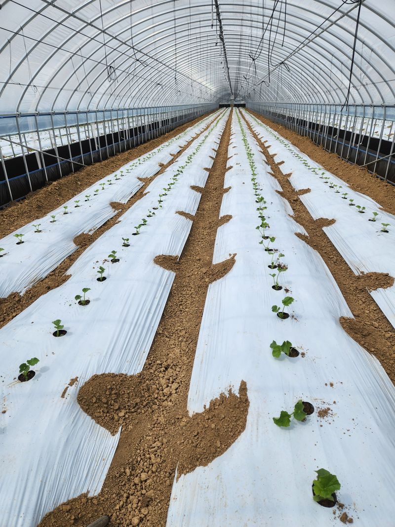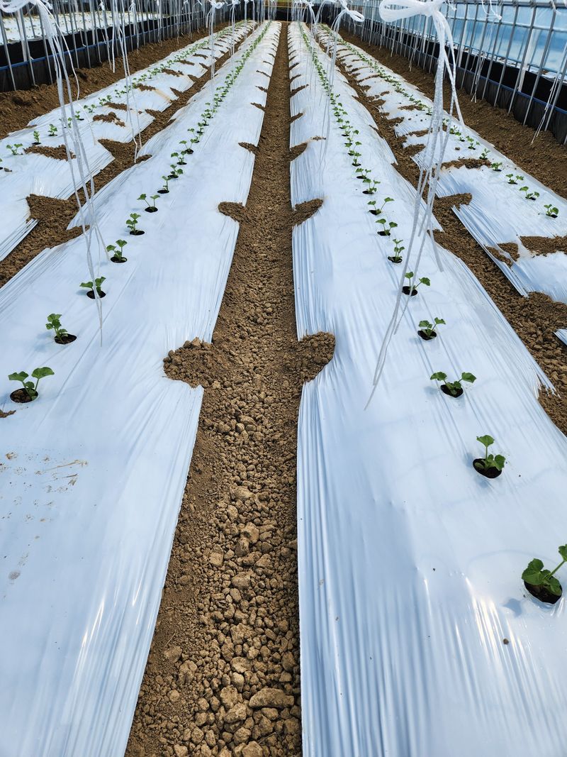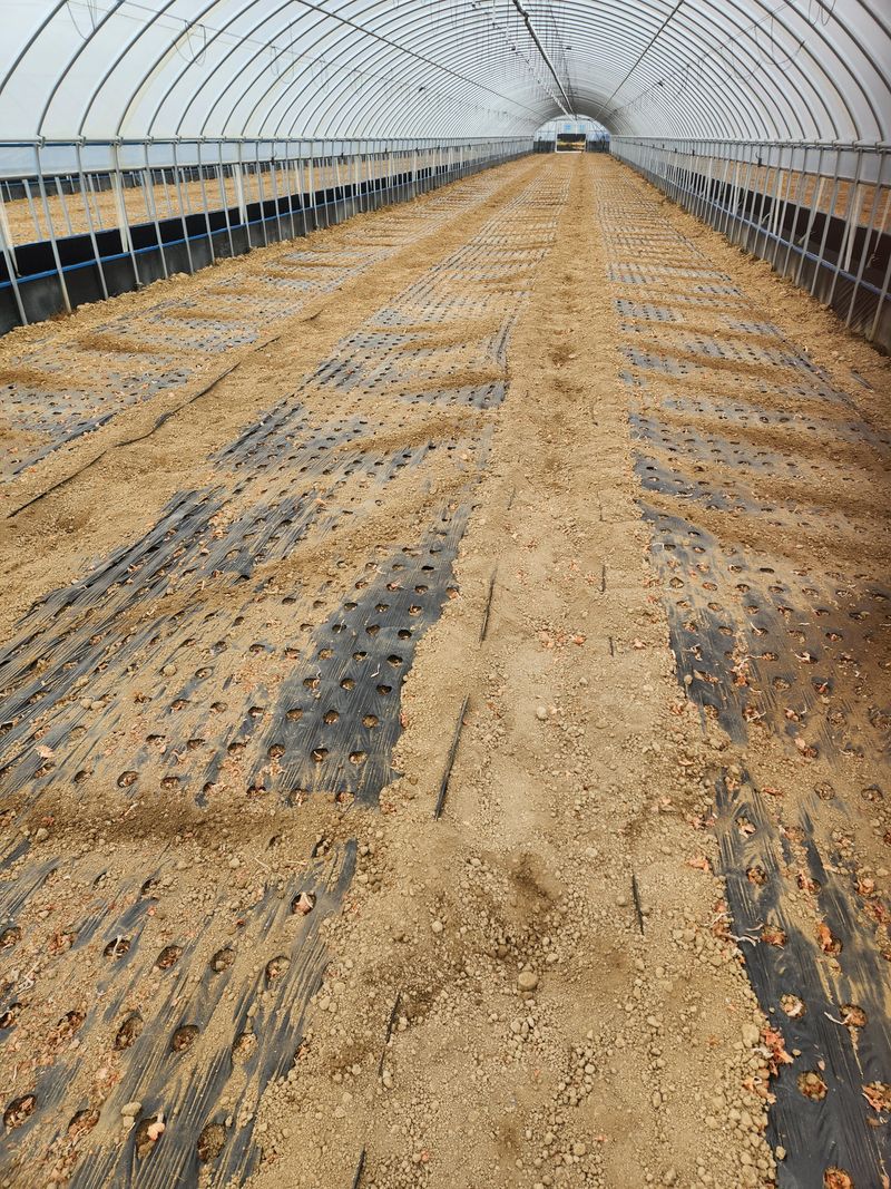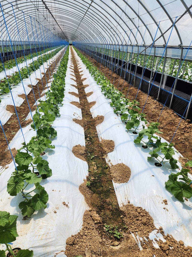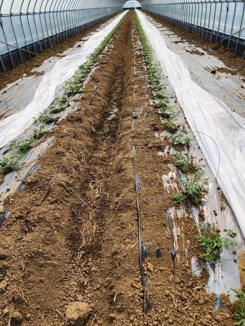 터널비닐걷고 고랑에 제초비닐멀칭후 생육상태 점검