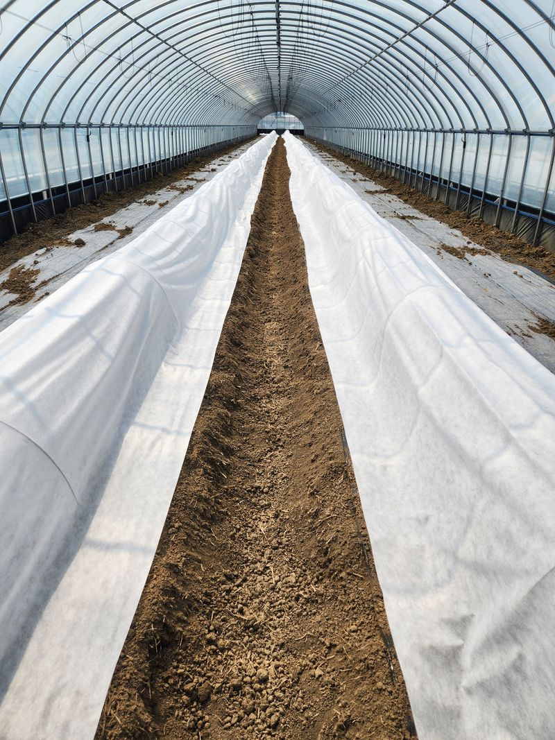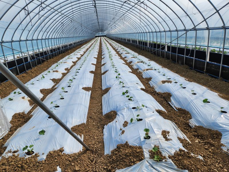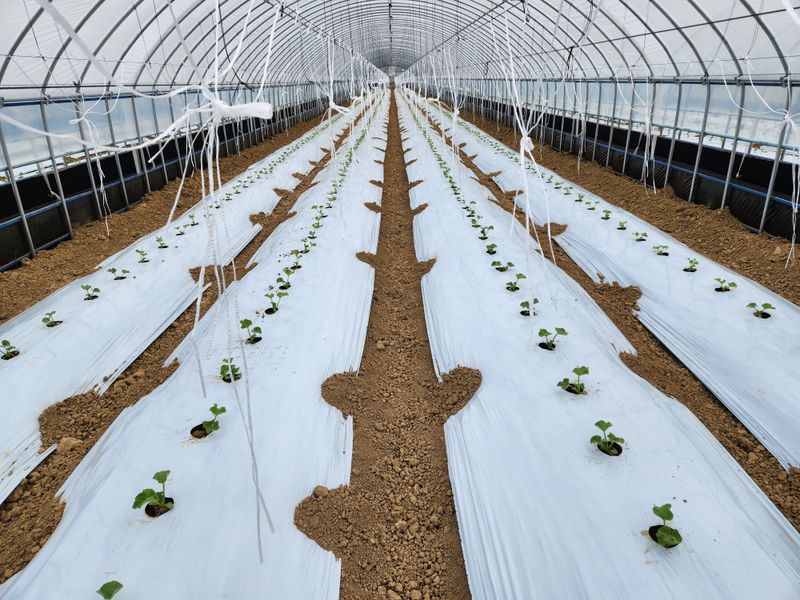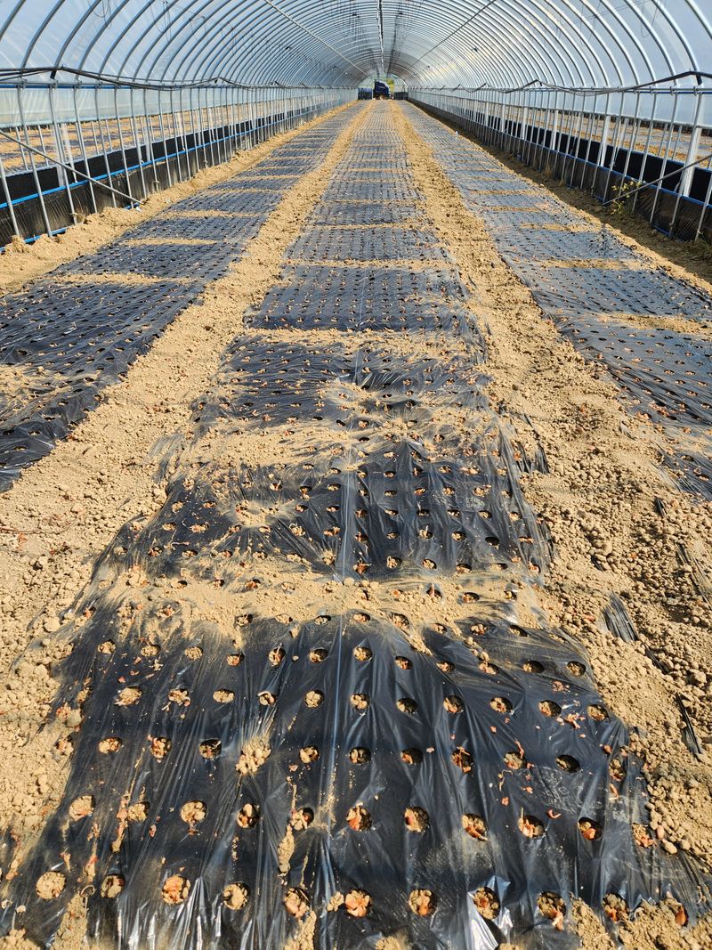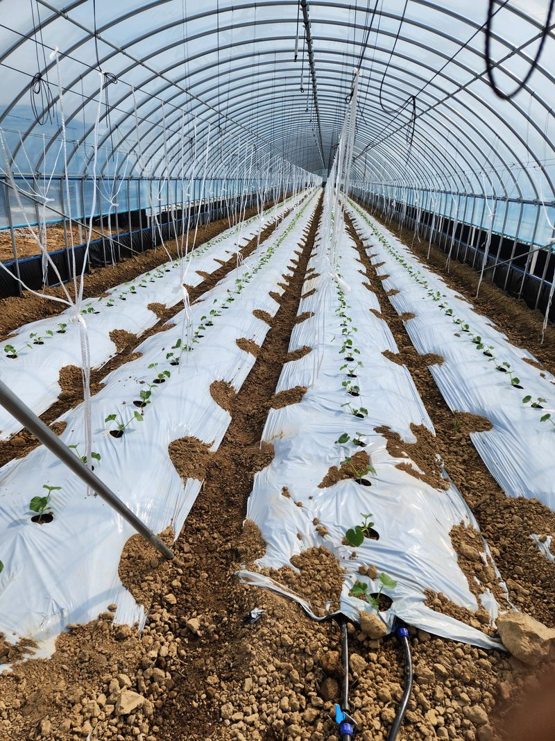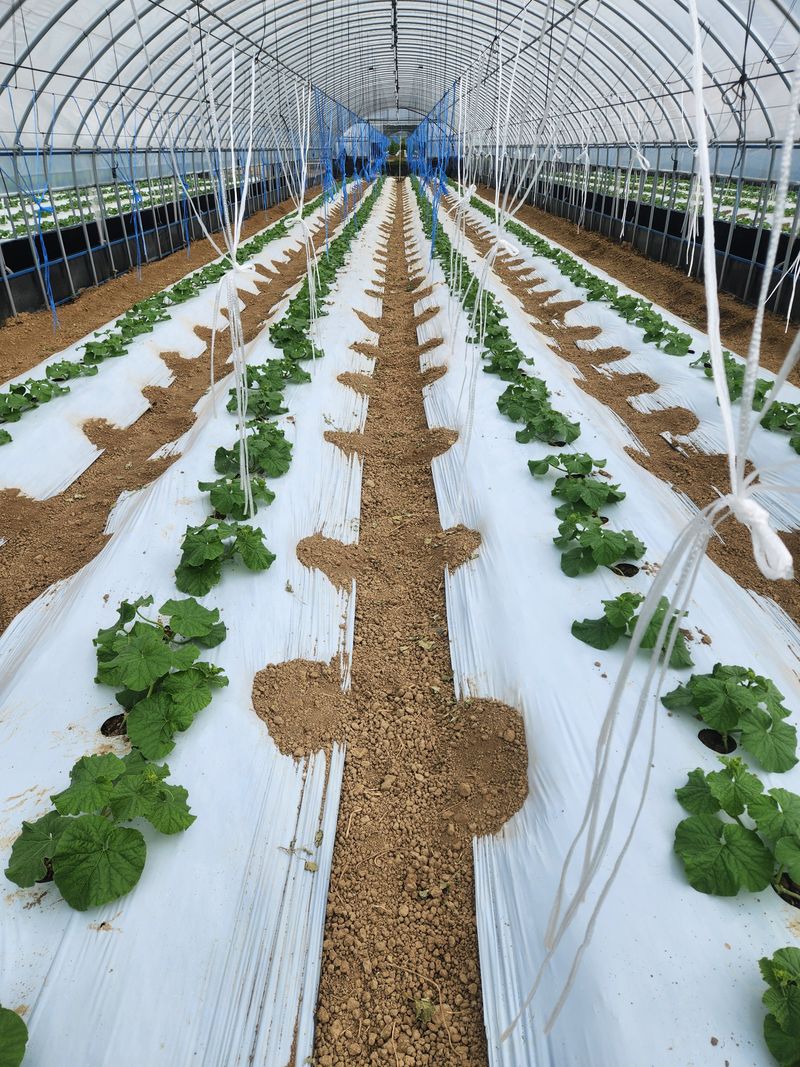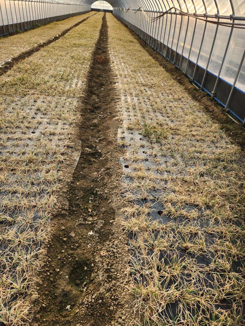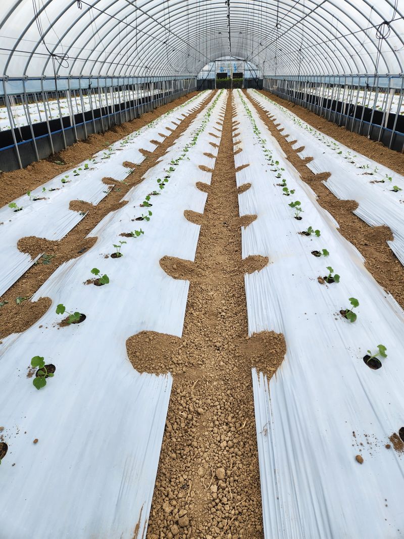 터널비닐걷고 고랑에 제초비닐멀칭후 생육상태 점검