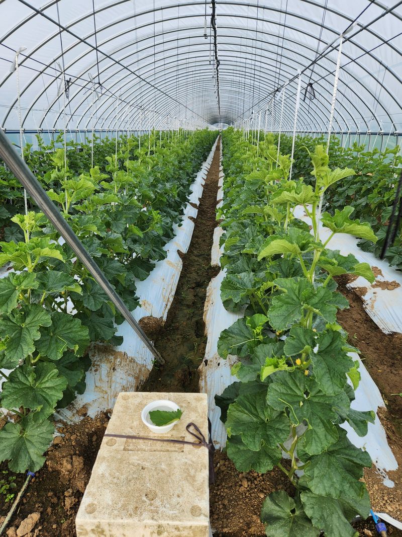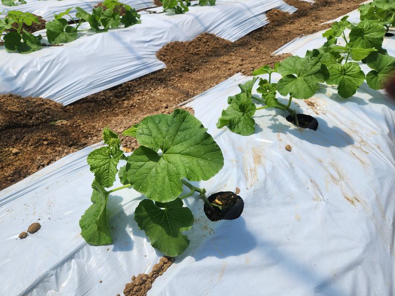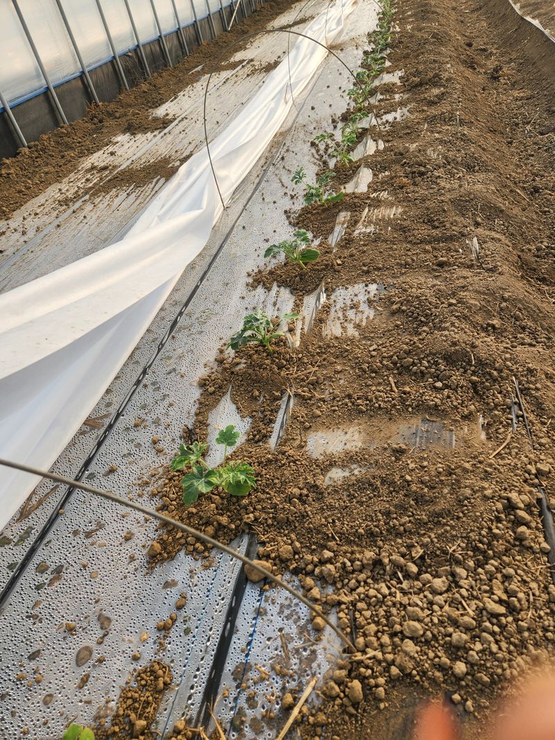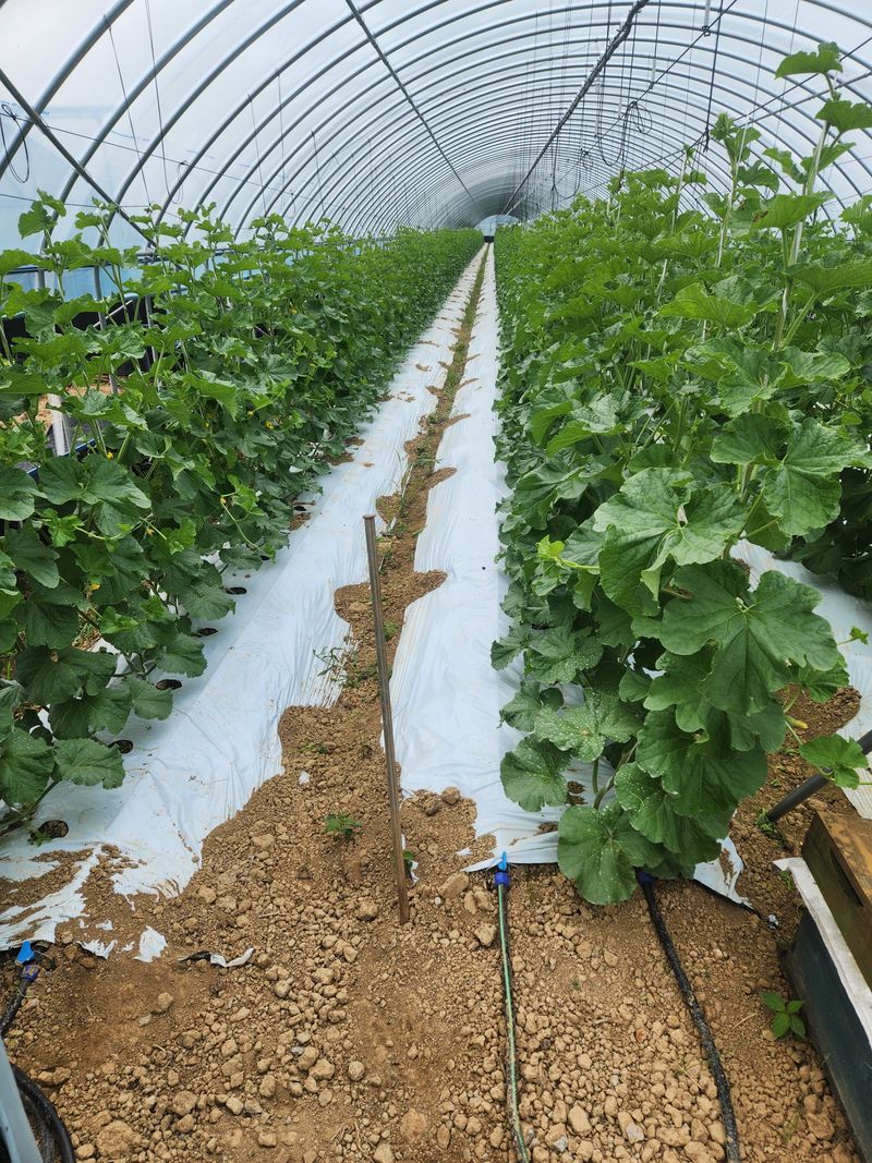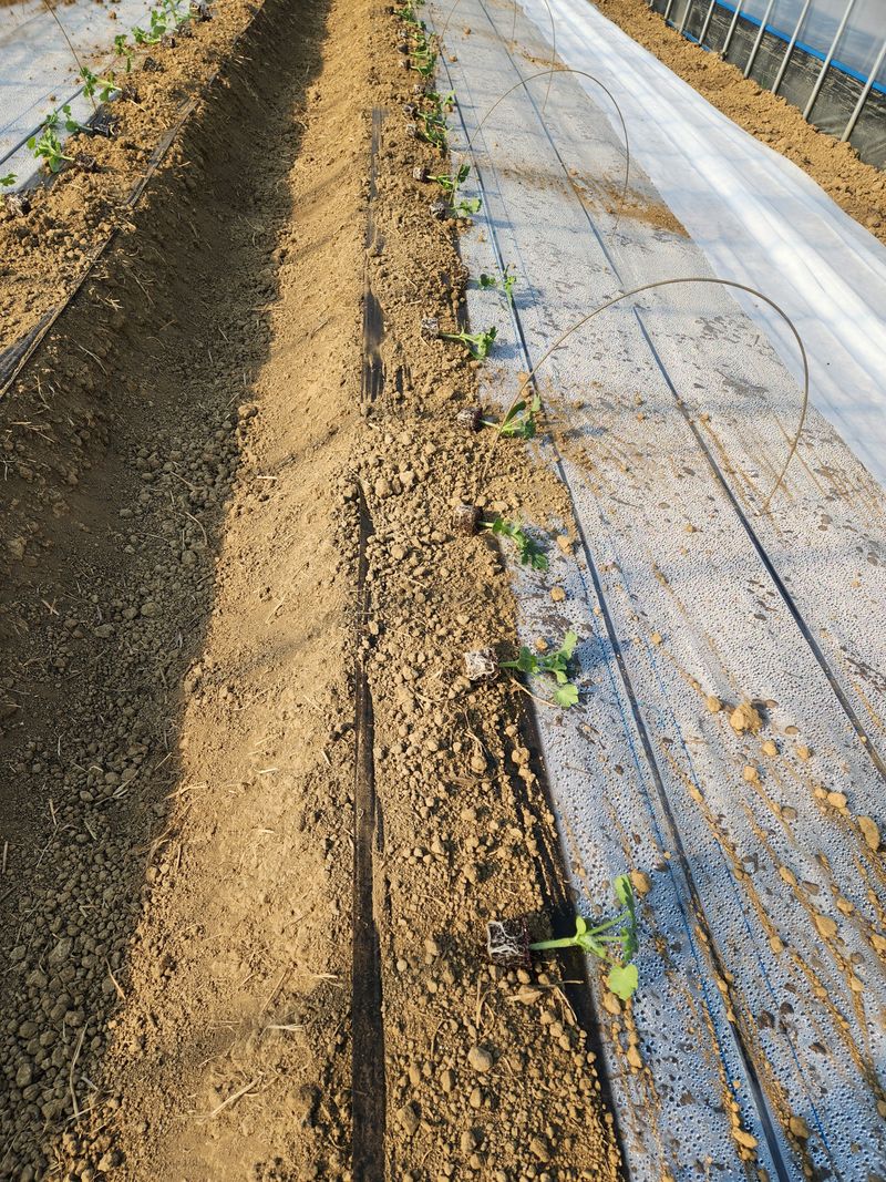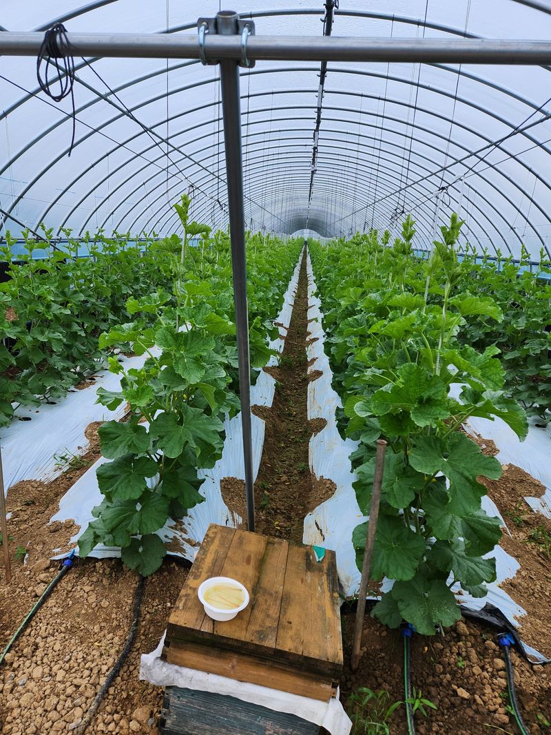2차 정식 메론 3일째되는날 살균제.발근제.영양제 물과함께 점적으로 밀어주기. 1차메롱 생육상태 점검하기