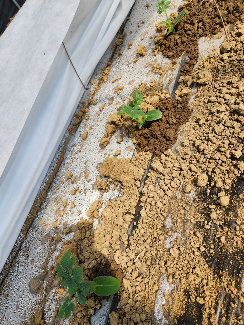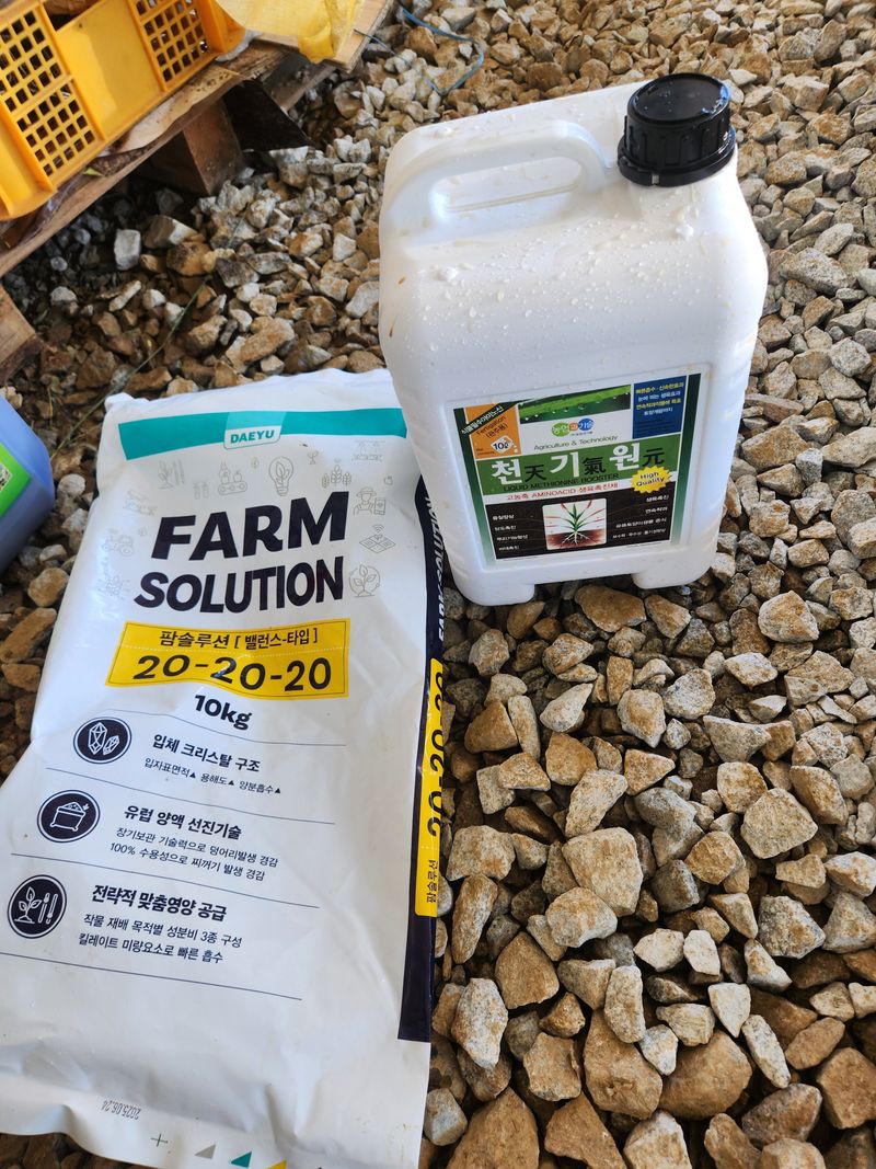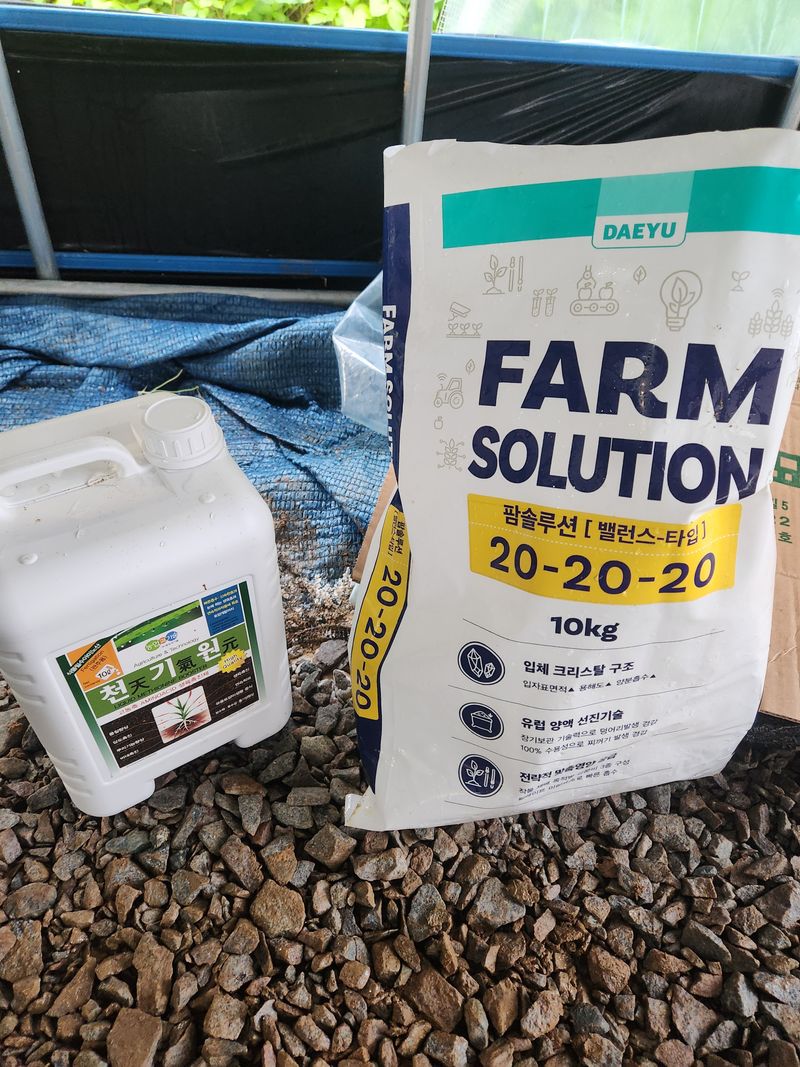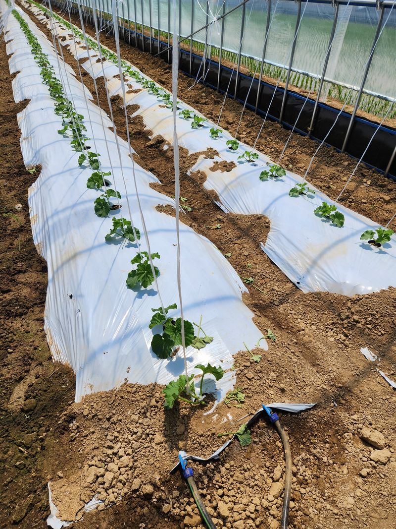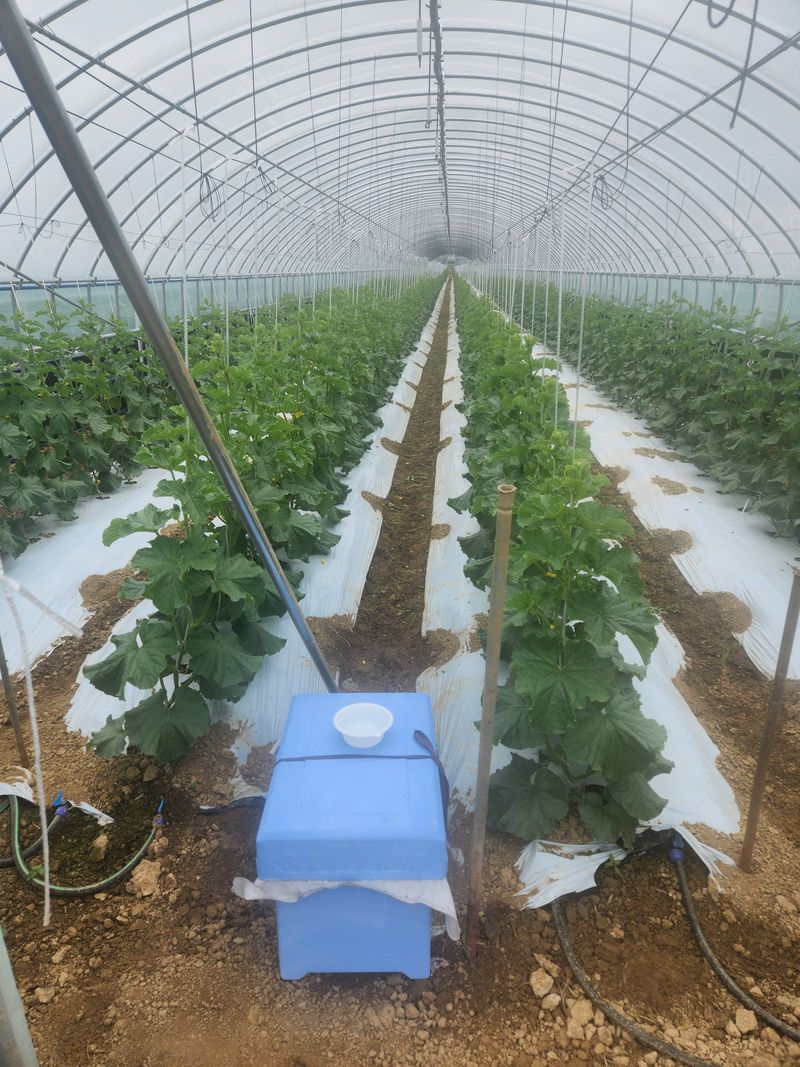 2차 정식 메론 3일째되는날 살균제.발근제.영양제 물과함께 점적으로 밀어주기. 1차메롱 생육상태 점검하기