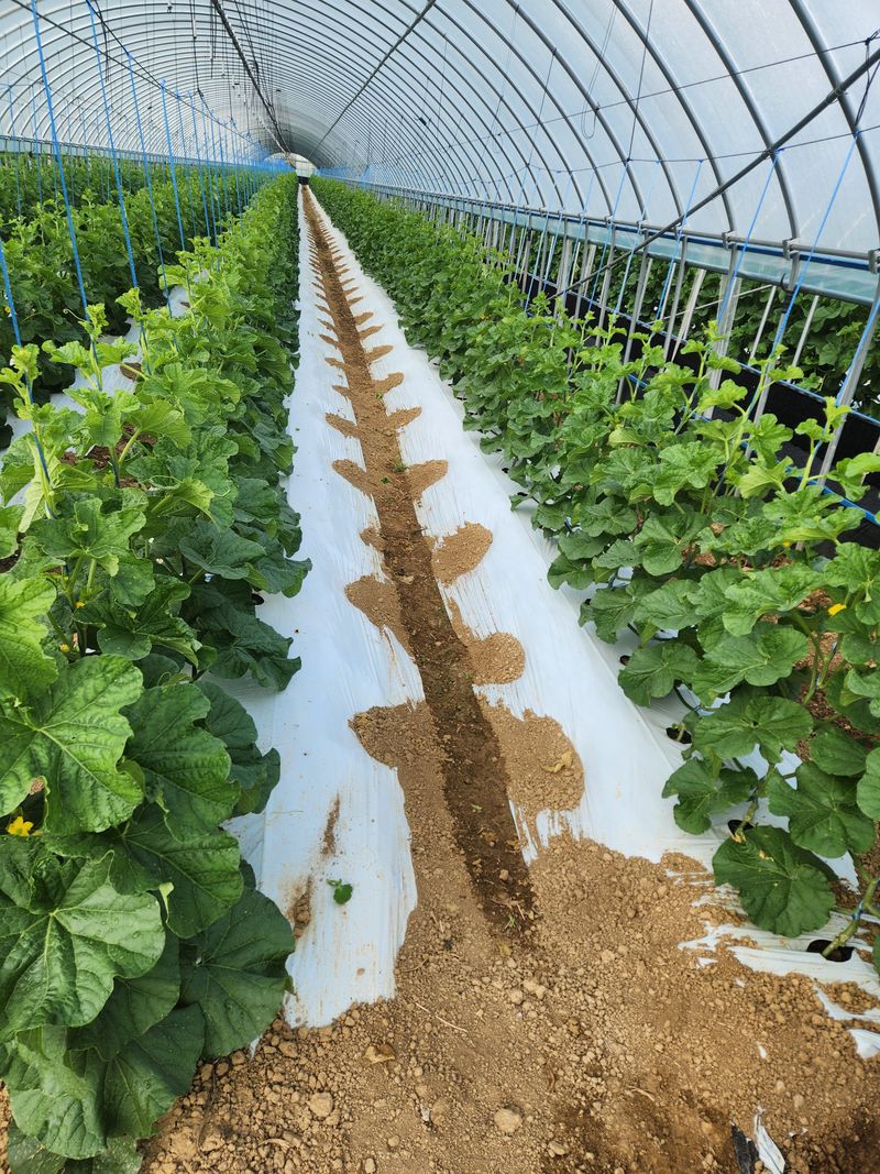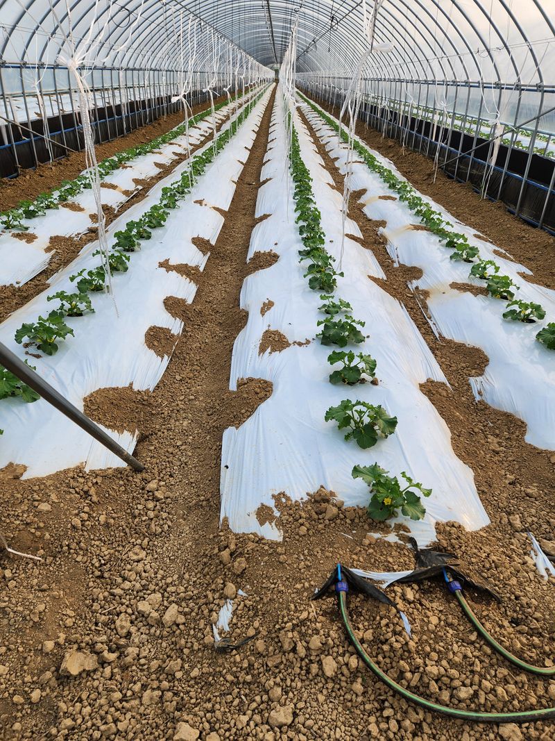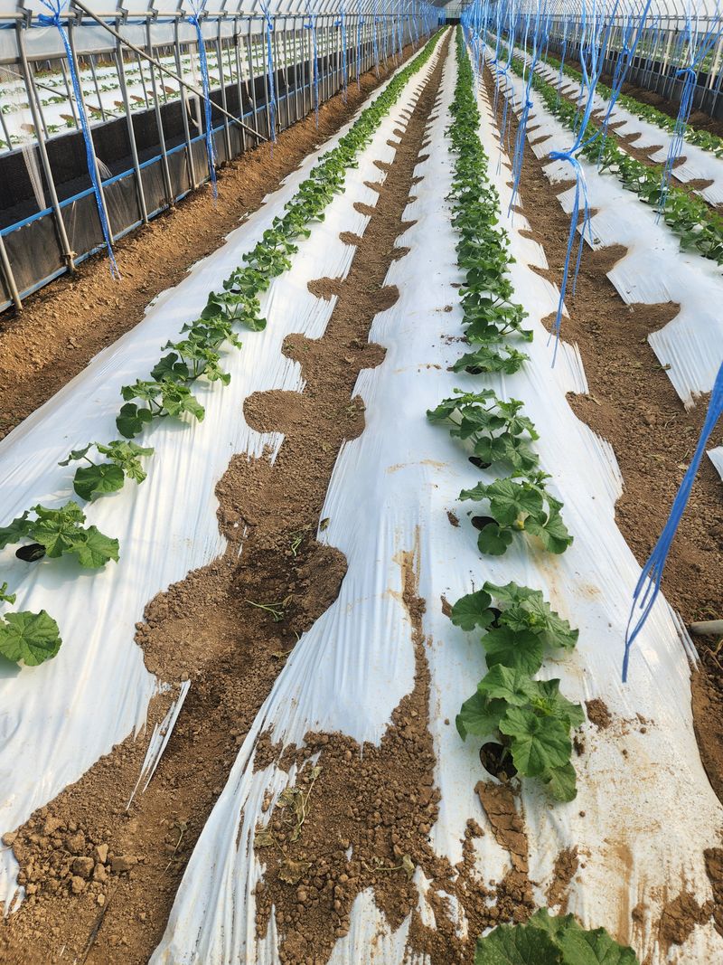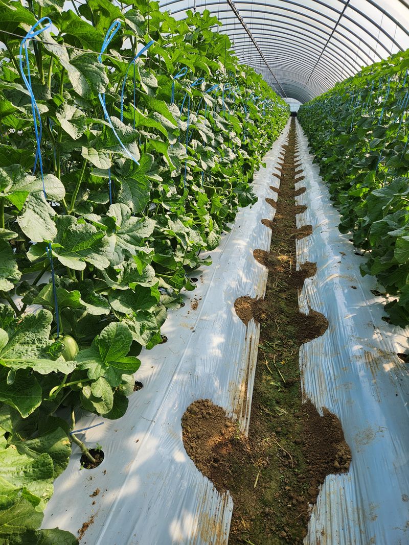 1.2차 정식메롱메롱 생육상태 점검하고 점적호수 벌 리기작업