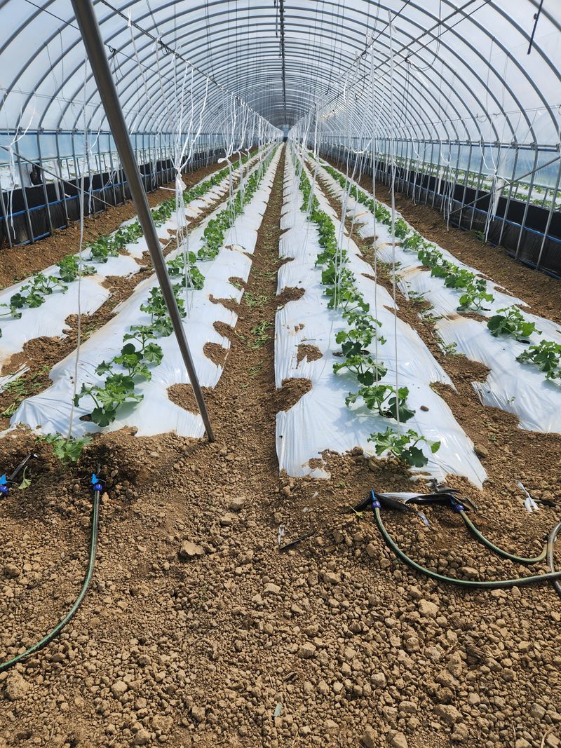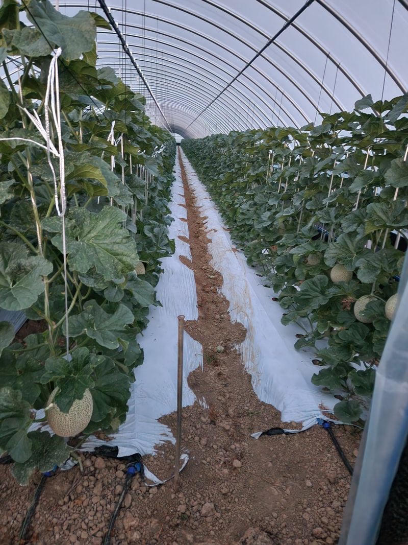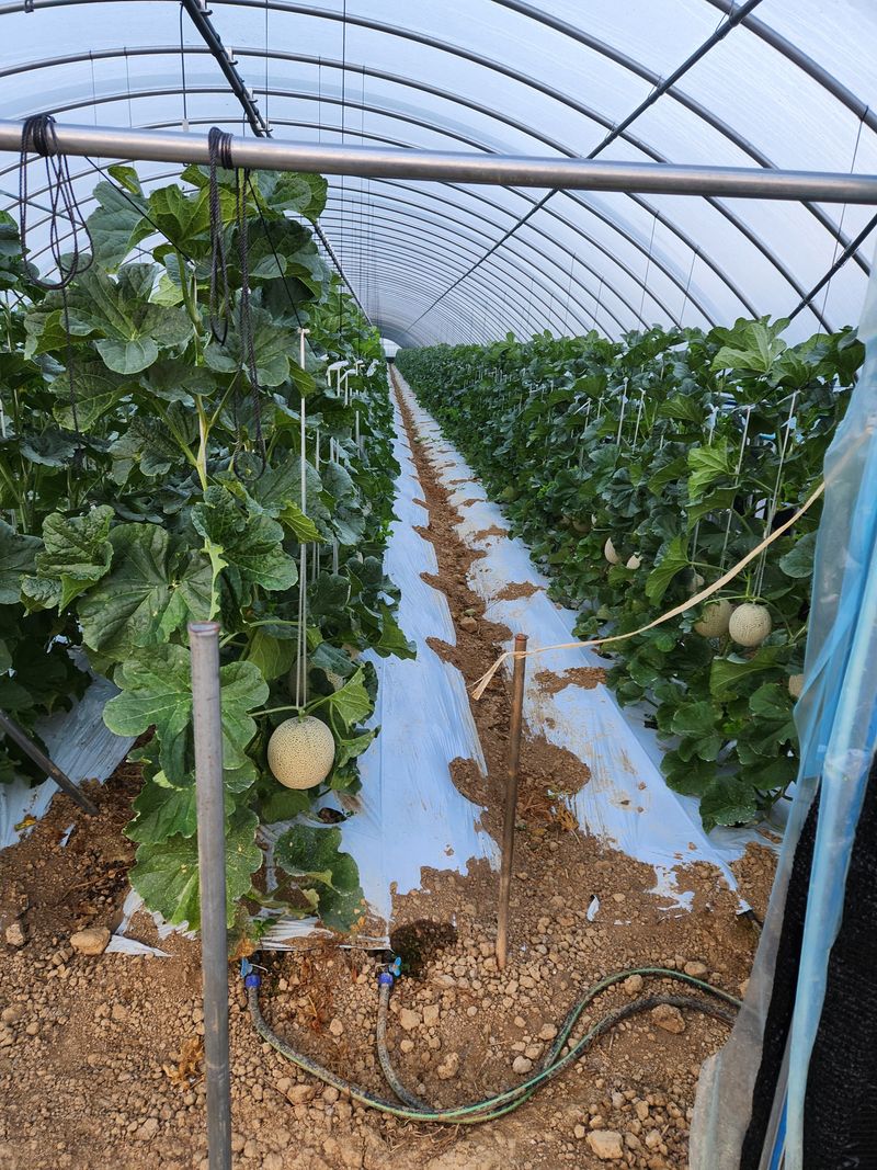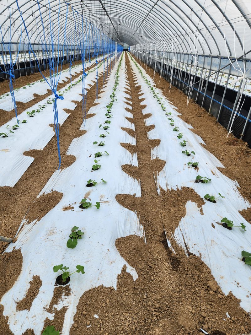 1.2차 정식메롱메롱 생육상태 점검하고 점적호수 벌 리기작업
