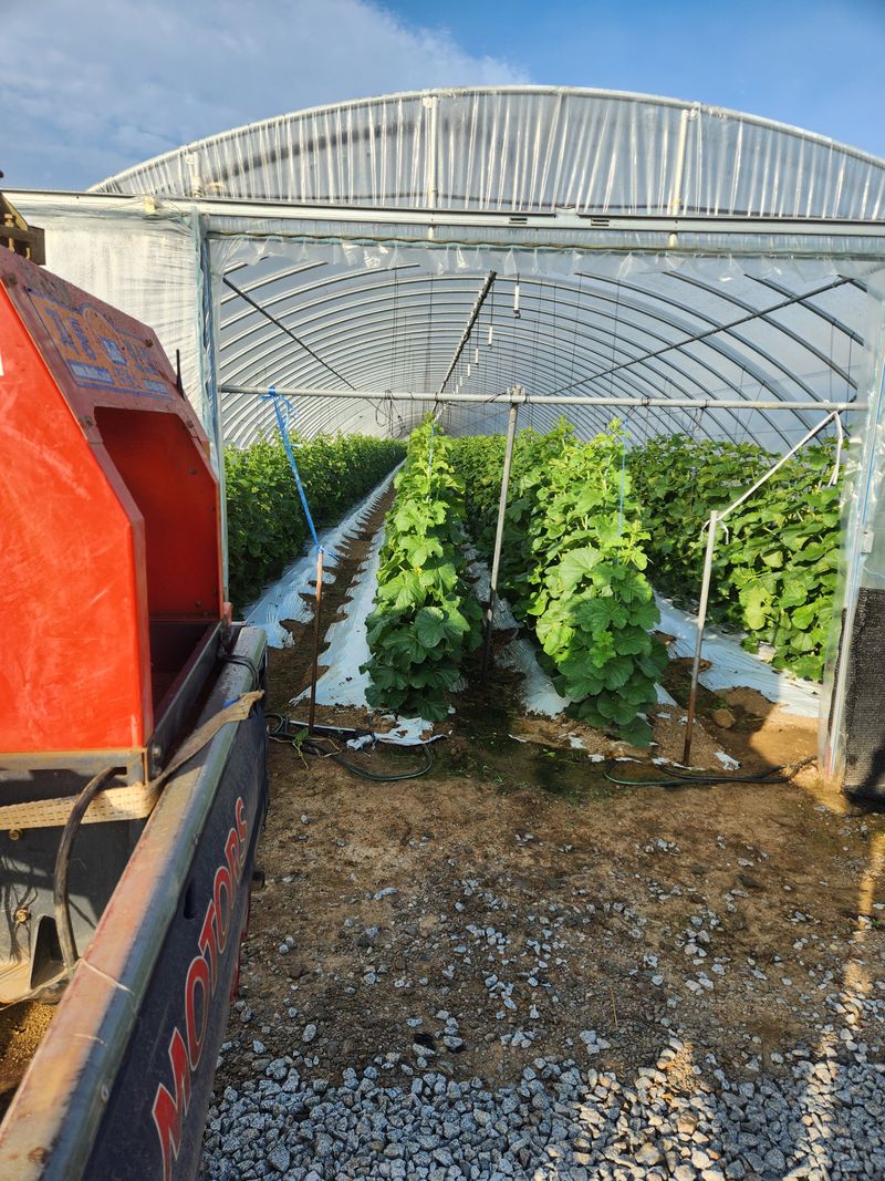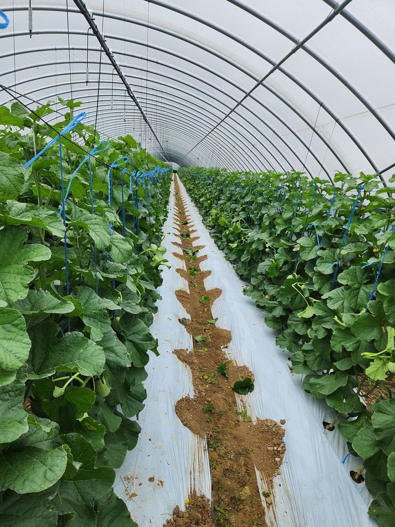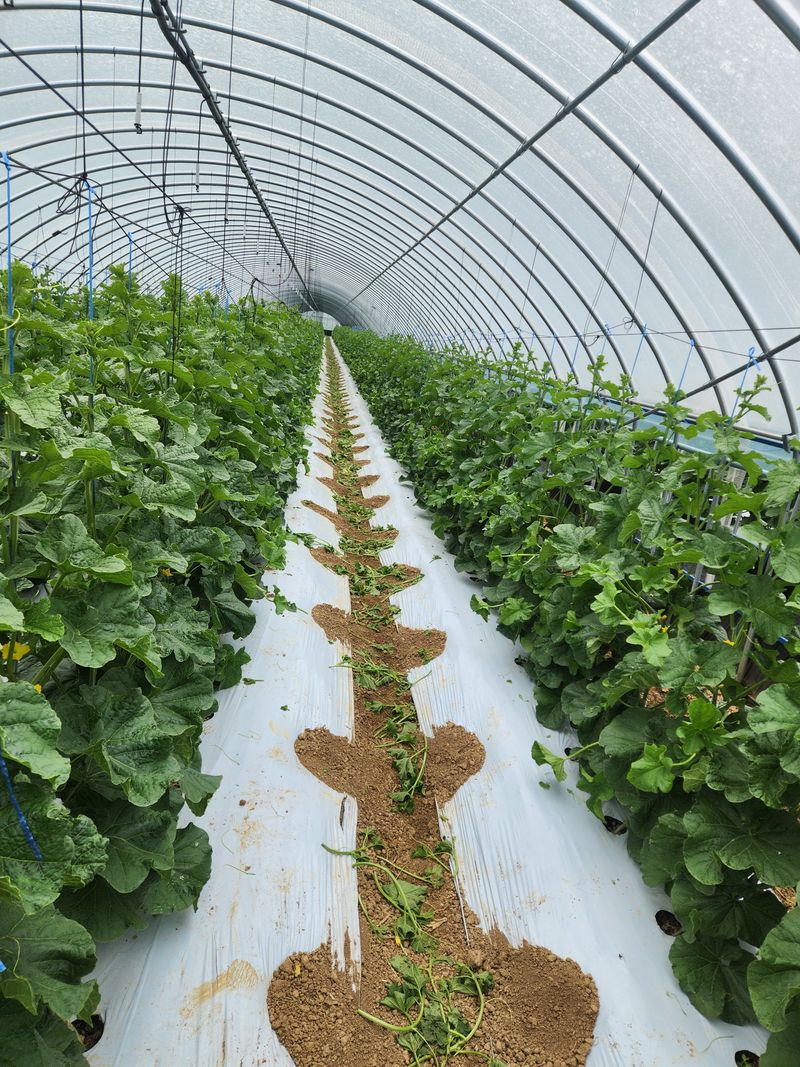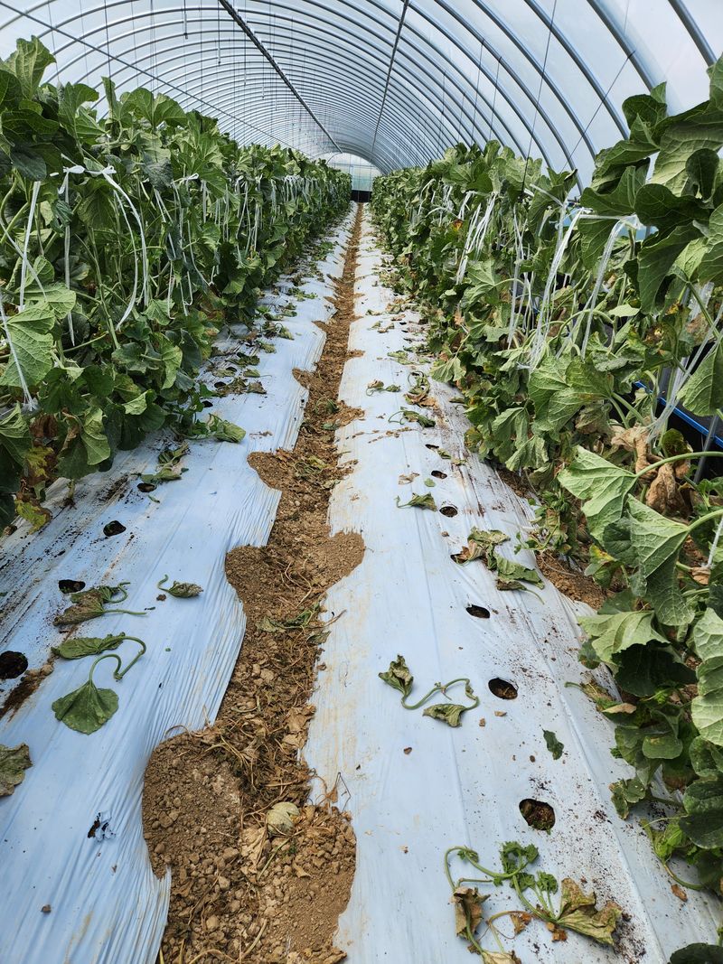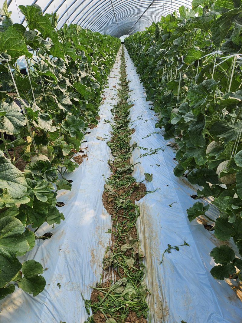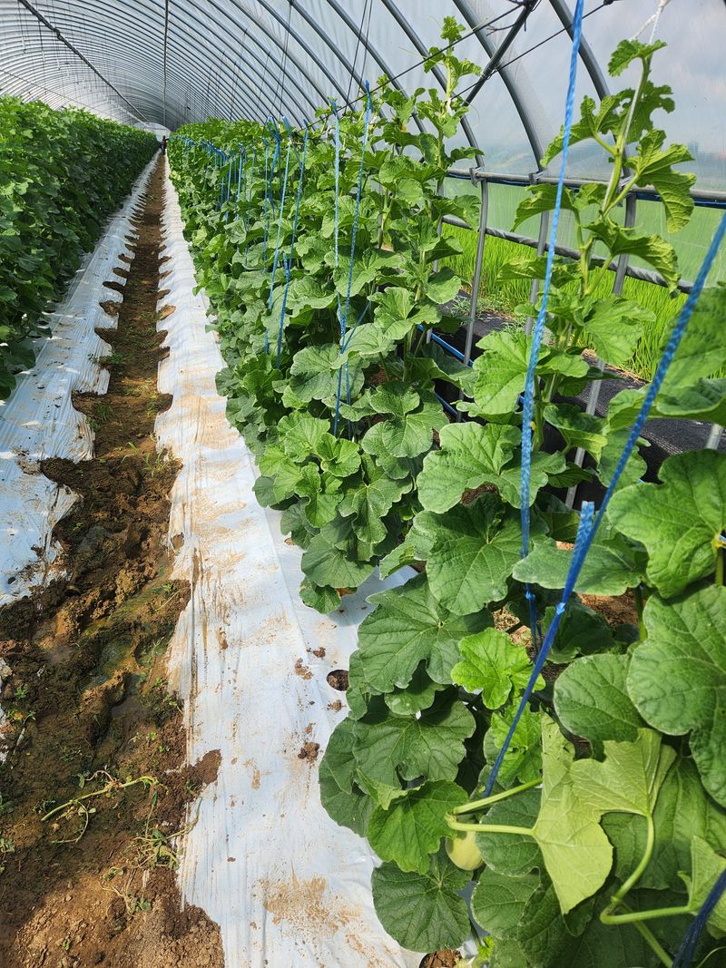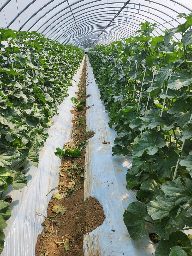1차 정식메롱 두번째 순감아돌리기 여자두명투입 하우스 두동반 작업