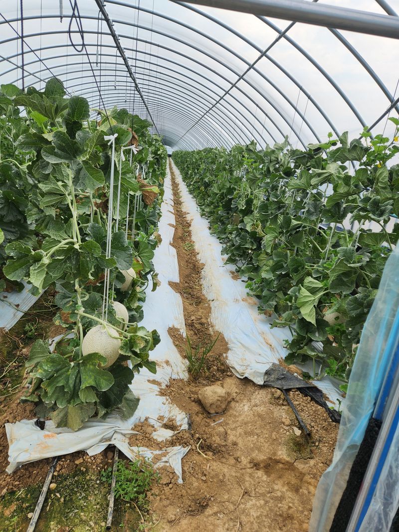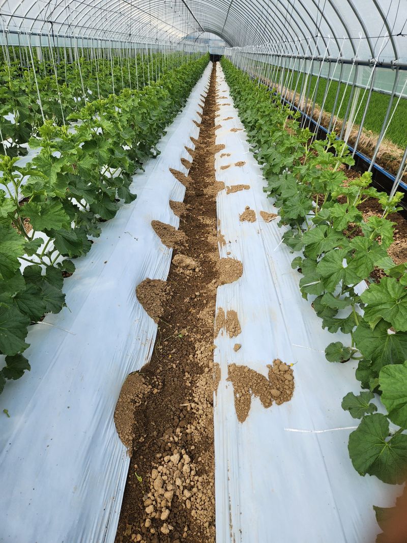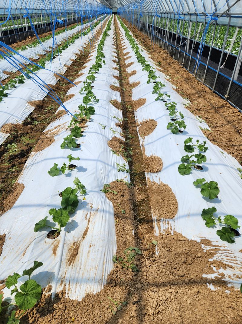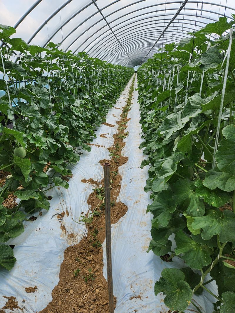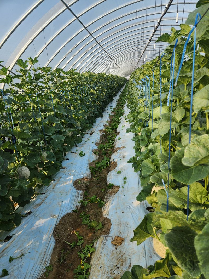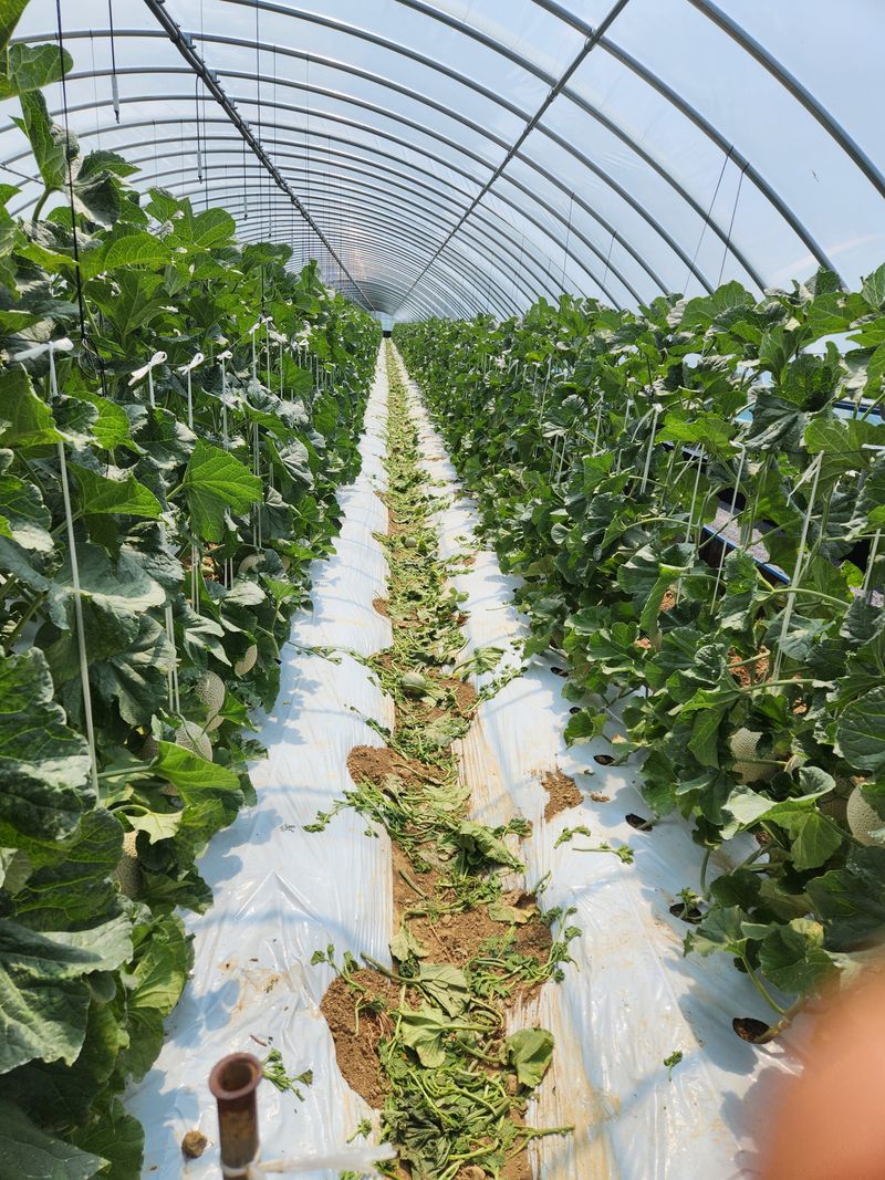 1차 정식메롱 두번째 순감아돌리기 여자두명투입 하우스 두동반 작업