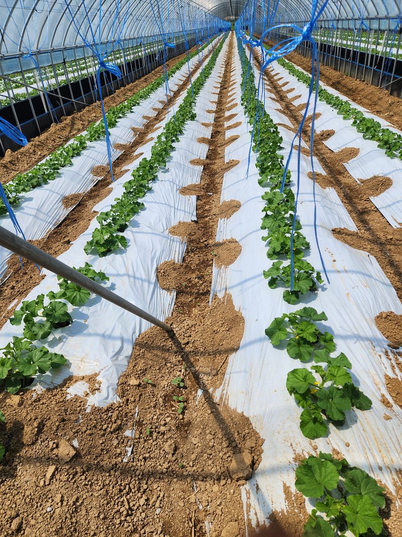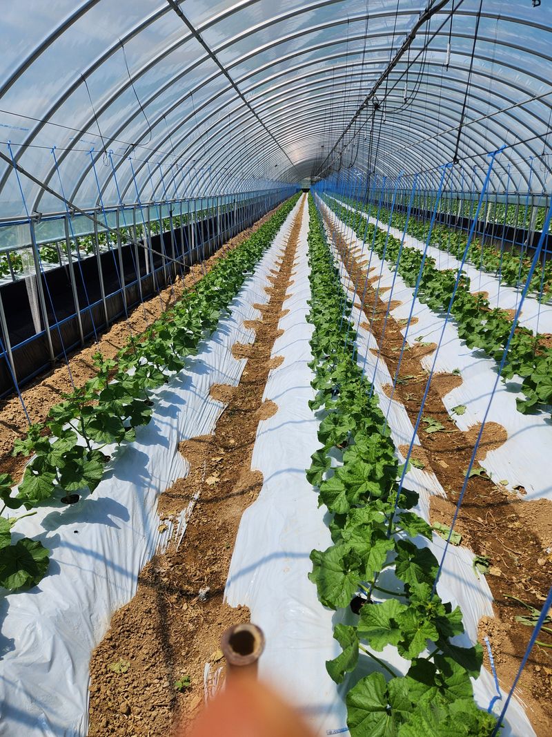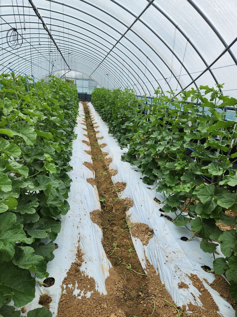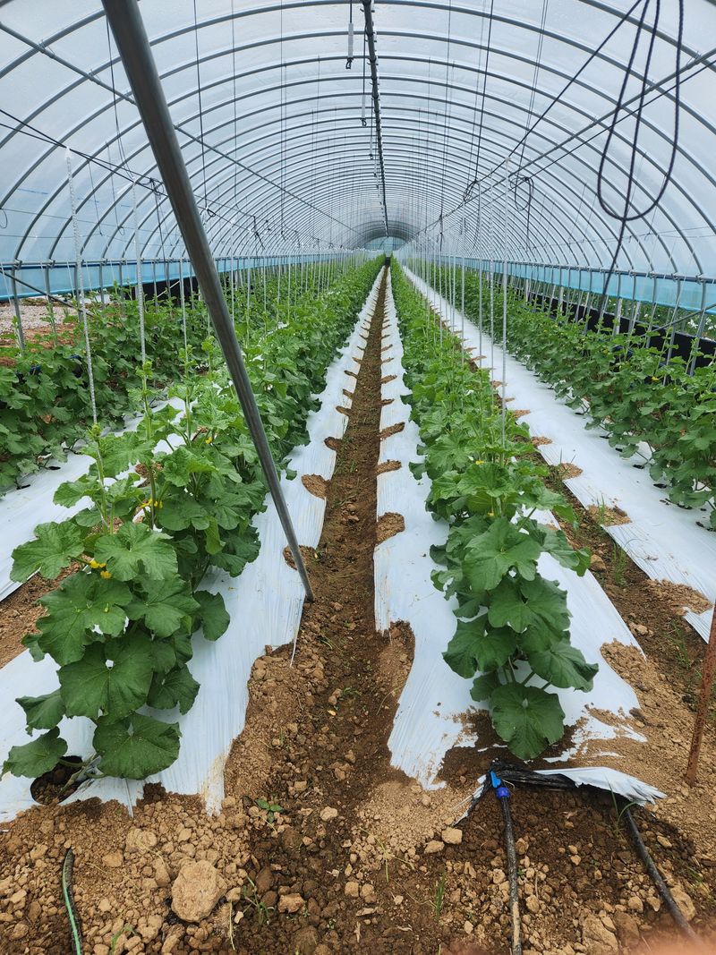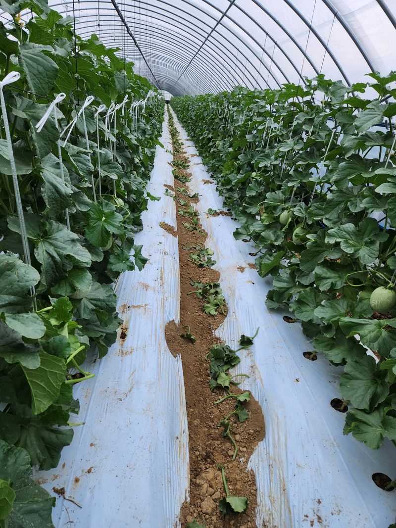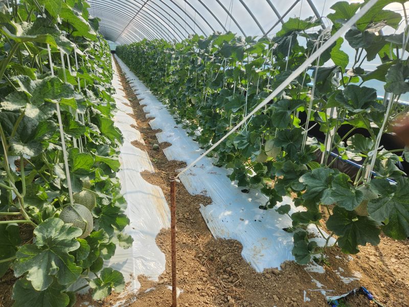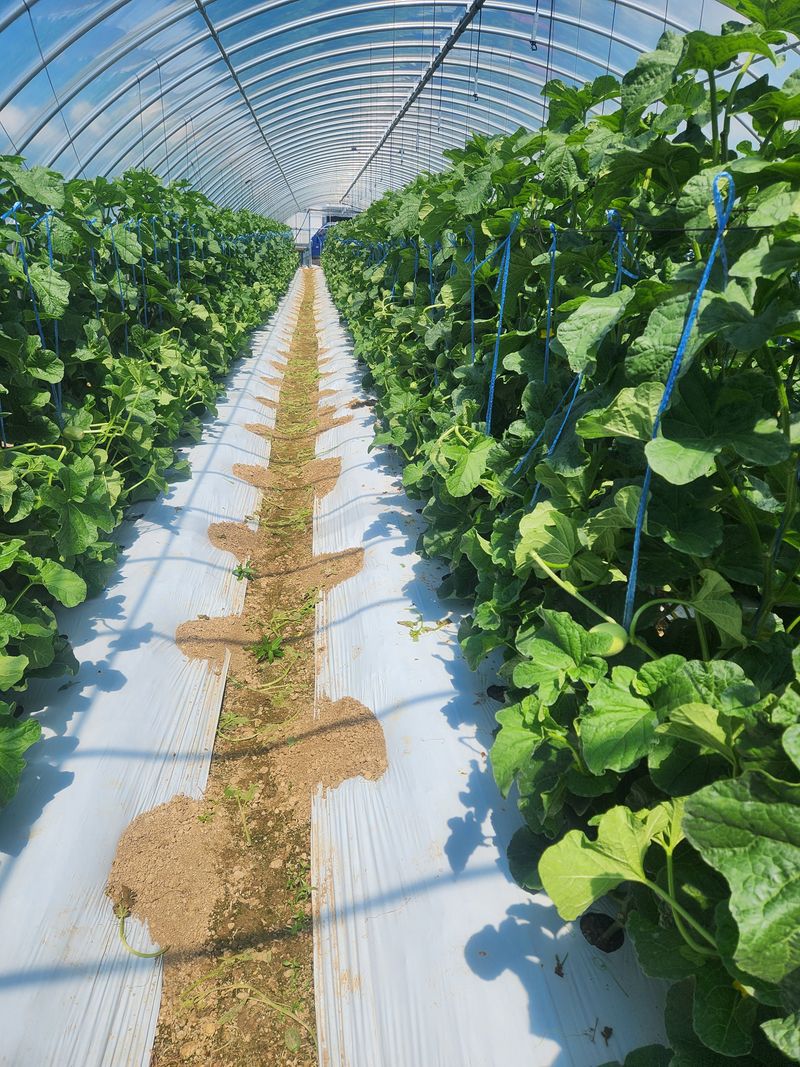 1차 정식메롱 두번째 순감아돌리기 여자두명투입 하우스 두동반 작업
