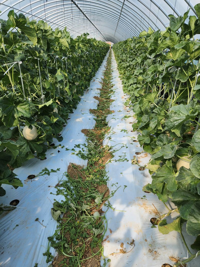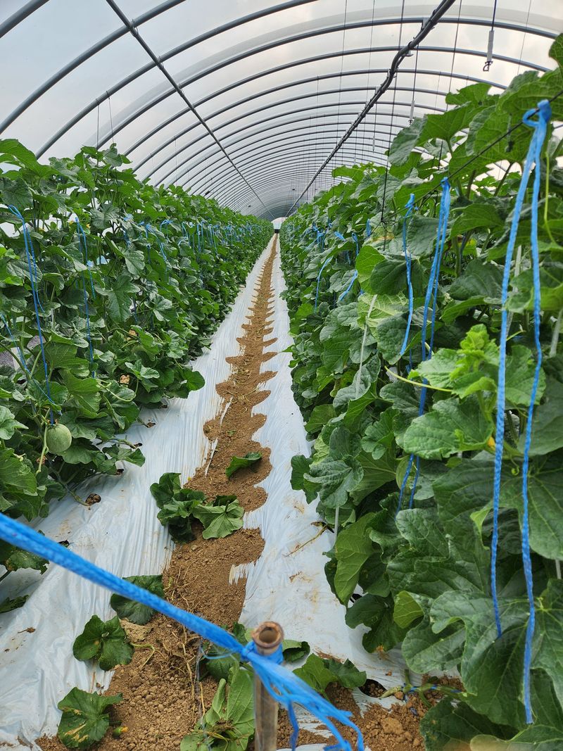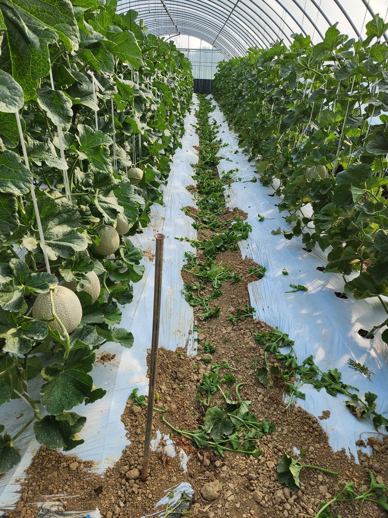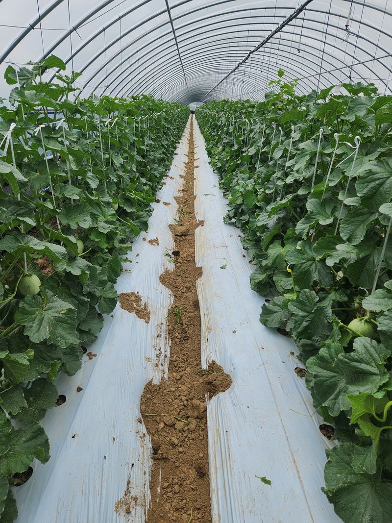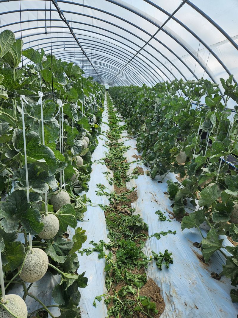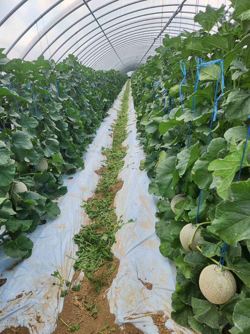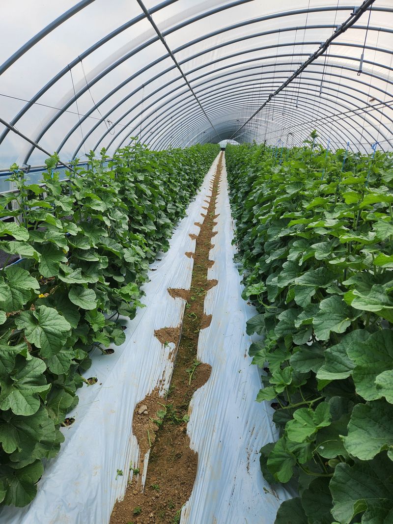 1차 정식메롱 두번째 순감아돌리기 여자두명투입 하우스 두동반 작업
