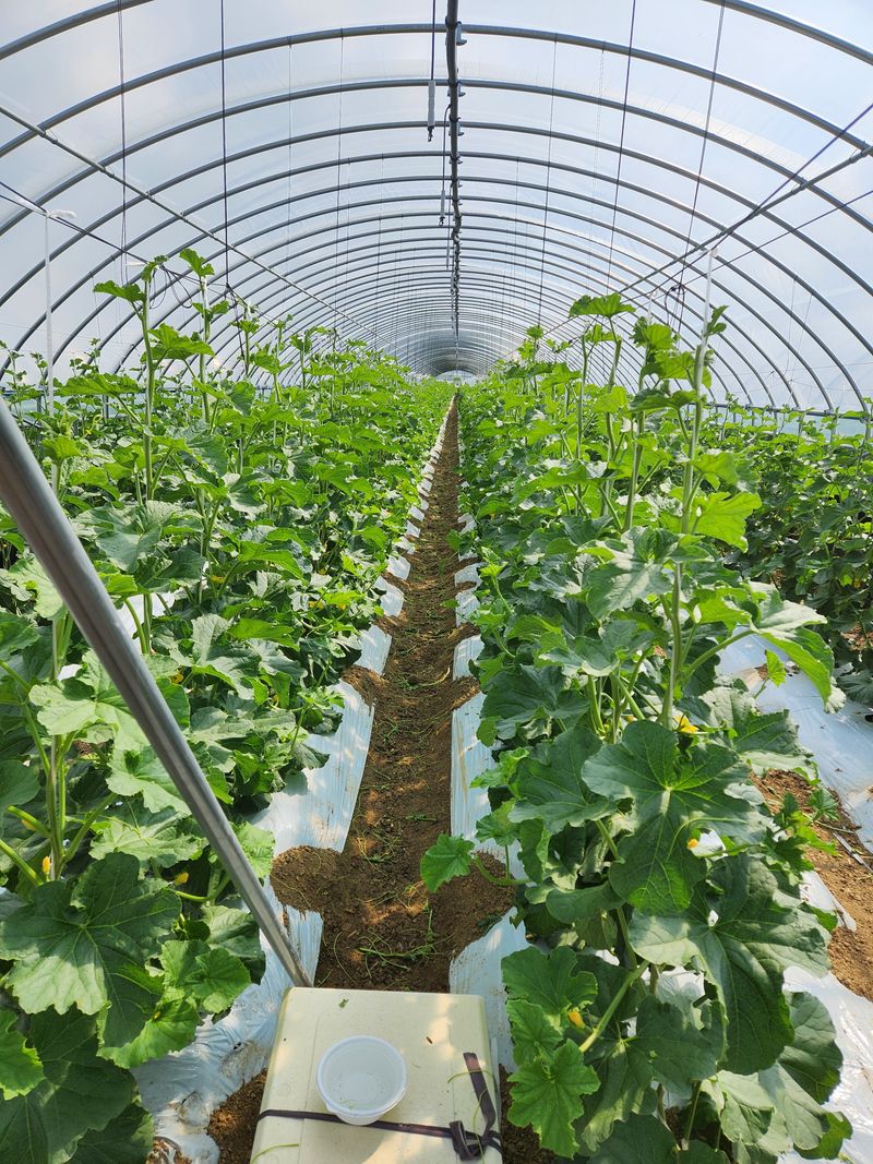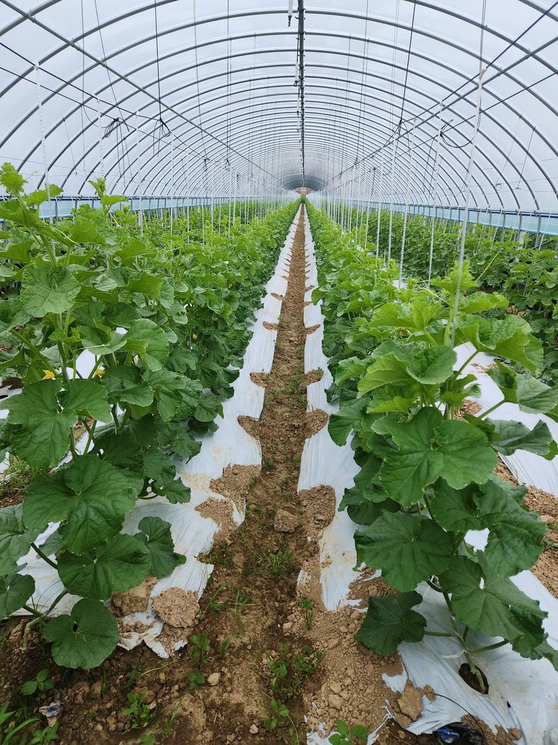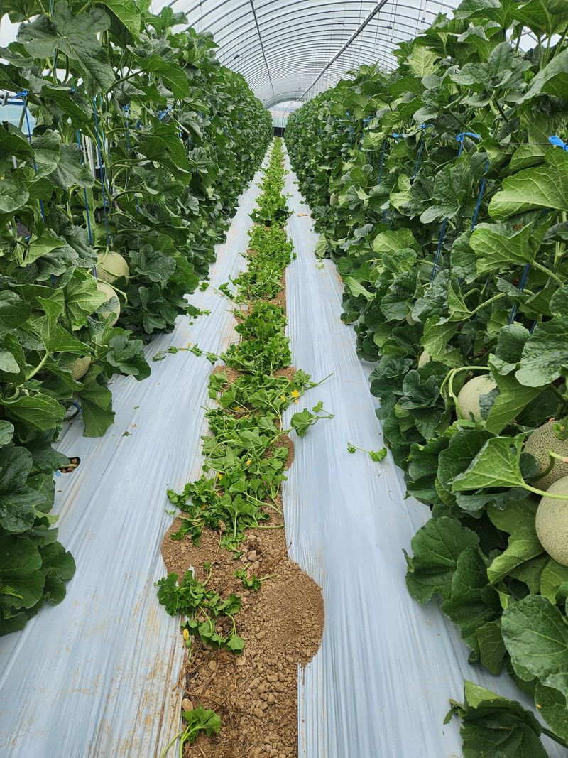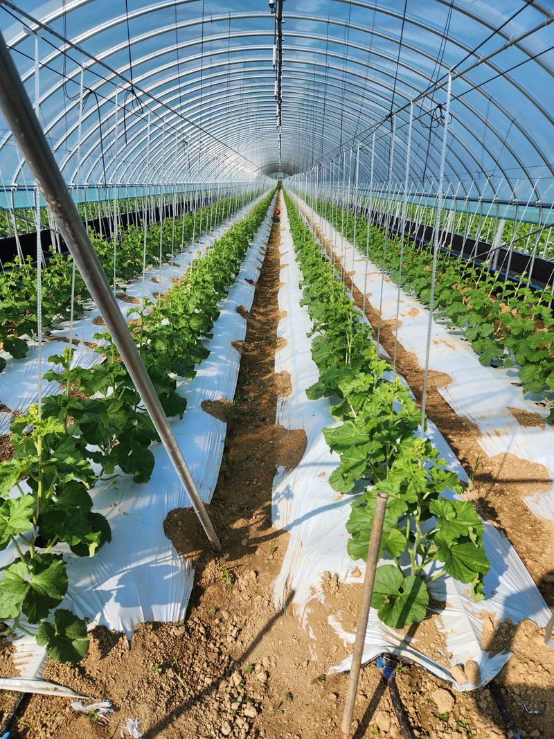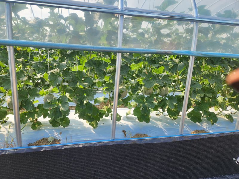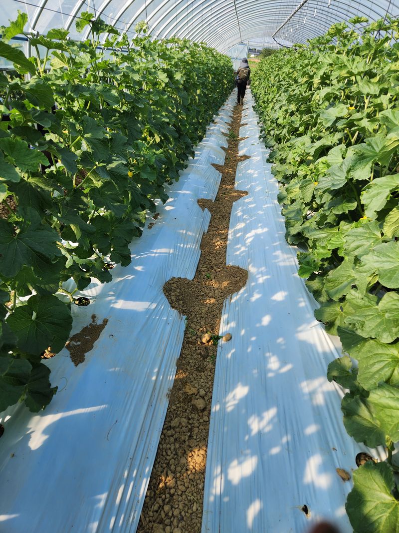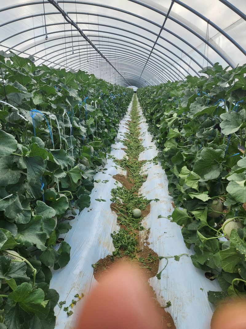 1차 정식메롱 두번째 순감아돌리기 여자두명투입 하우스 두동반 작업