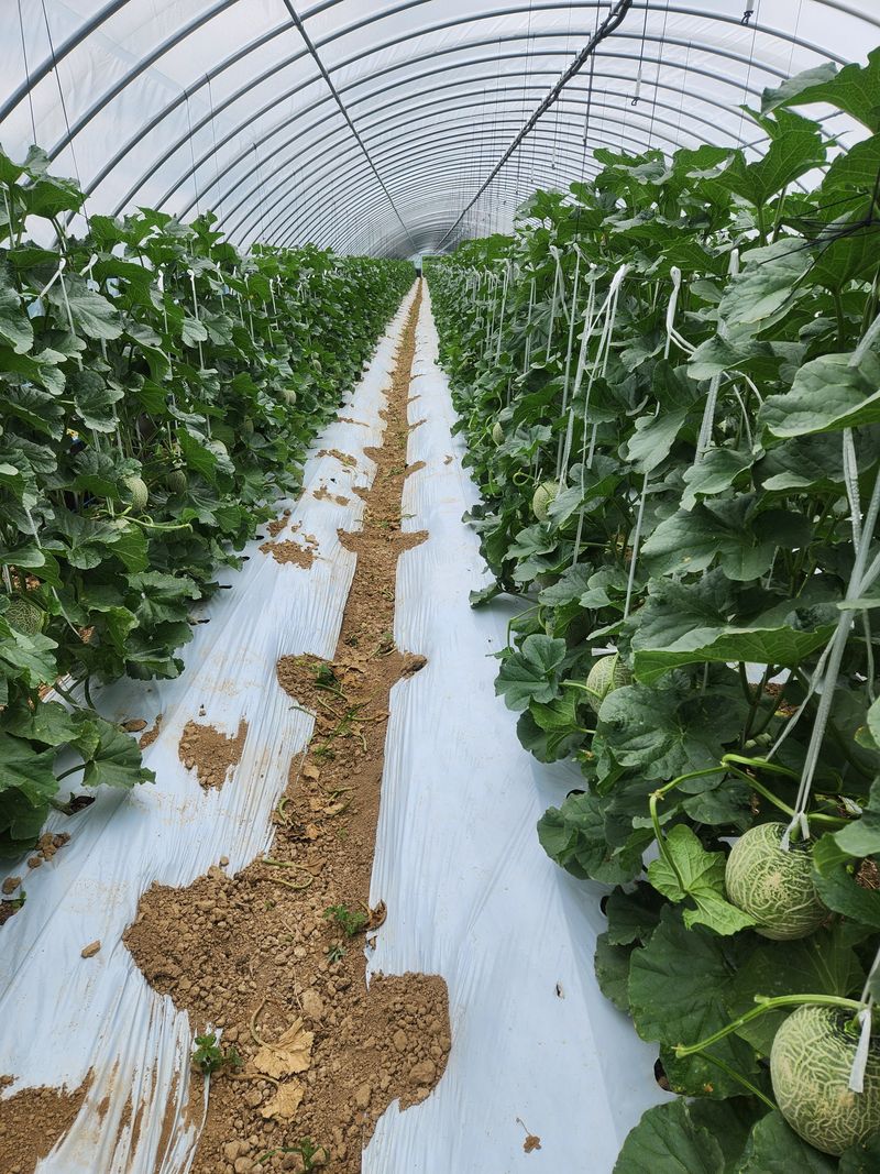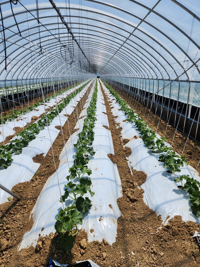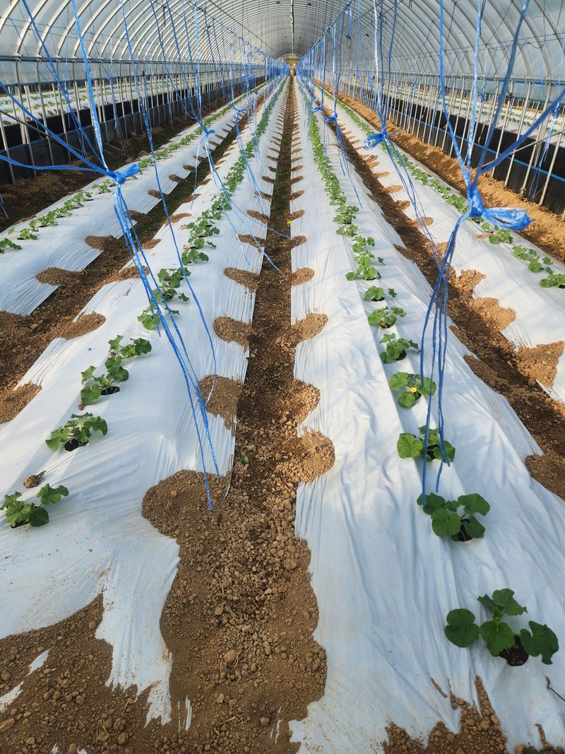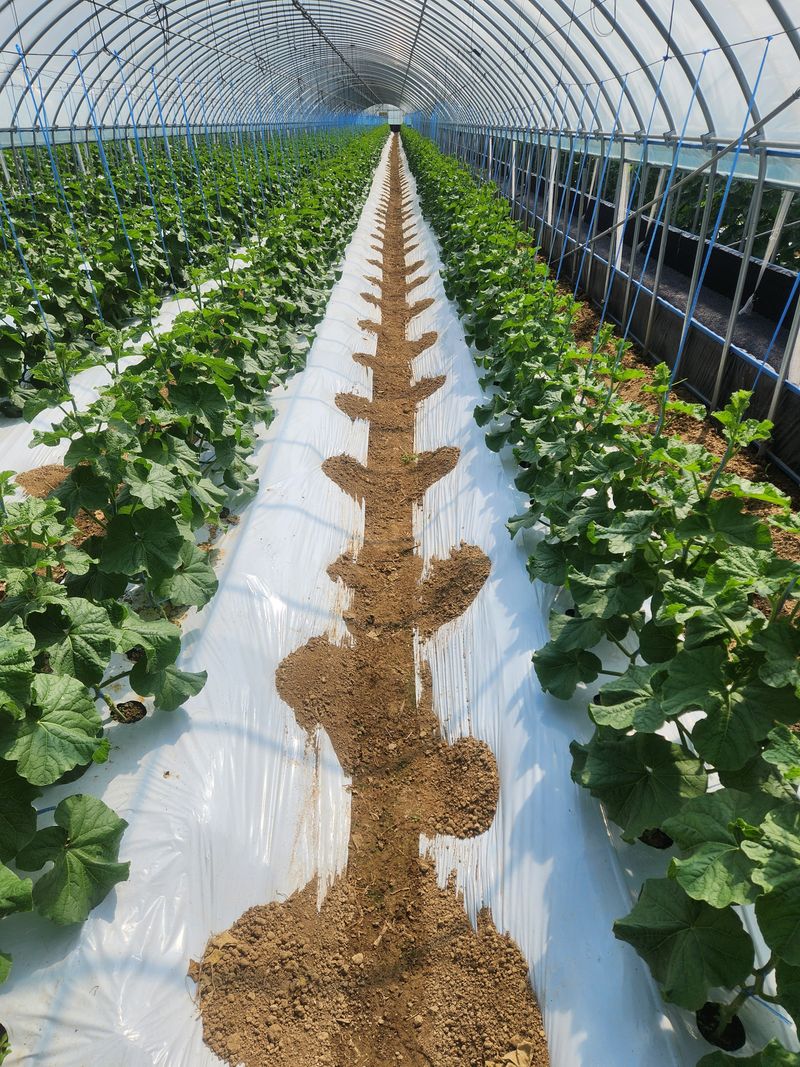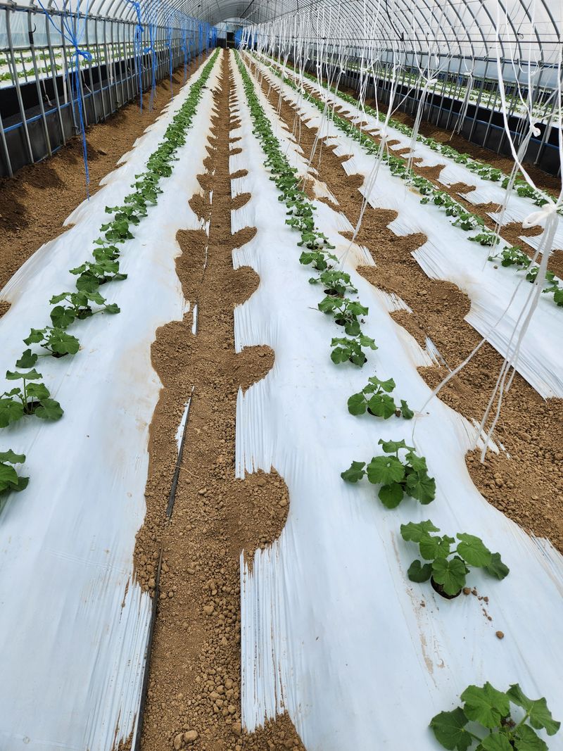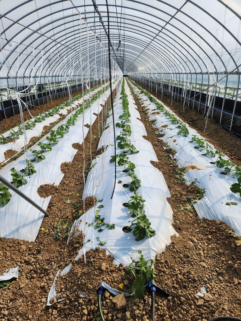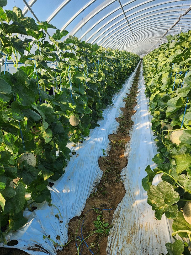 1차 정식메롱 두번째 순감아돌리기 여자두명투입 하우스 두동반 작업