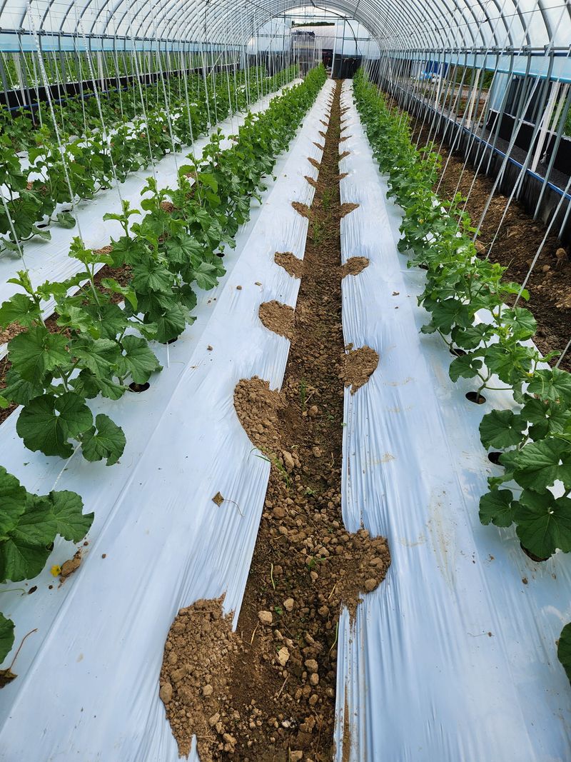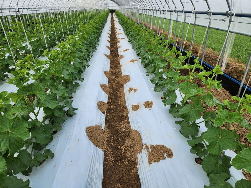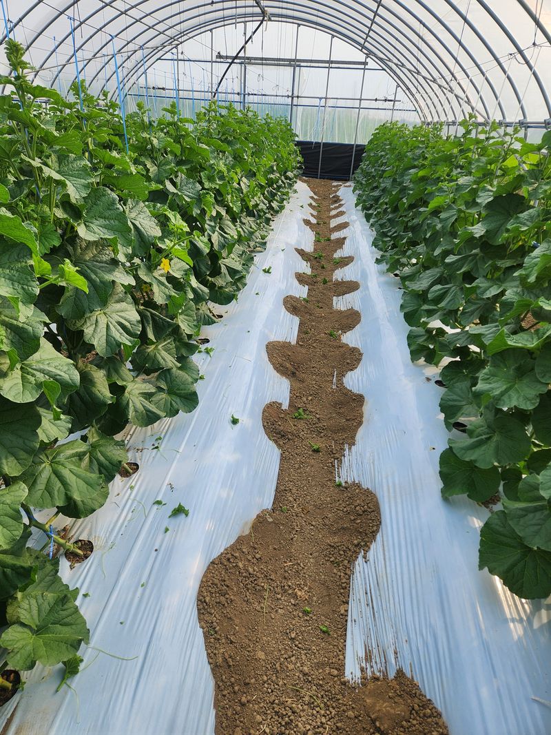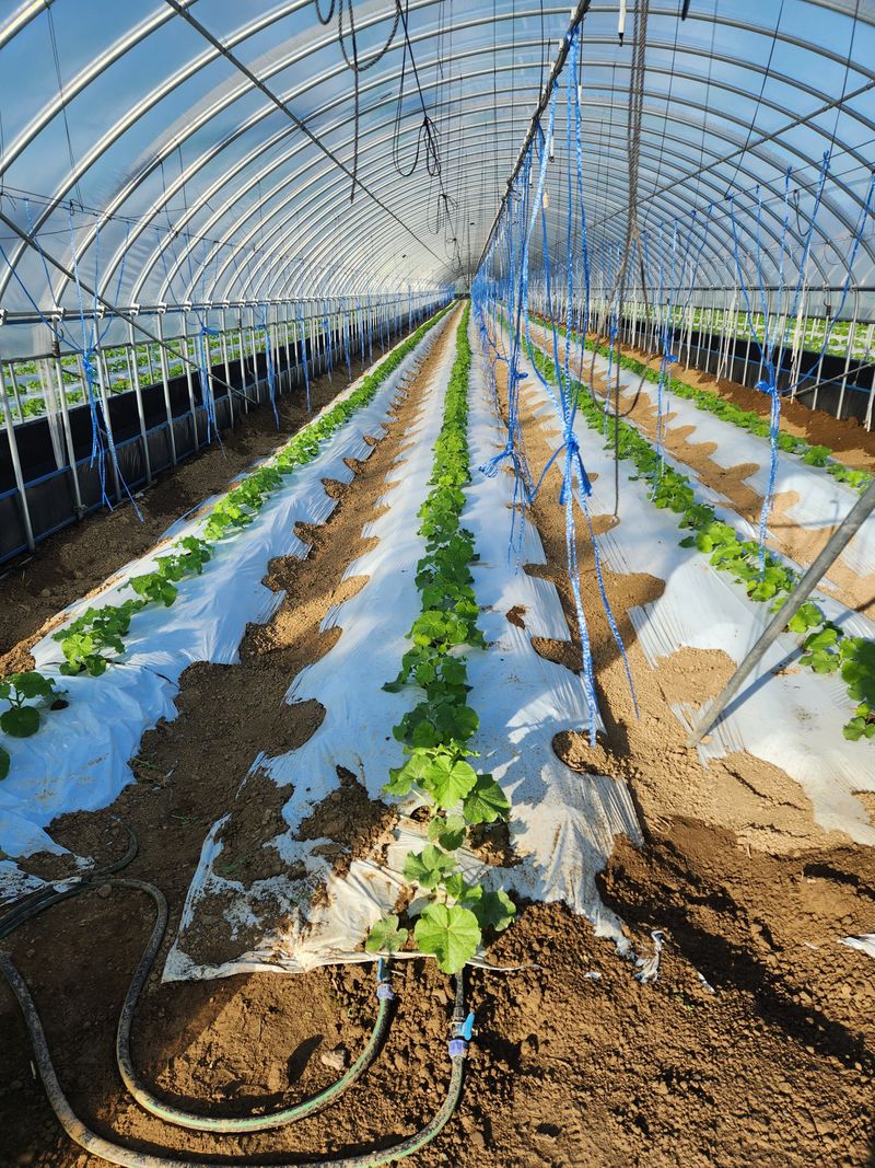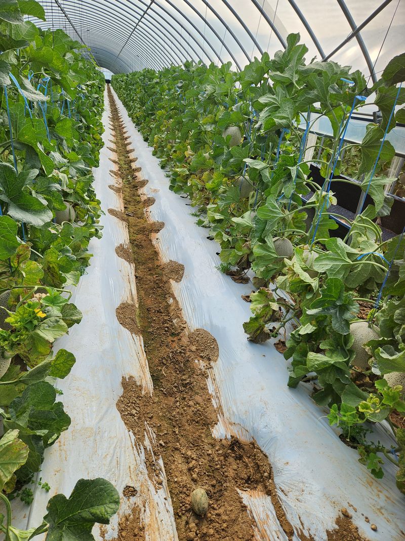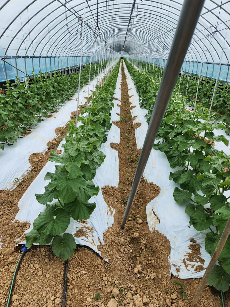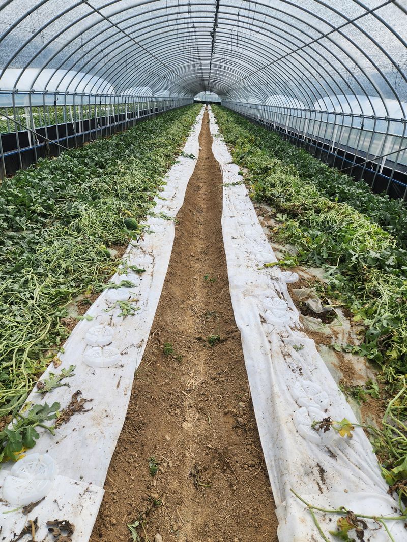 1차 정식메롱 두번째 순감아돌리기 여자두명투입 하우스 두동반 작업