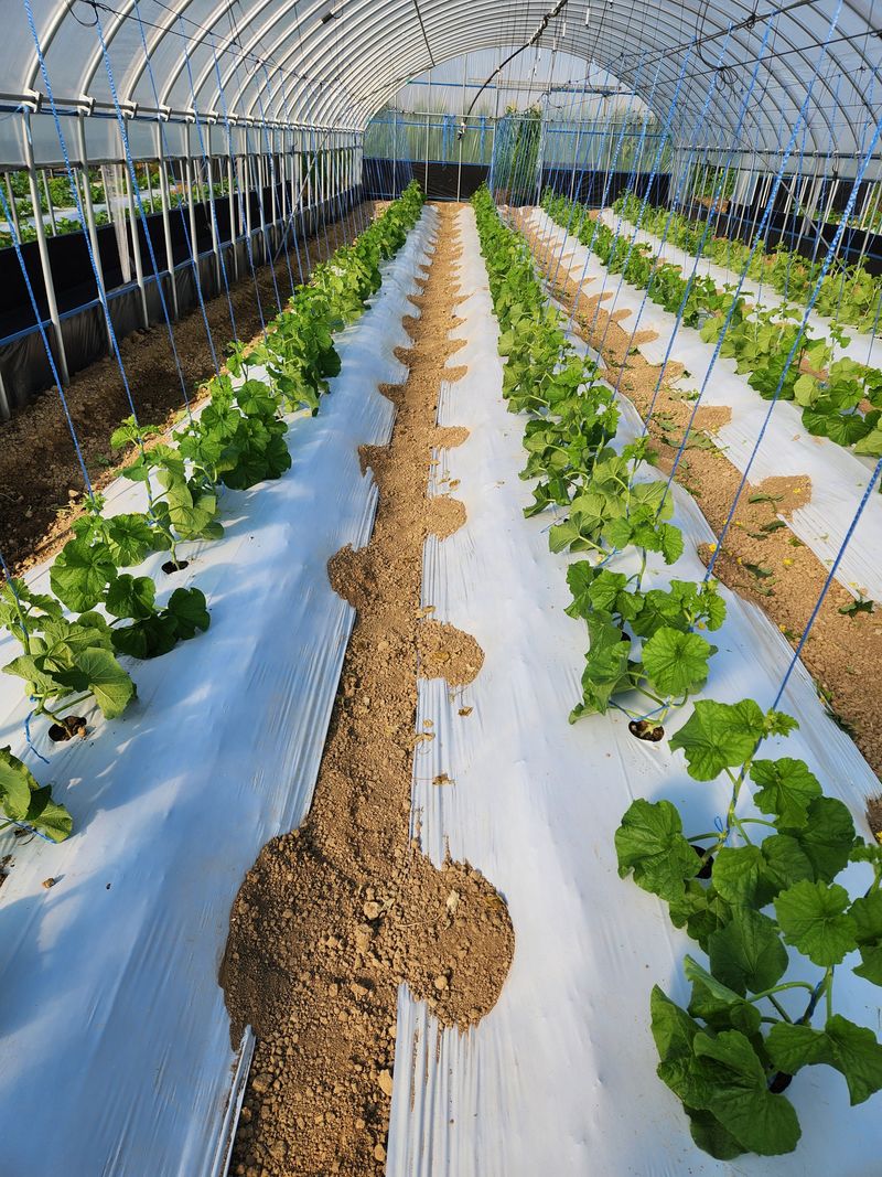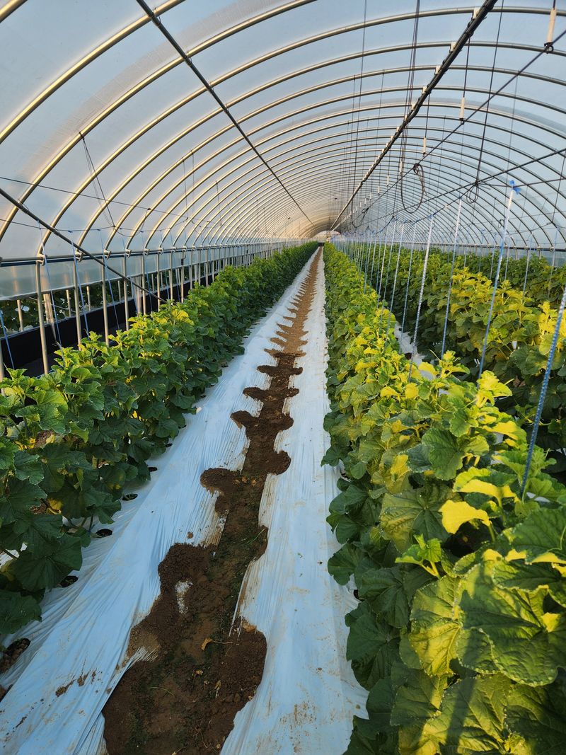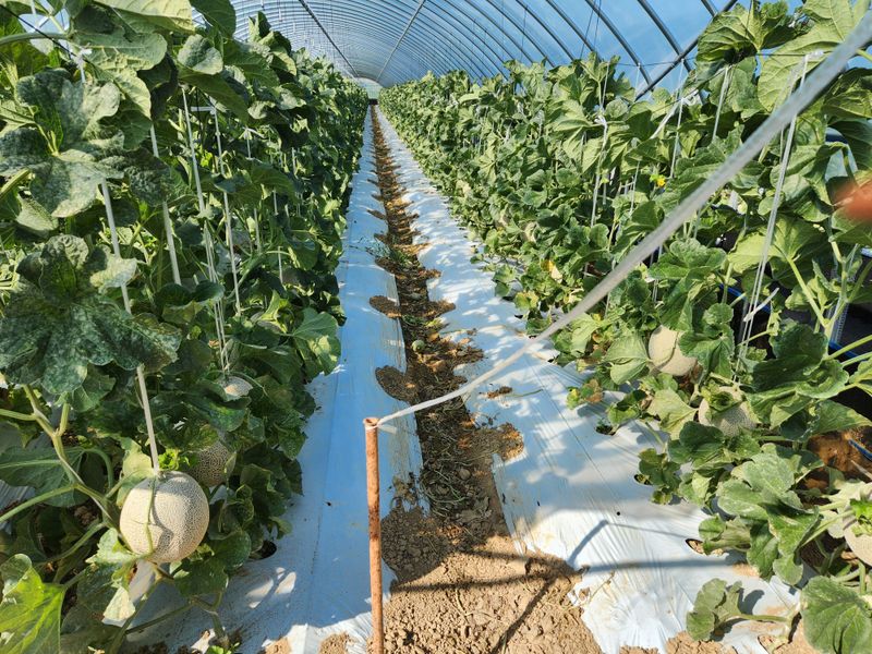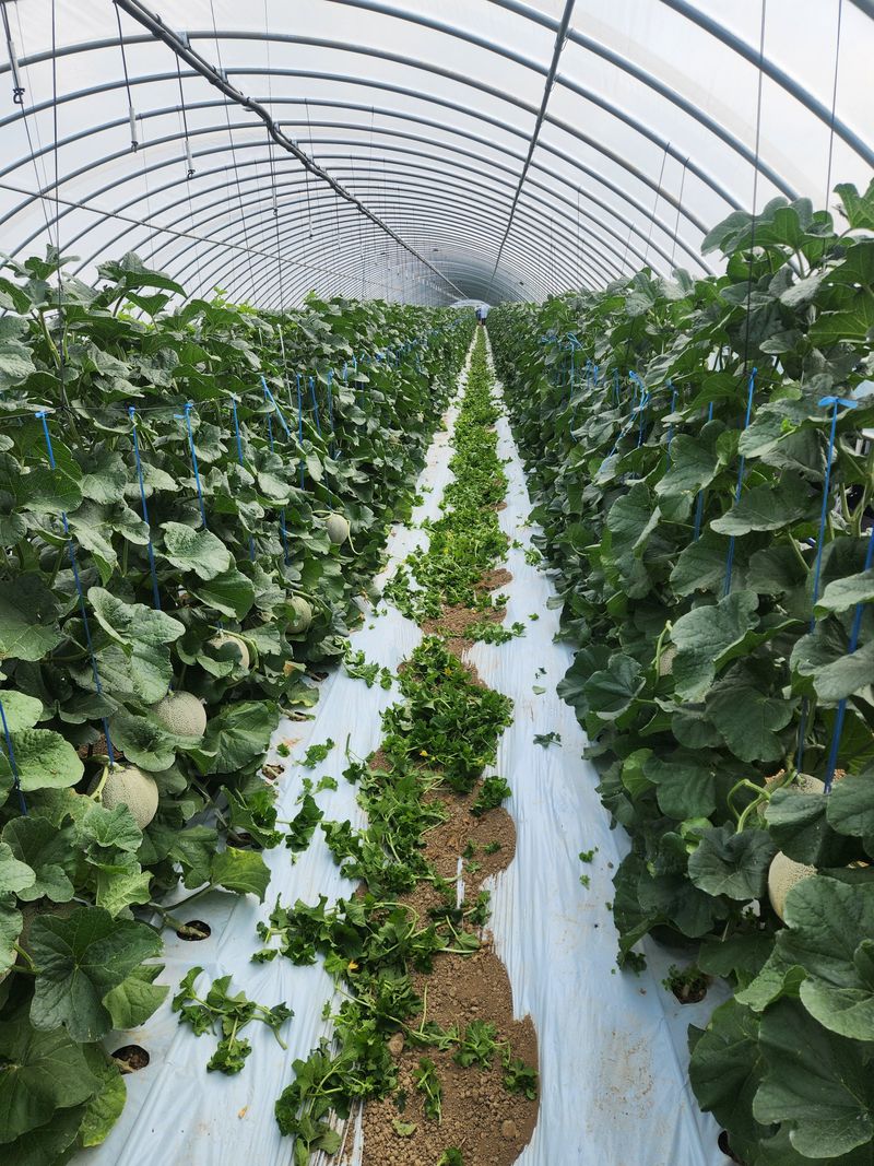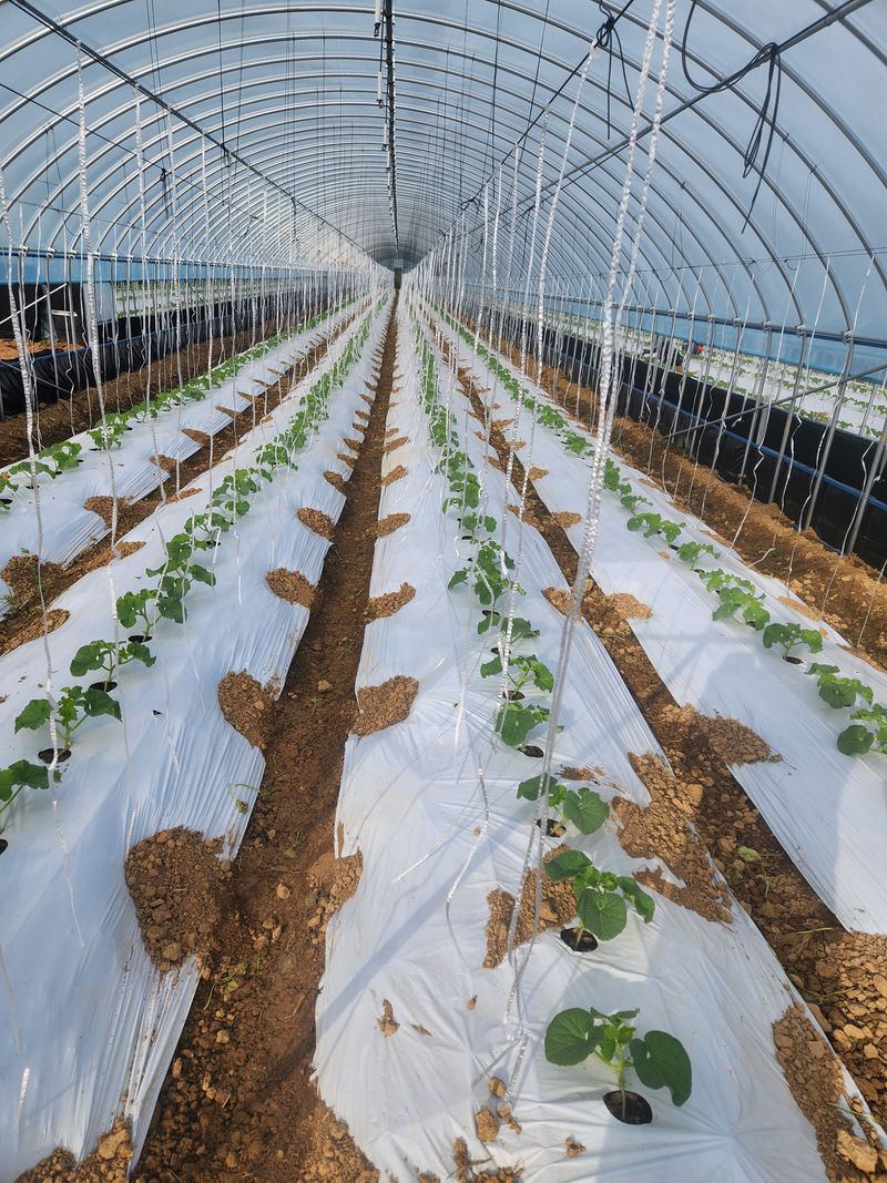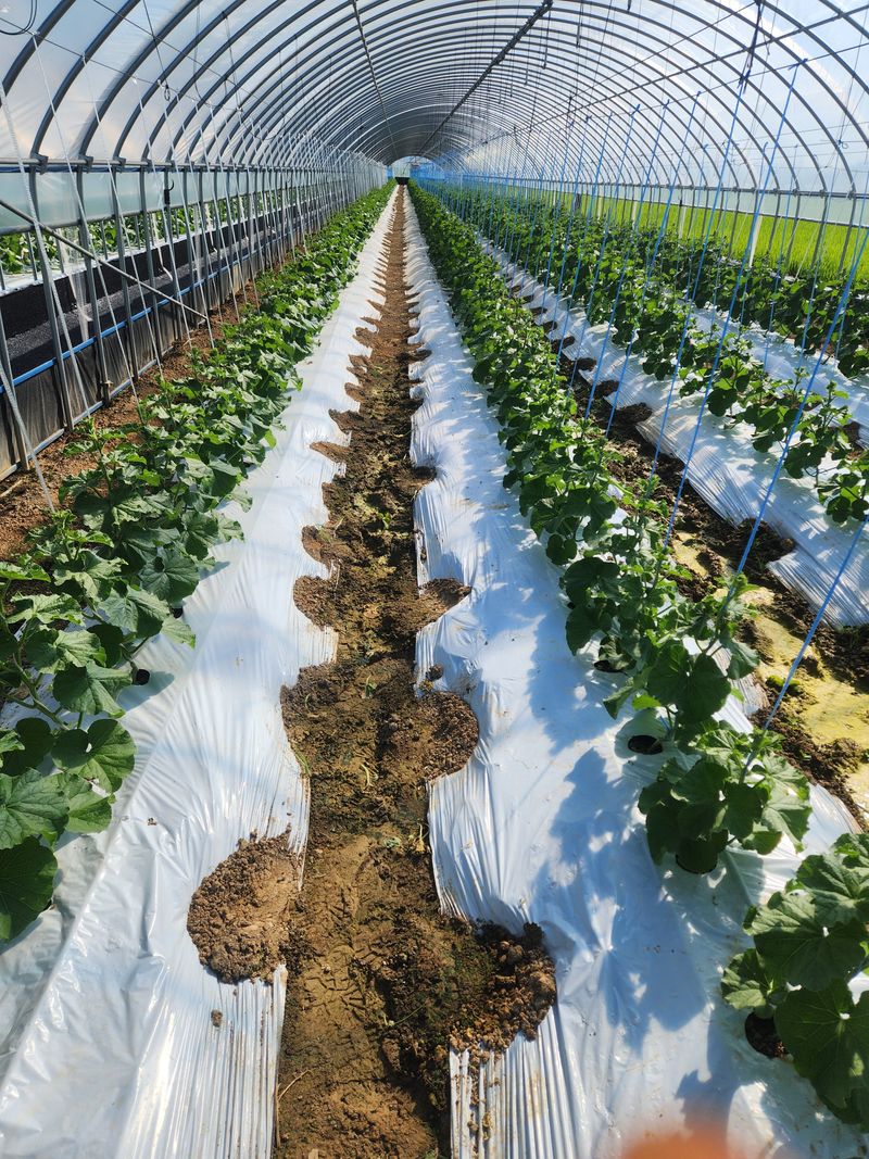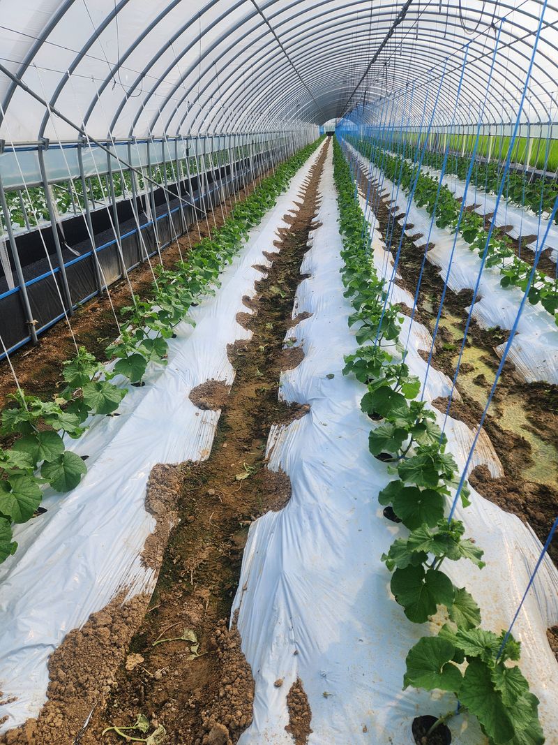 1차 정식메롱 두번째 순감아돌리기 여자두명투입 하우스 두동반 작업