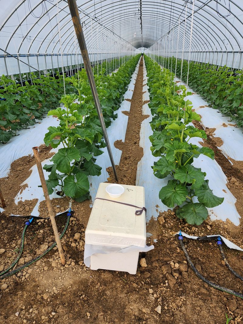1차 메롱 수정벌 투입하고 측지2개씩 빼놓기 완료 작업 여자3명투입 6동 작업