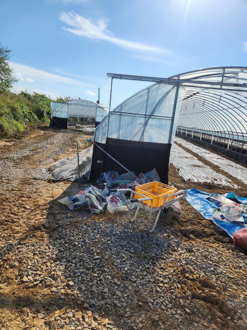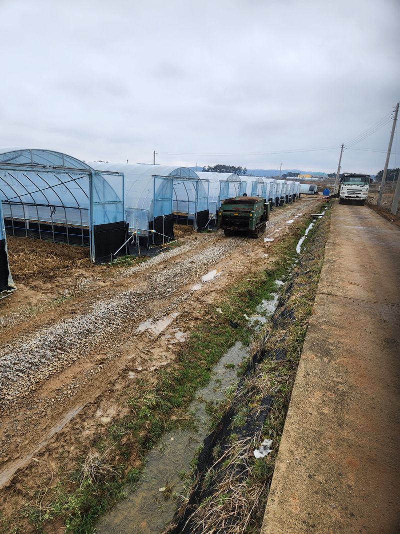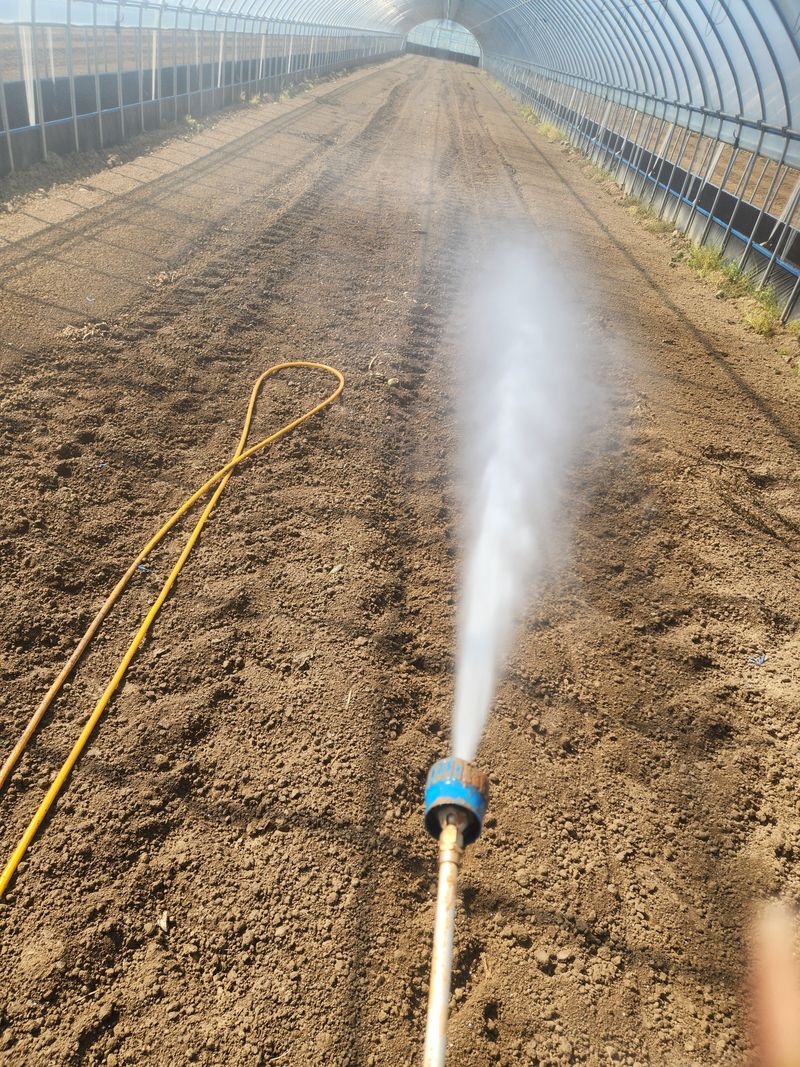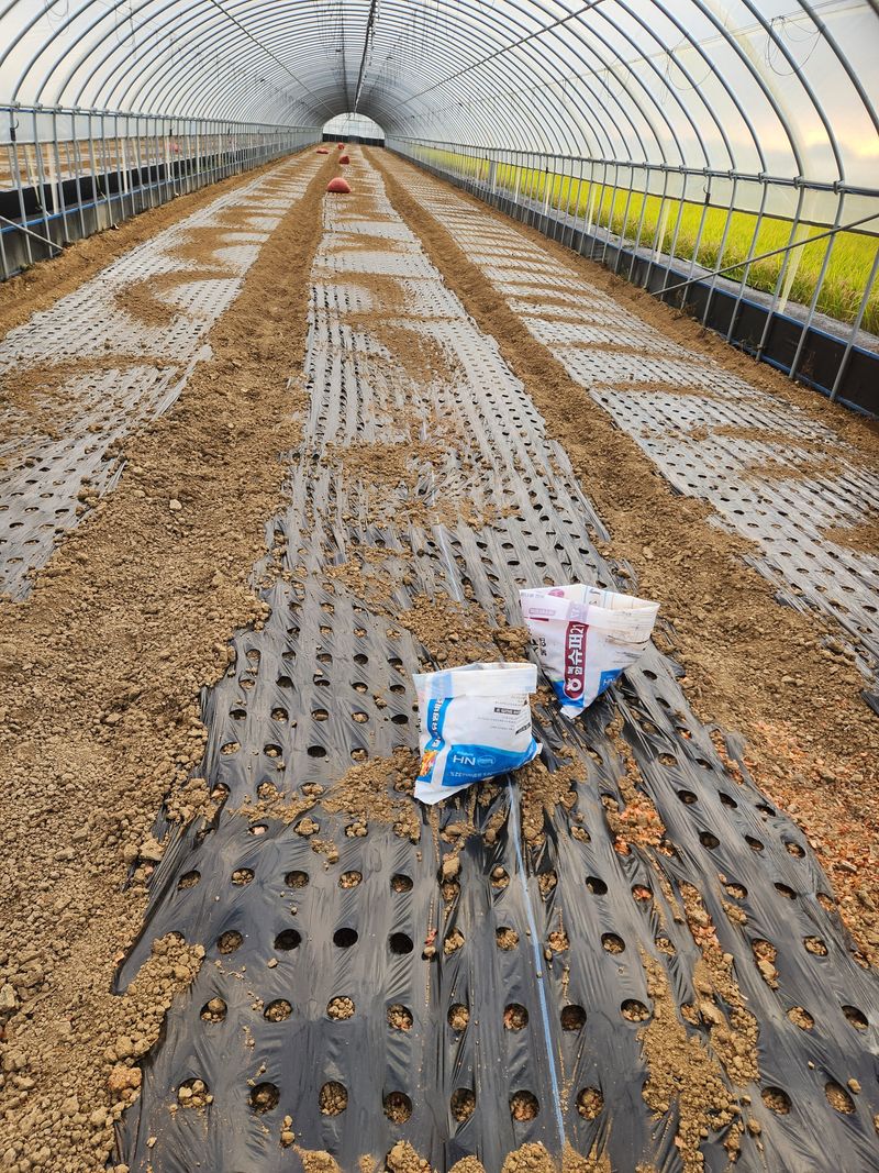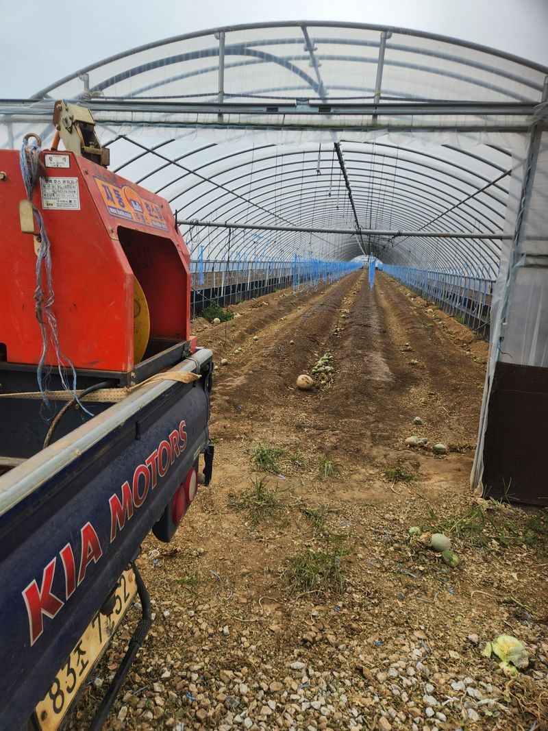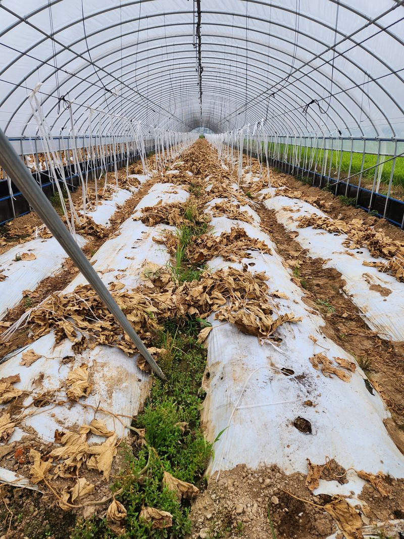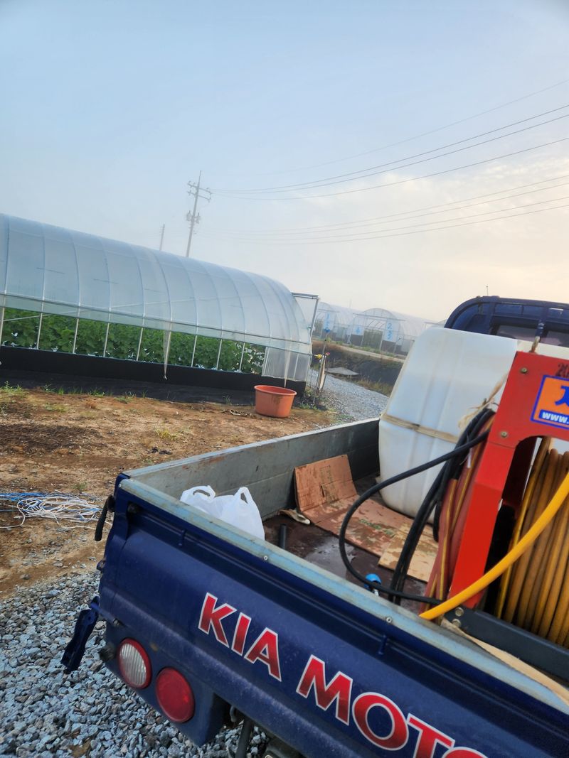 하우스 7동 순걷어내고 비닐걷고 점적호수 철거작업 설거지작업 . 고온성 미생물1톤 살포 남3명투입. 나머지 7동 작업팀이 출하작업.
