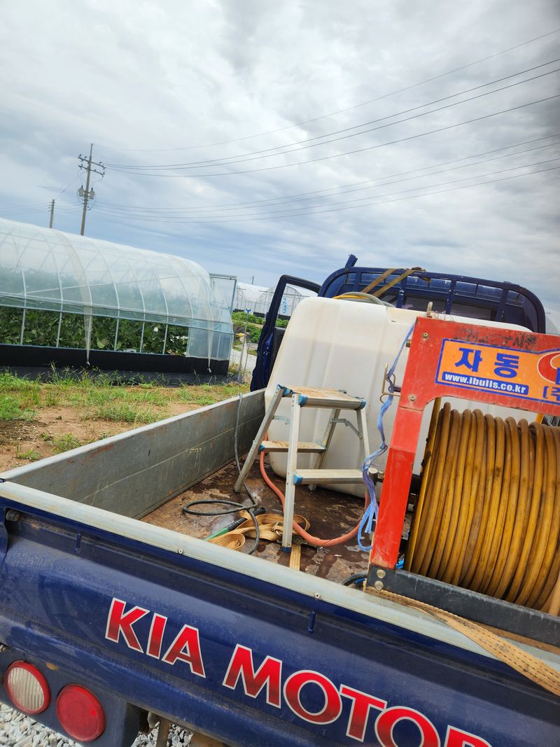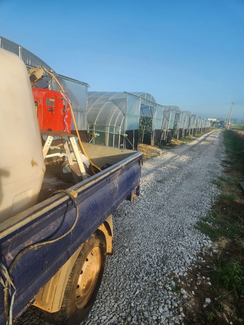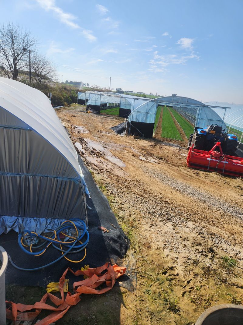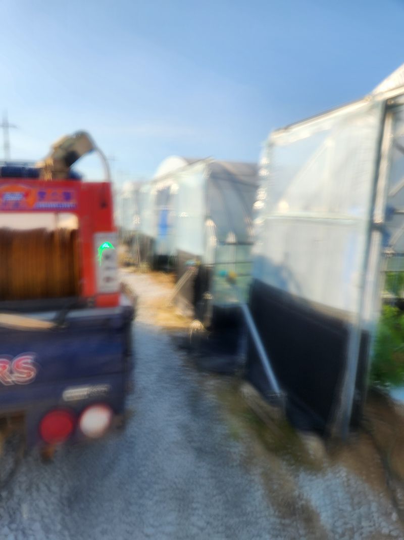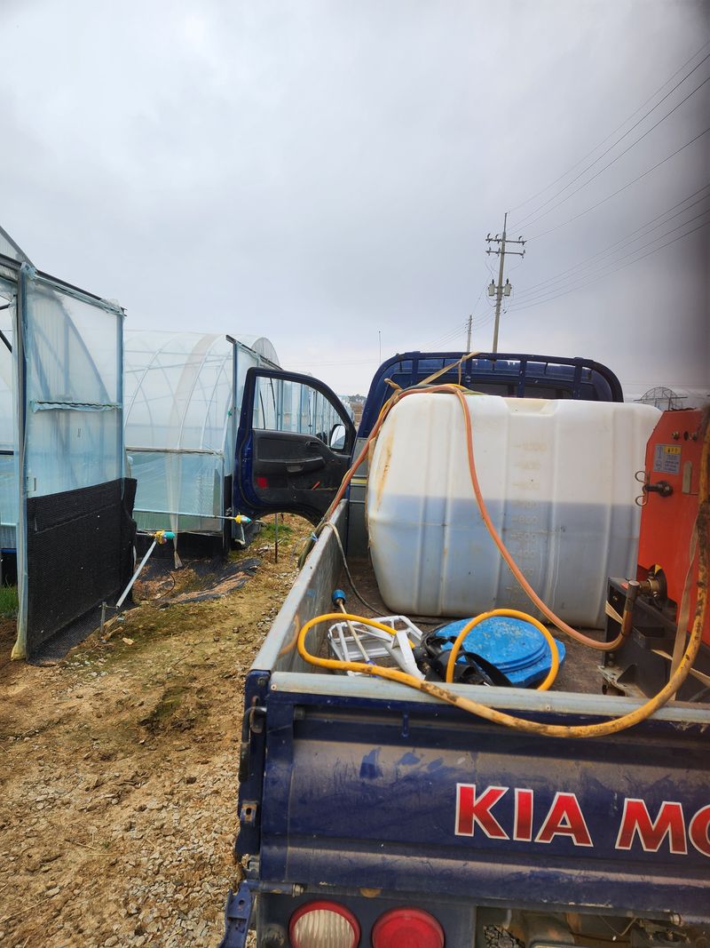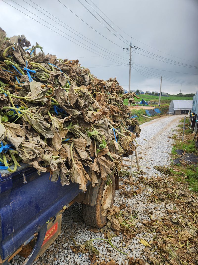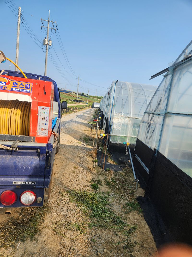 하우스 7동 순걷어내고 비닐걷고 점적호수 철거작업 설거지작업 . 고온성 미생물1톤 살포 남3명투입. 나머지 7동 작업팀이 출하작업.