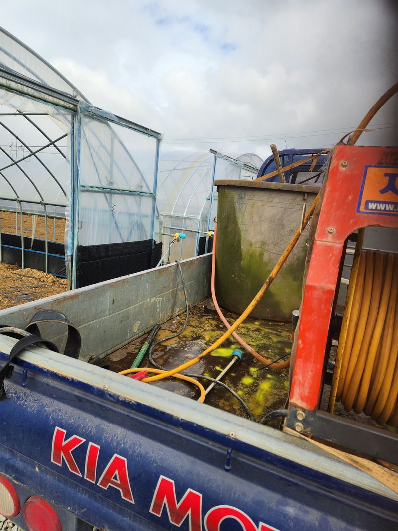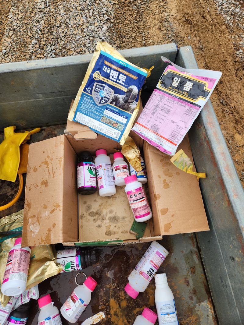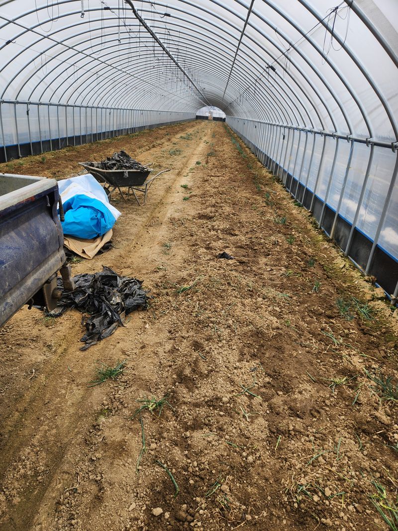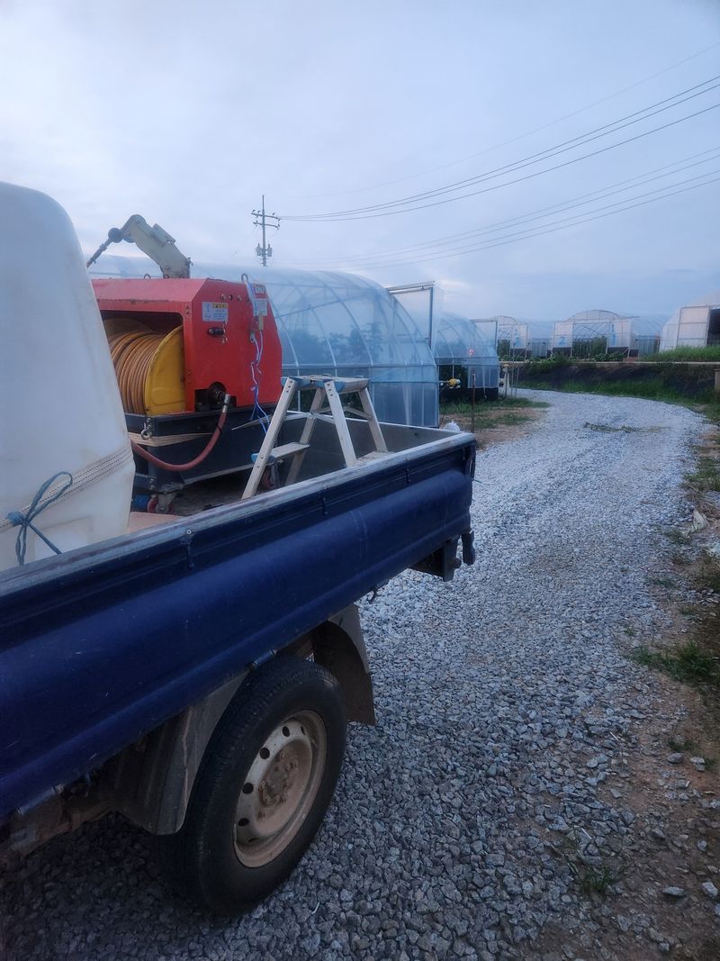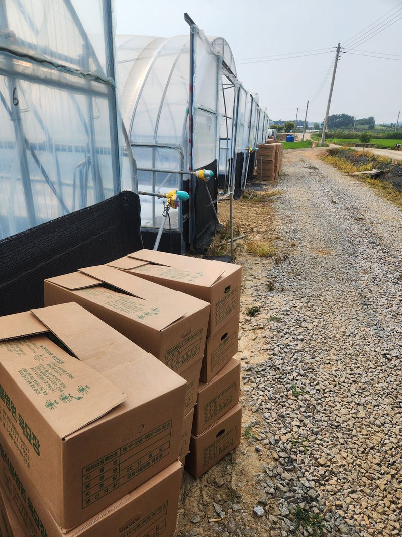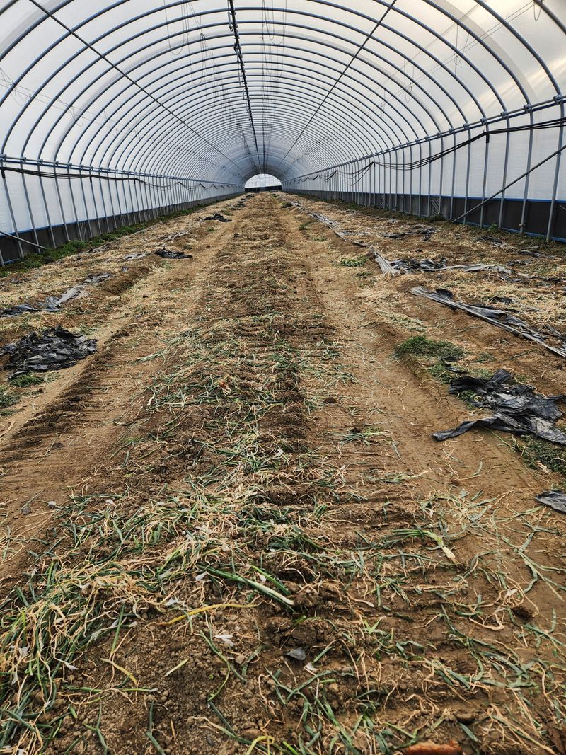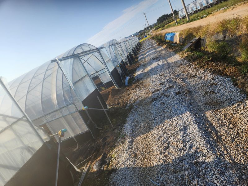 하우스 7동 순걷어내고 비닐걷고 점적호수 철거작업 설거지작업 . 고온성 미생물1톤 살포 남3명투입. 나머지 7동 작업팀이 출하작업.