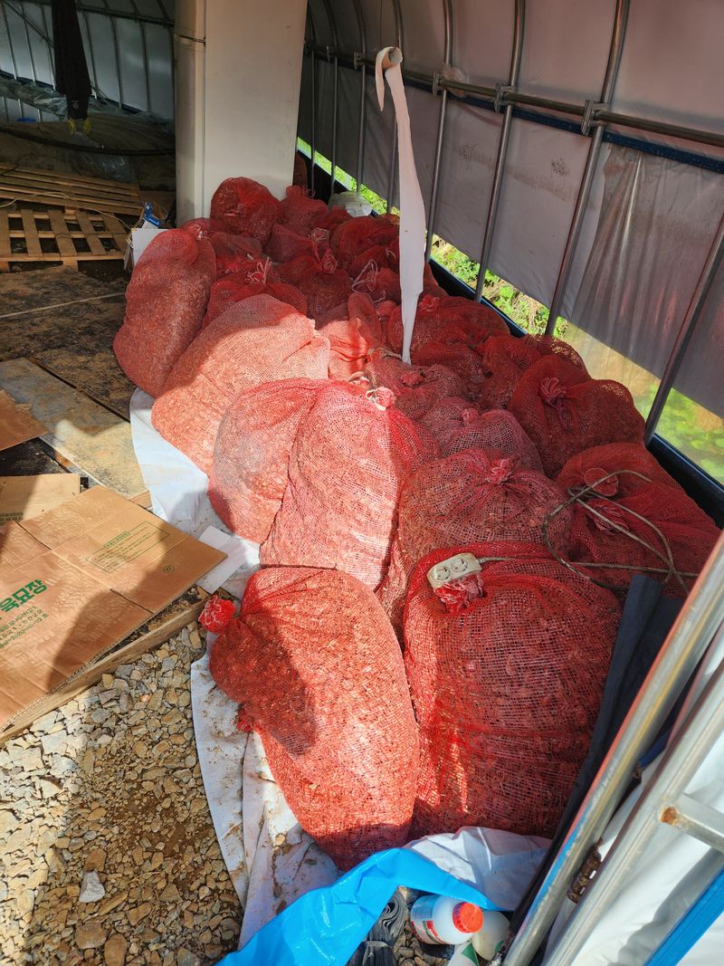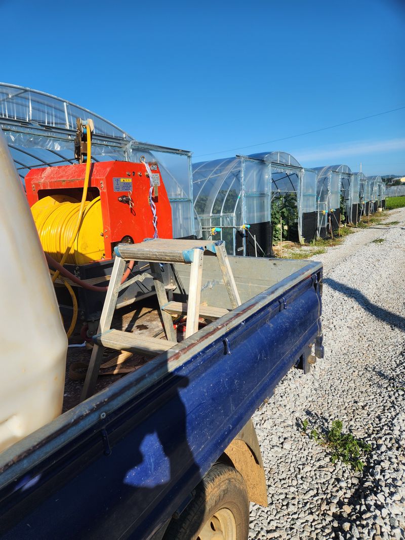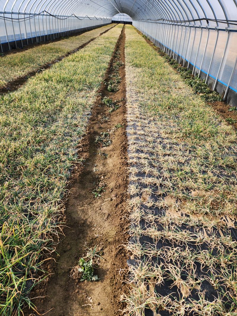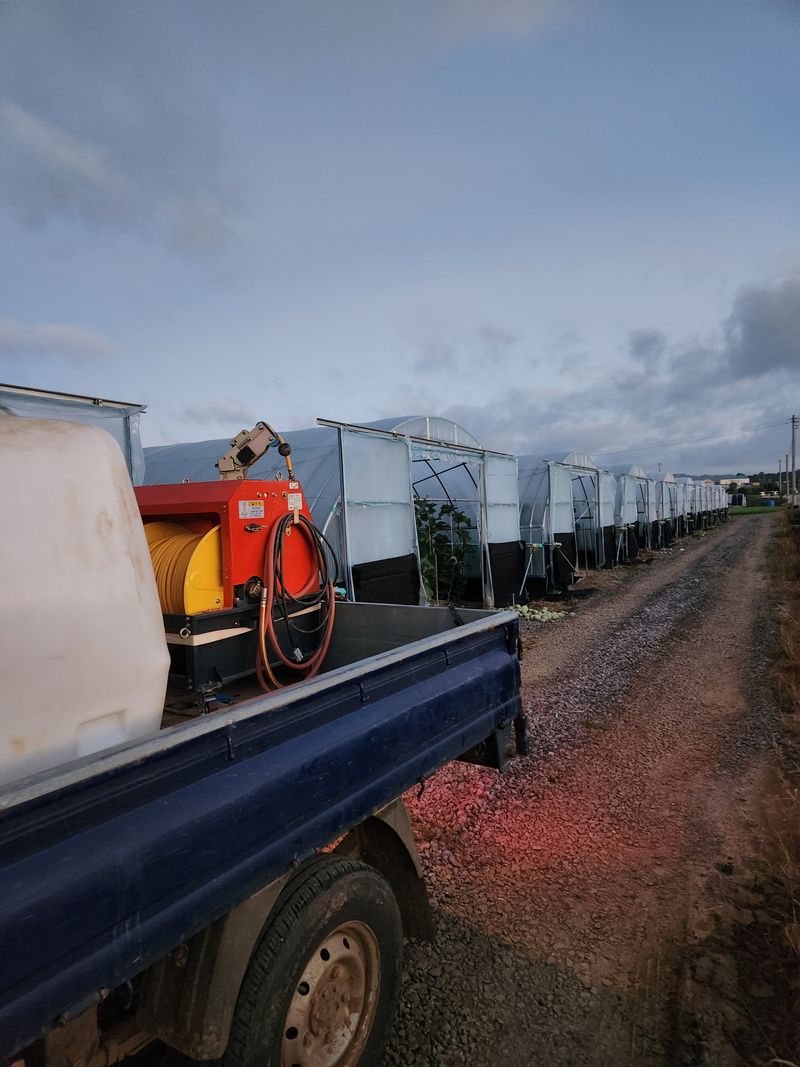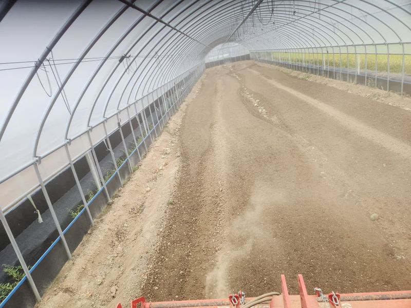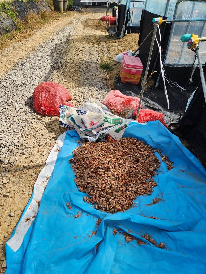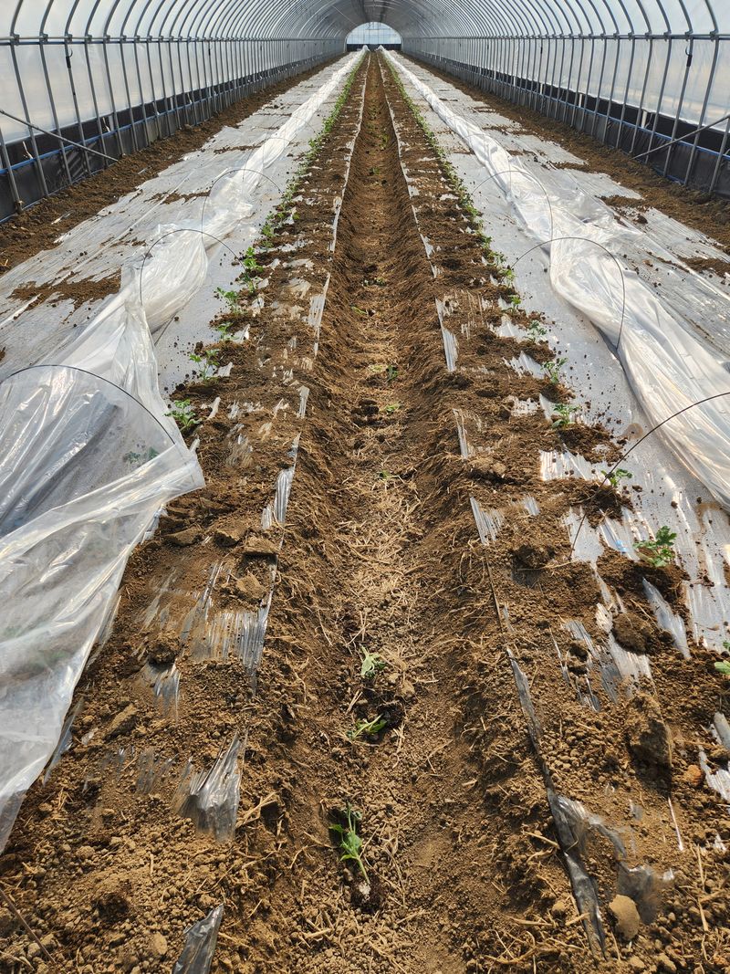 하우스 7동 순걷어내고 비닐걷고 점적호수 철거작업 설거지작업 . 고온성 미생물1톤 살포 남3명투입. 나머지 7동 작업팀이 출하작업.
