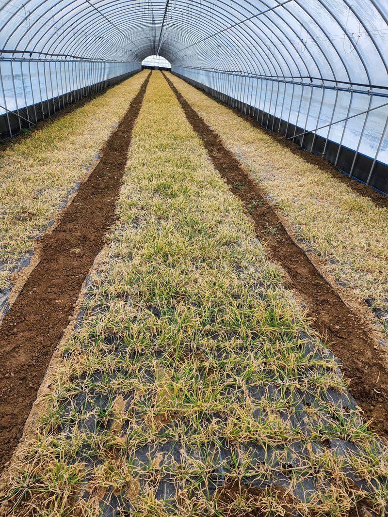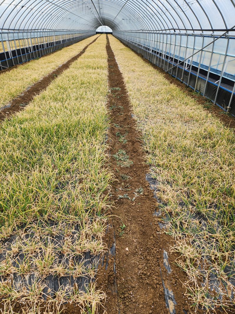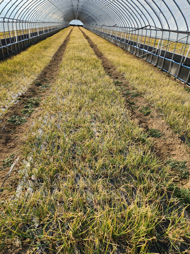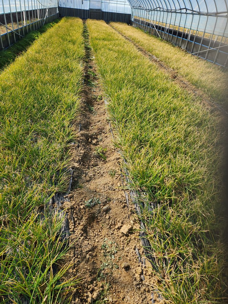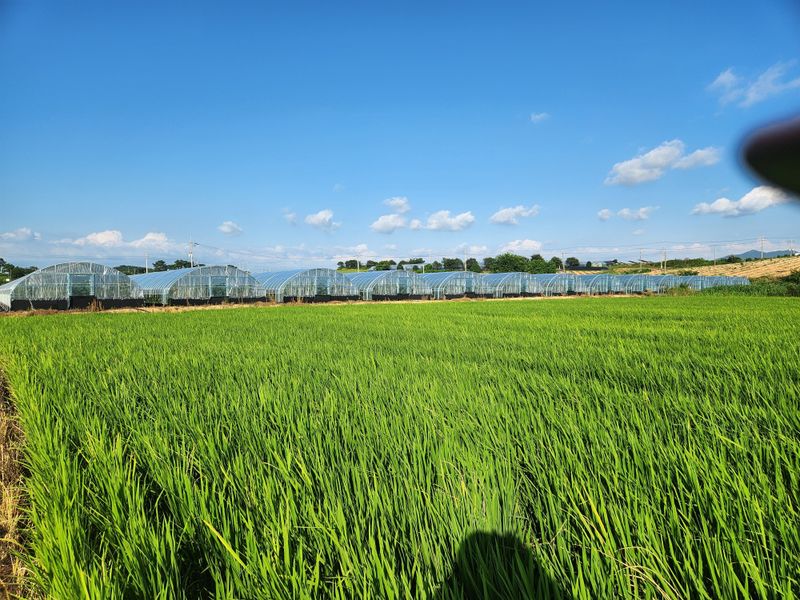 생육상태 점검 전체적으로 수분도 충분하고 전체적으로 상태좋음.논에 시설하우스 파이프 들어옴