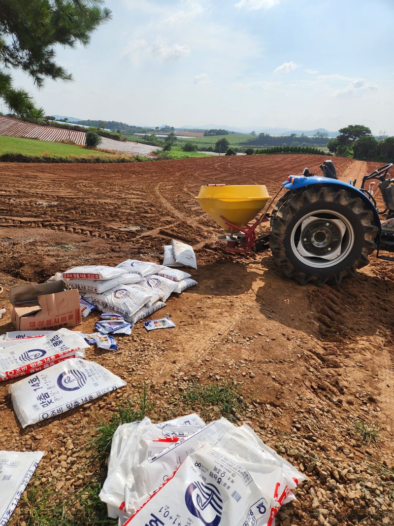 노지 가을배추 준비작업 비료밭에 놓기작업