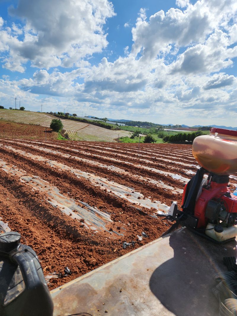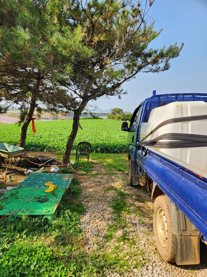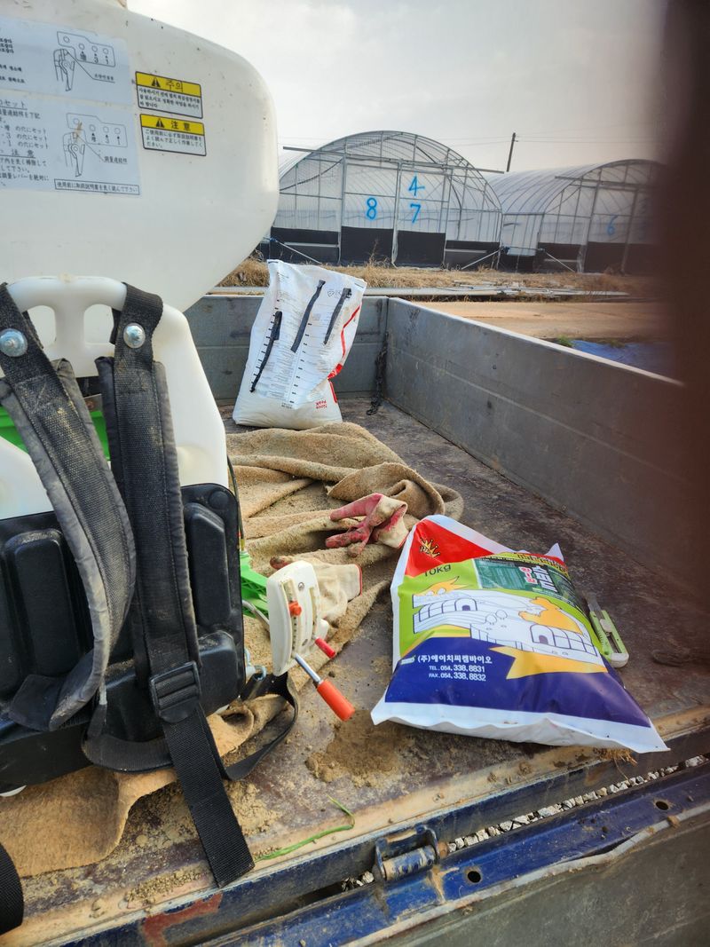 노지배추 농약살포작업. 하우스 메롱 농약살포작업. 가을 쪽파 종자 제주에서 새벽에 와서 가져옴