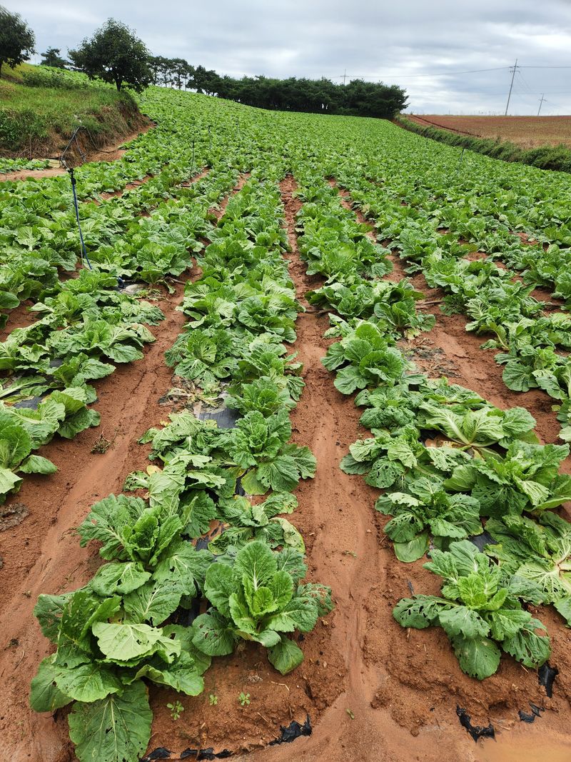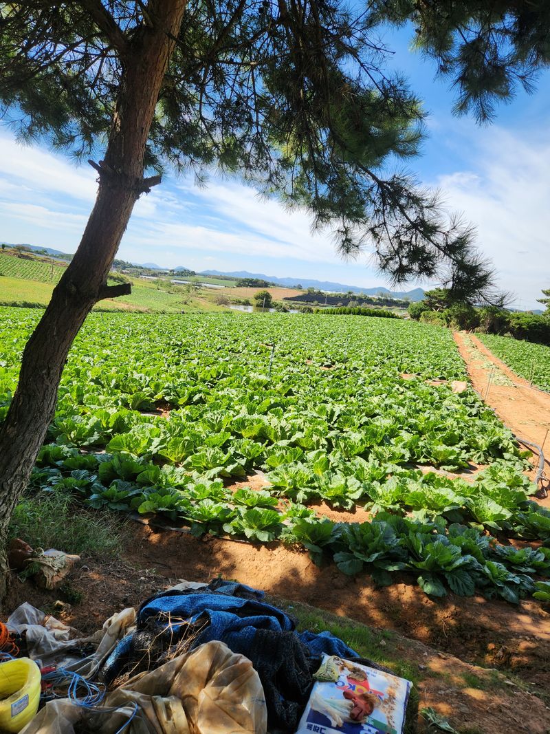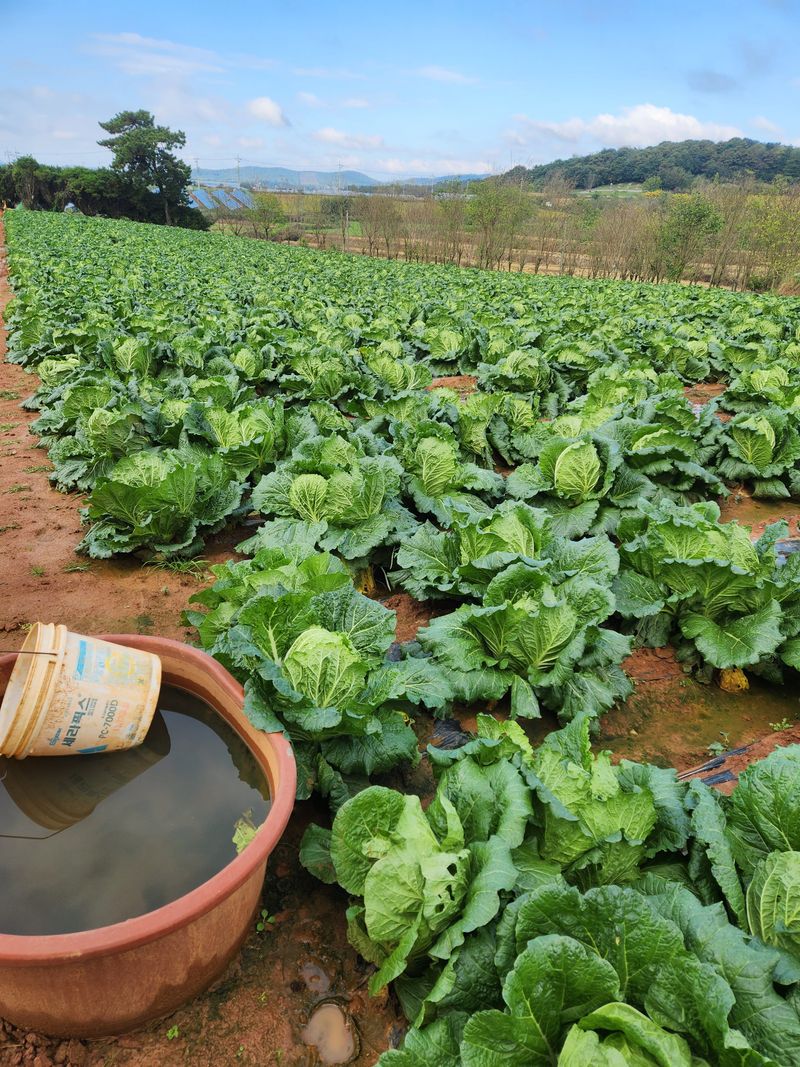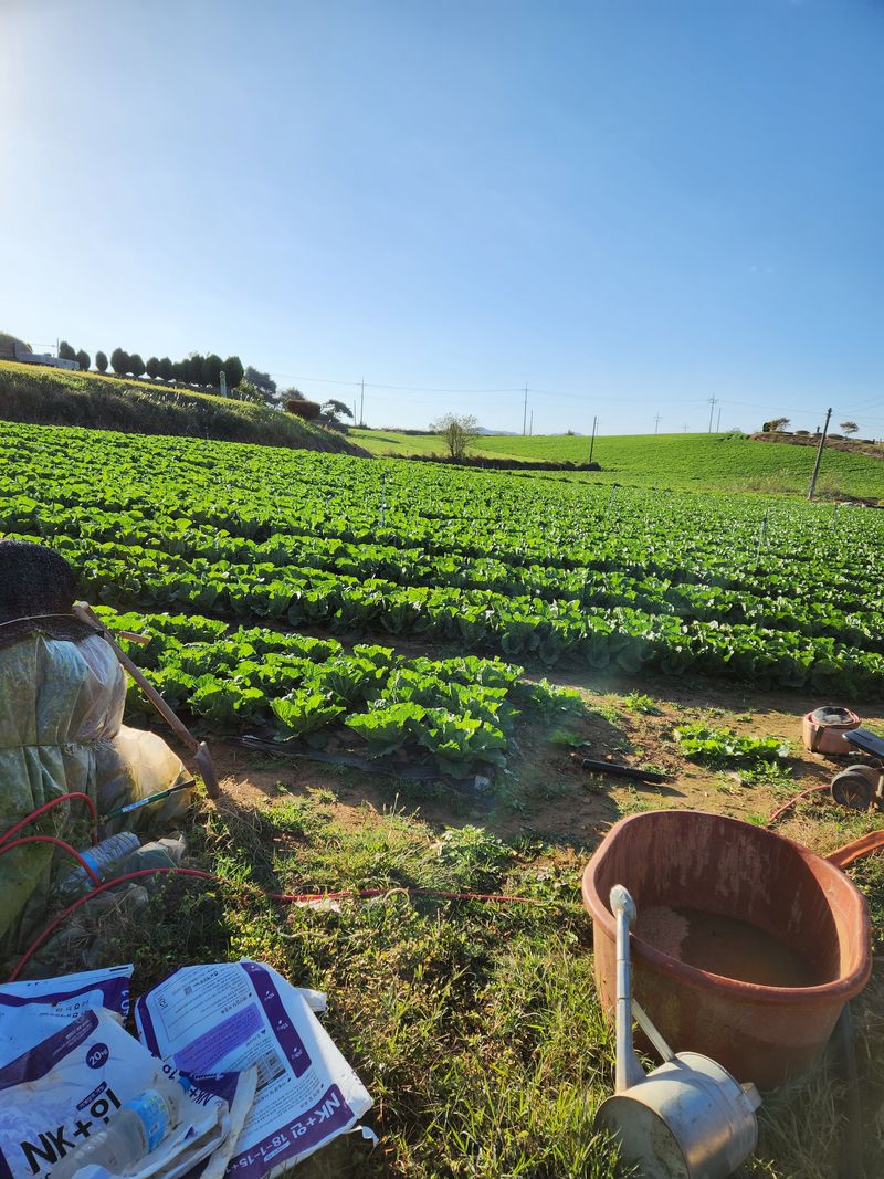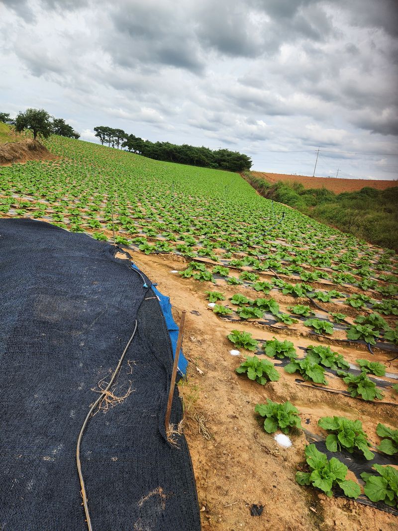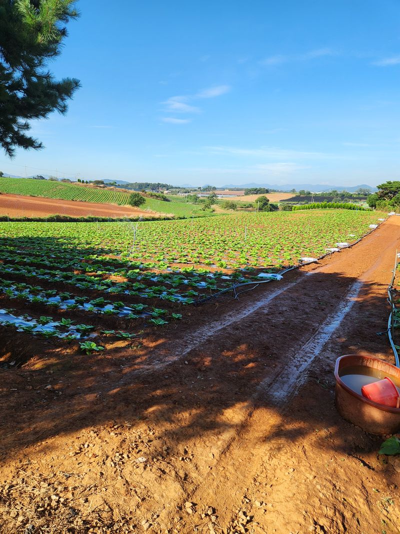 전날 비가 많이 내려서 배추밭 에 가서 생존 확인하고 옴