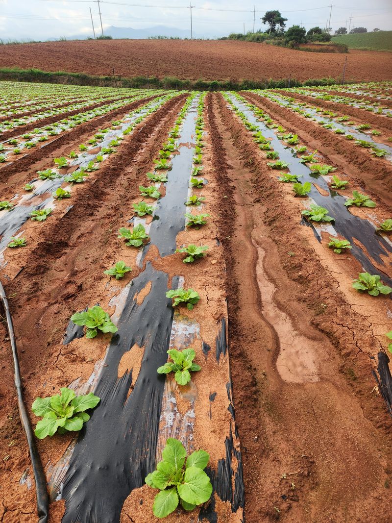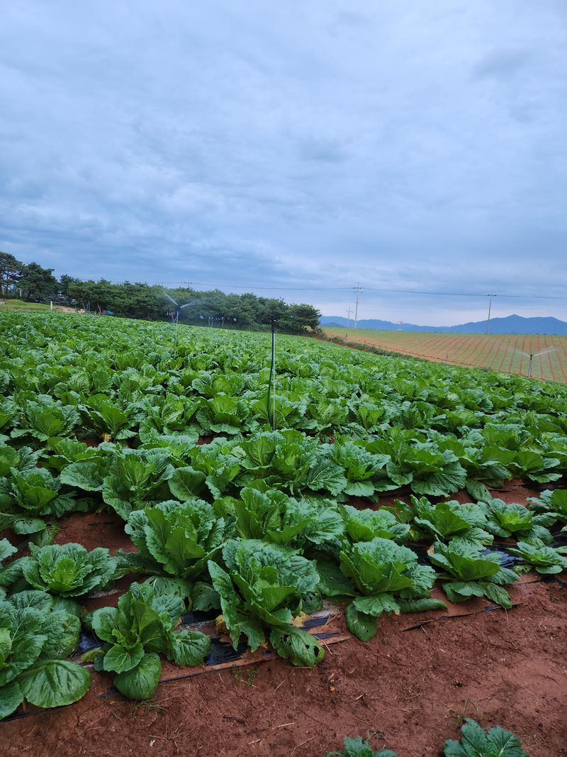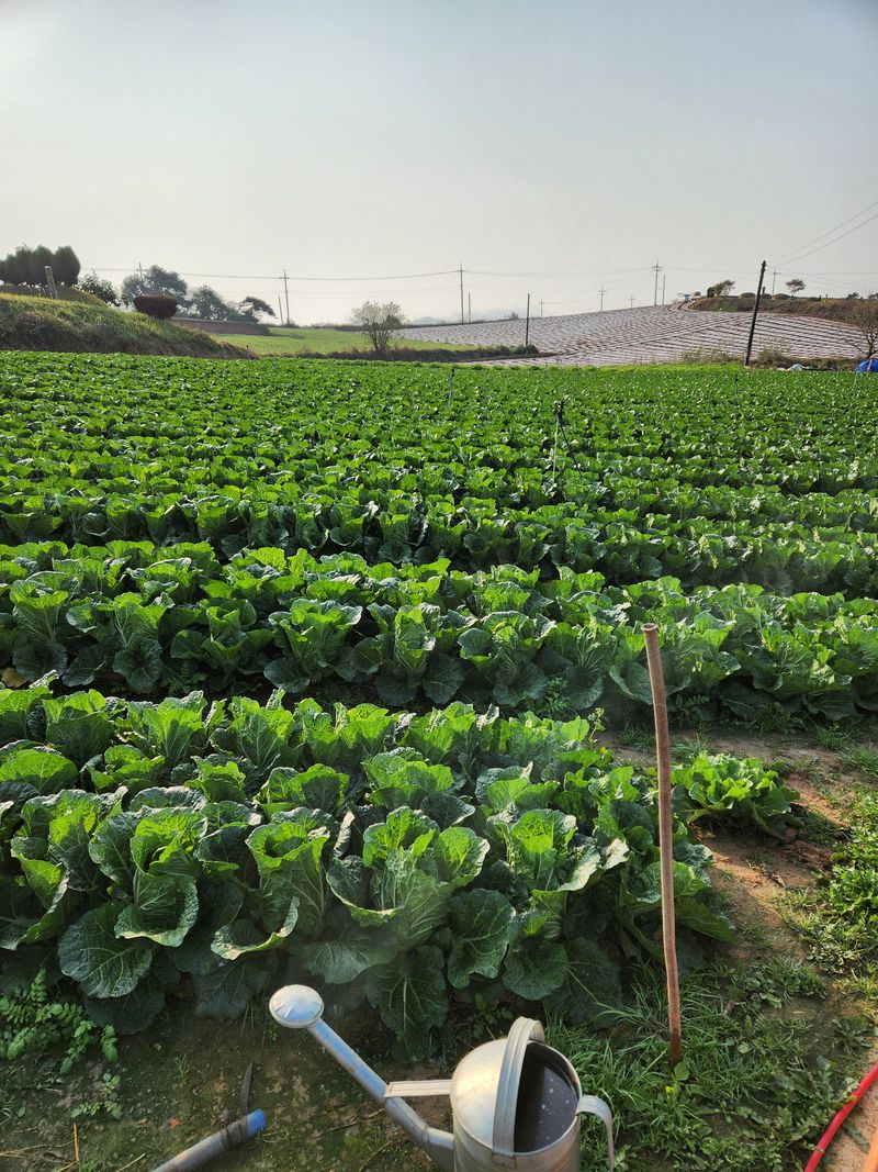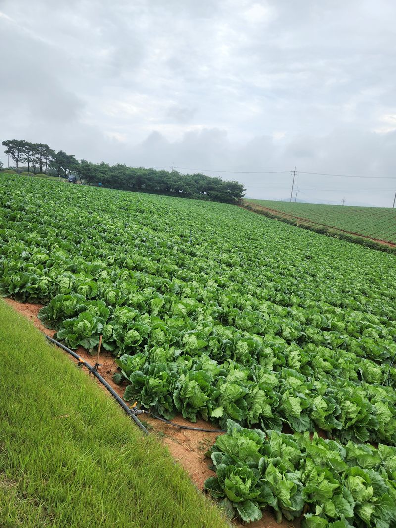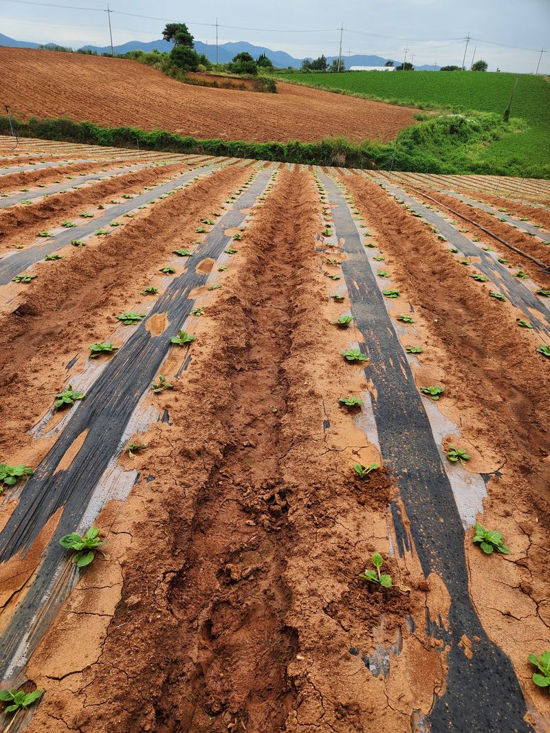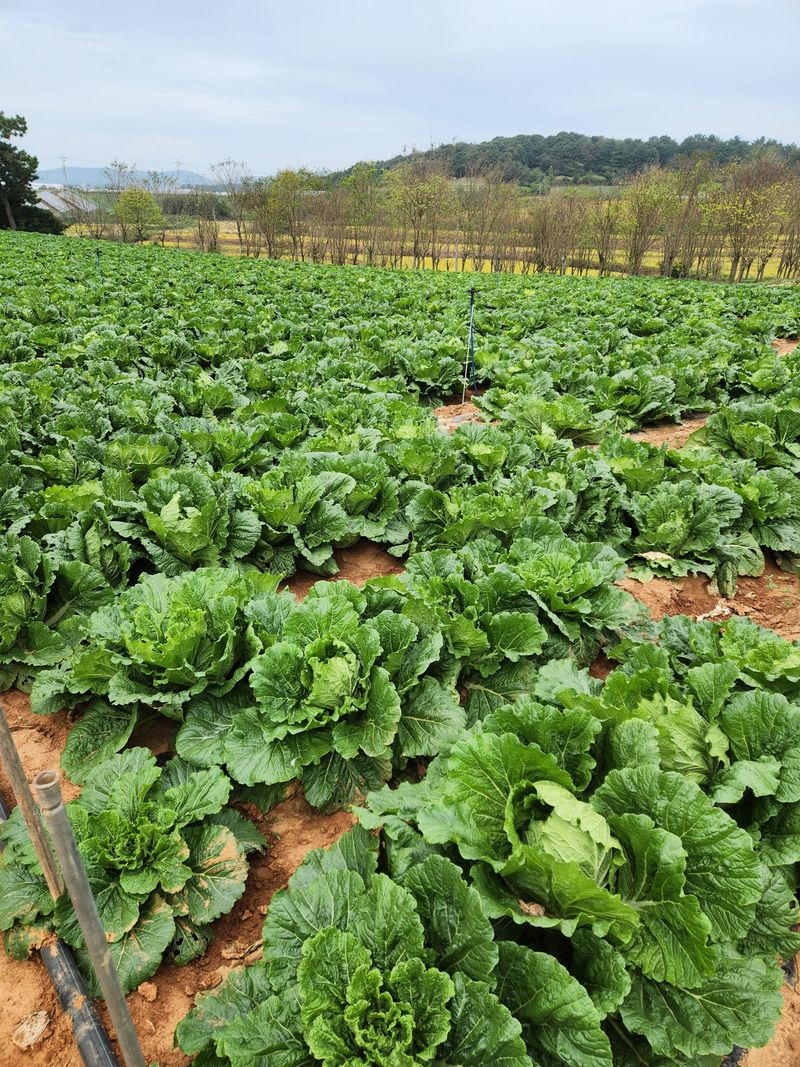 전날 비가 많이 내려서 배추밭 에 가서 생존 확인하고 옴