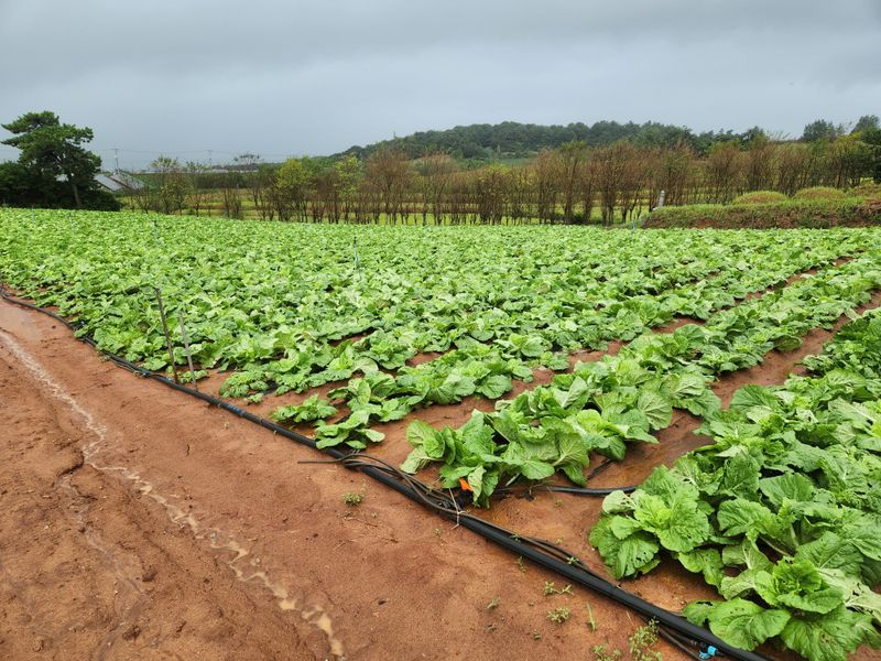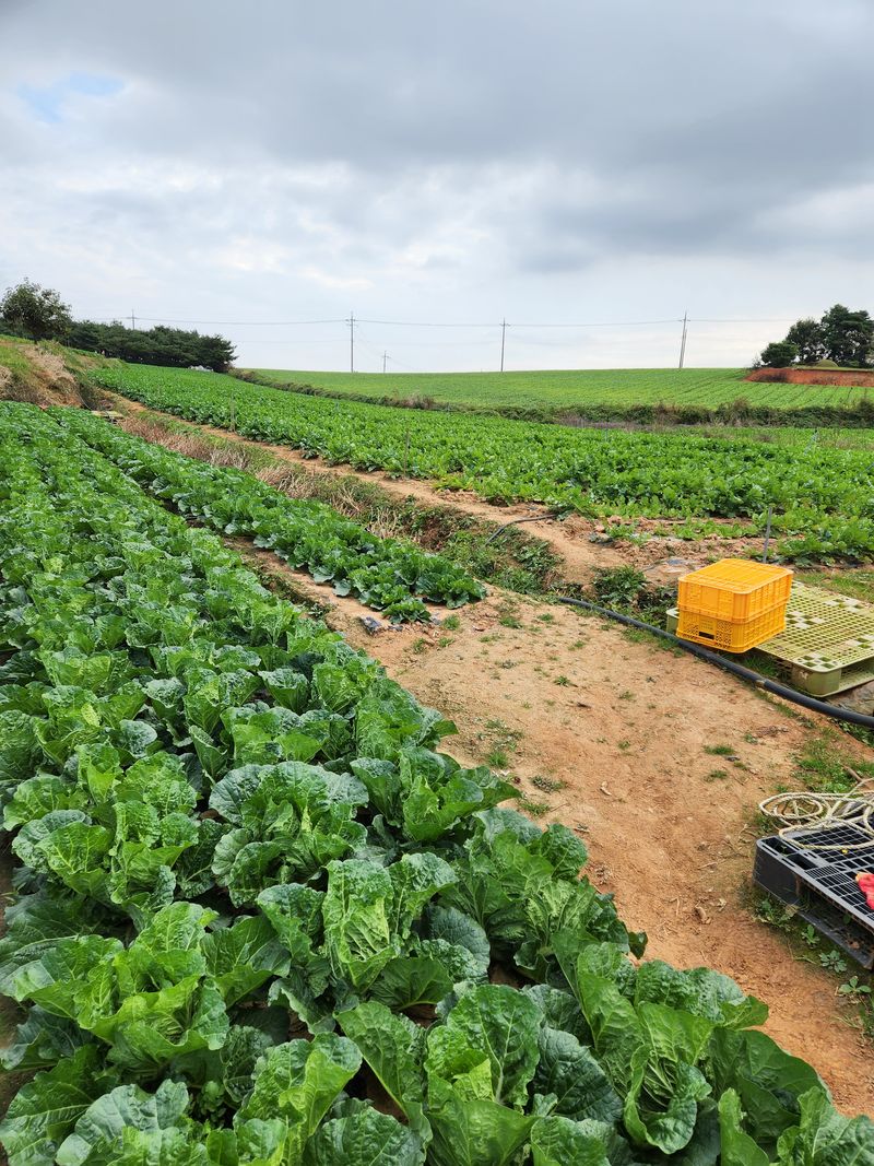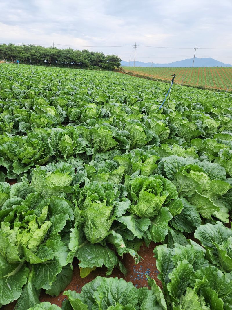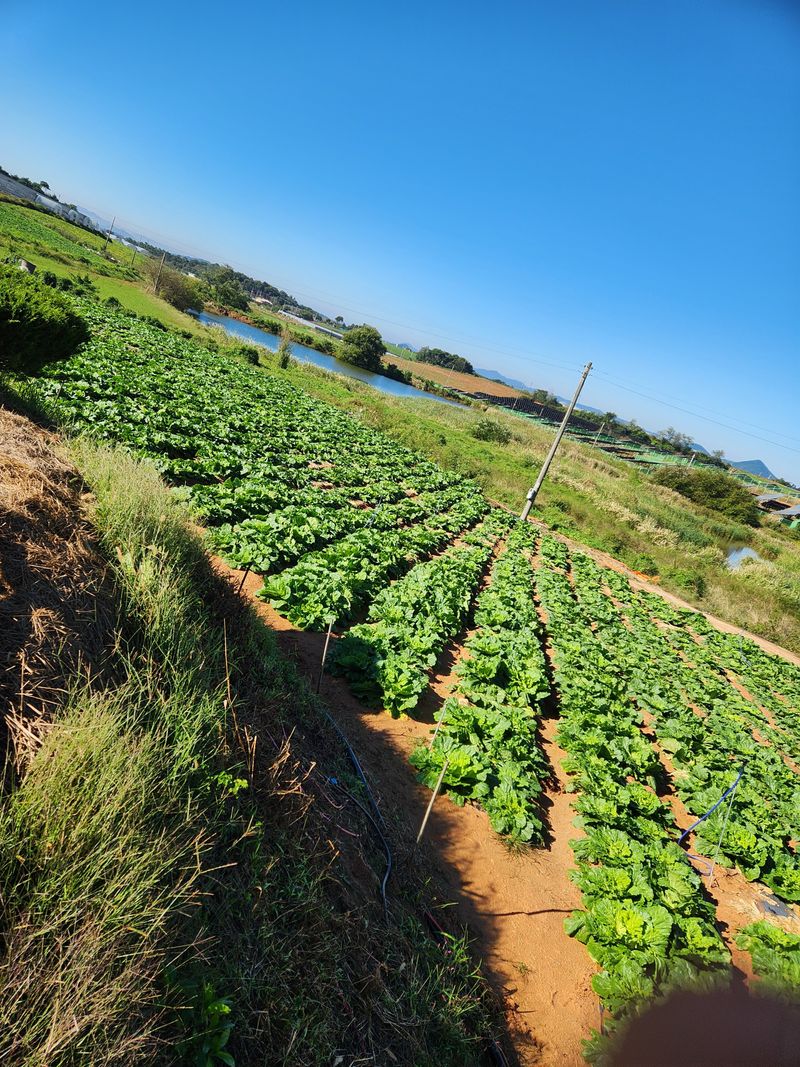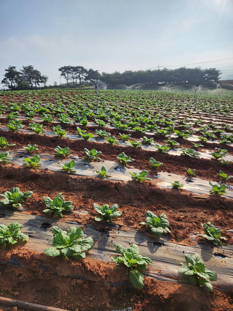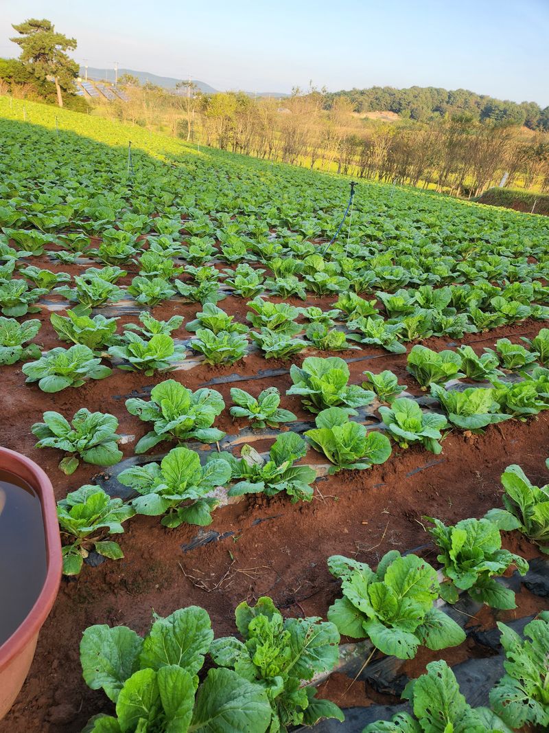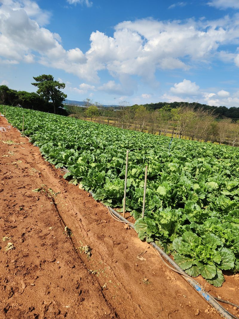 전날 비가 많이 내려서 배추밭 에 가서 생존 확인하고 옴