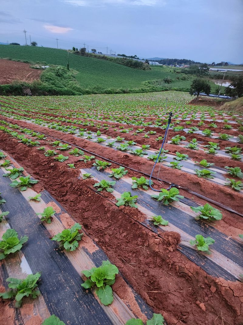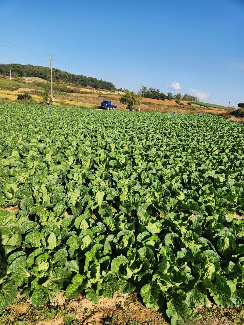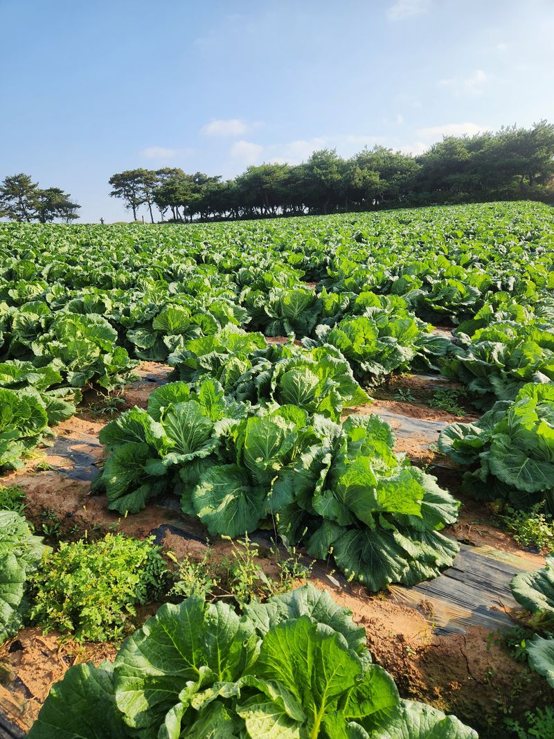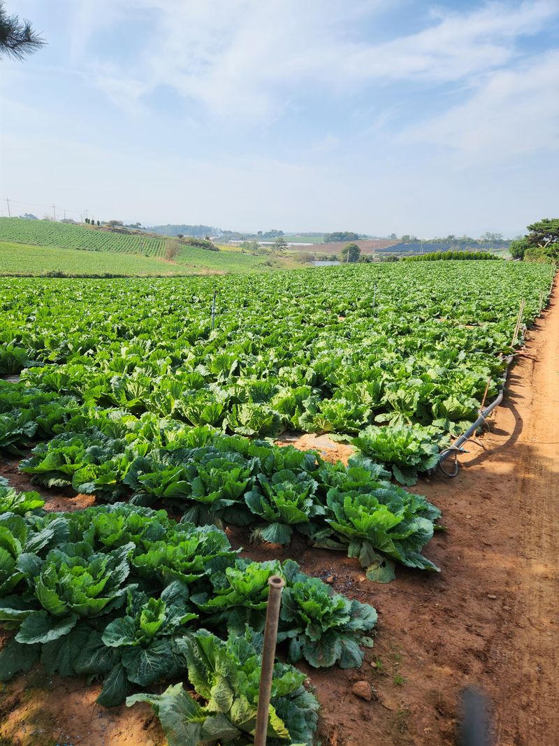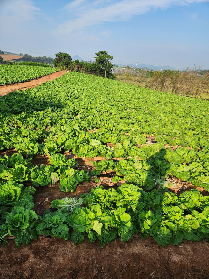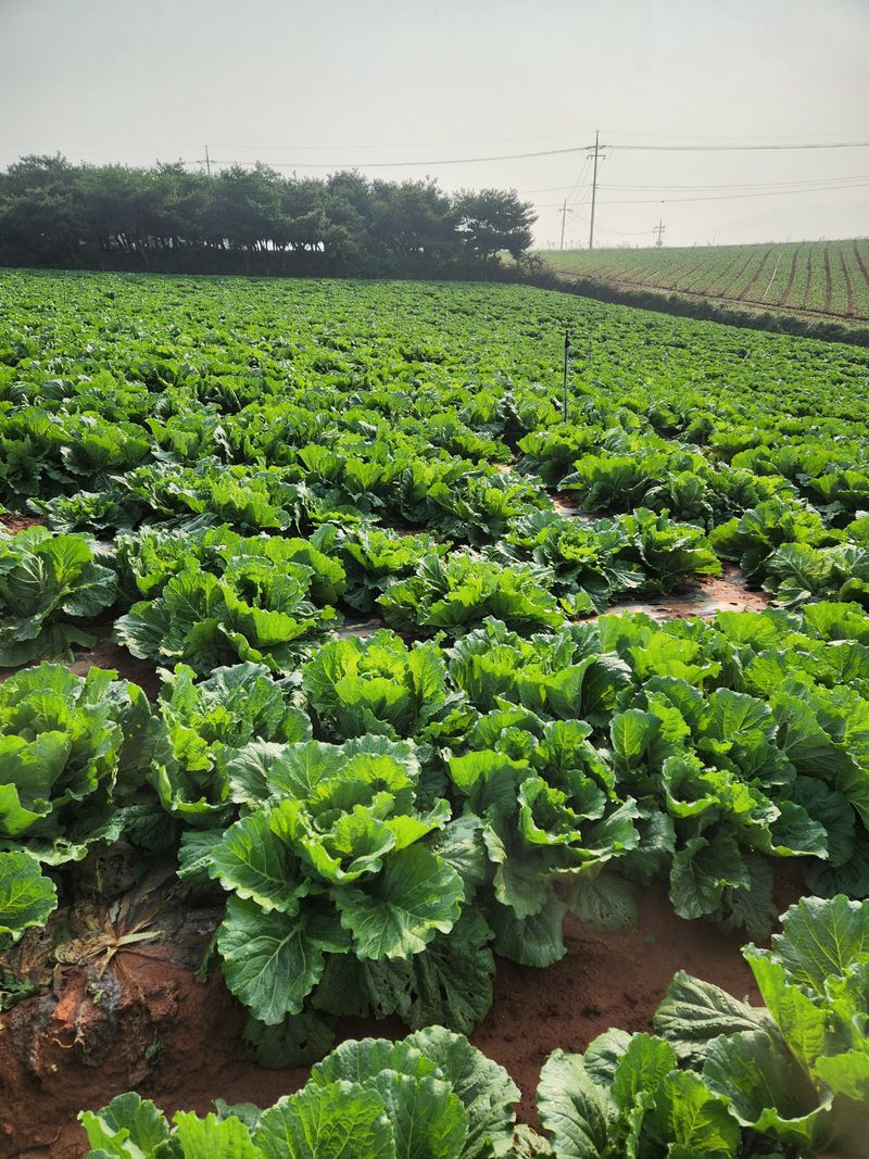 전날 비가 많이 내려서 배추밭 에 가서 생존 확인하고 옴