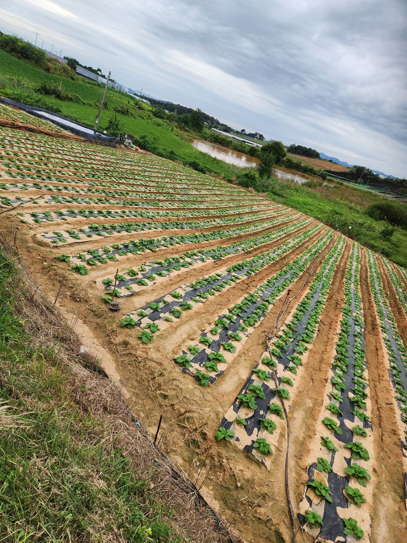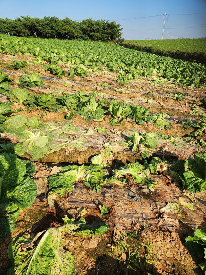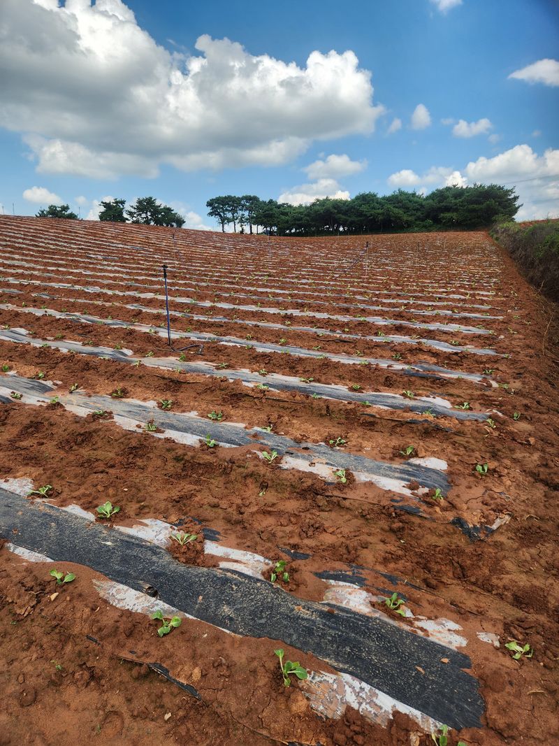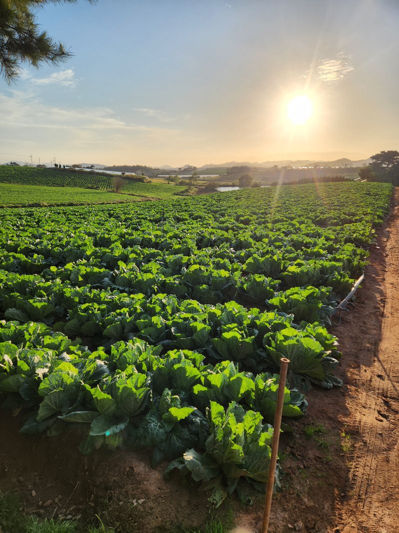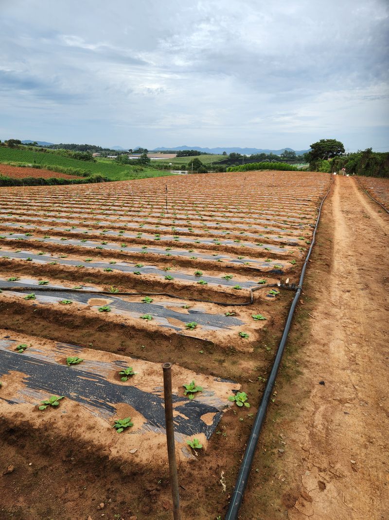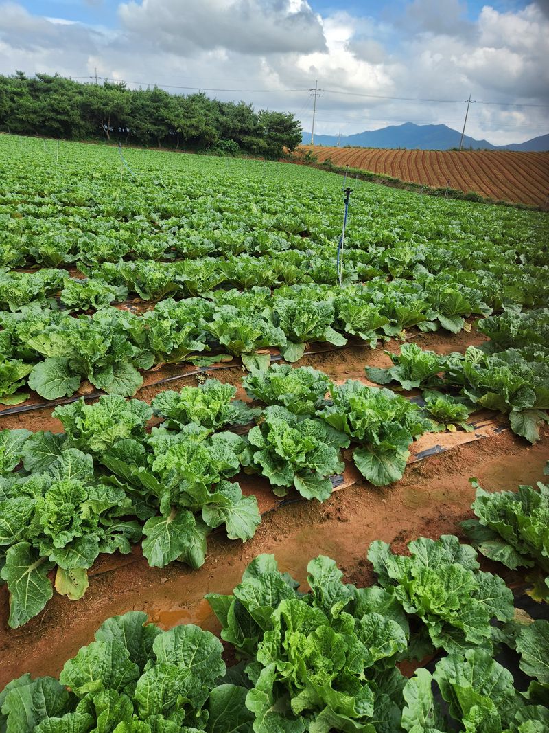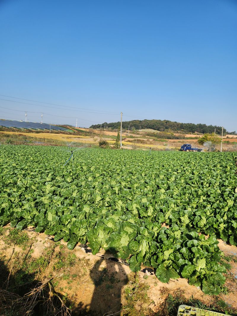 전날 비가 많이 내려서 배추밭 에 가서 생존 확인하고 옴