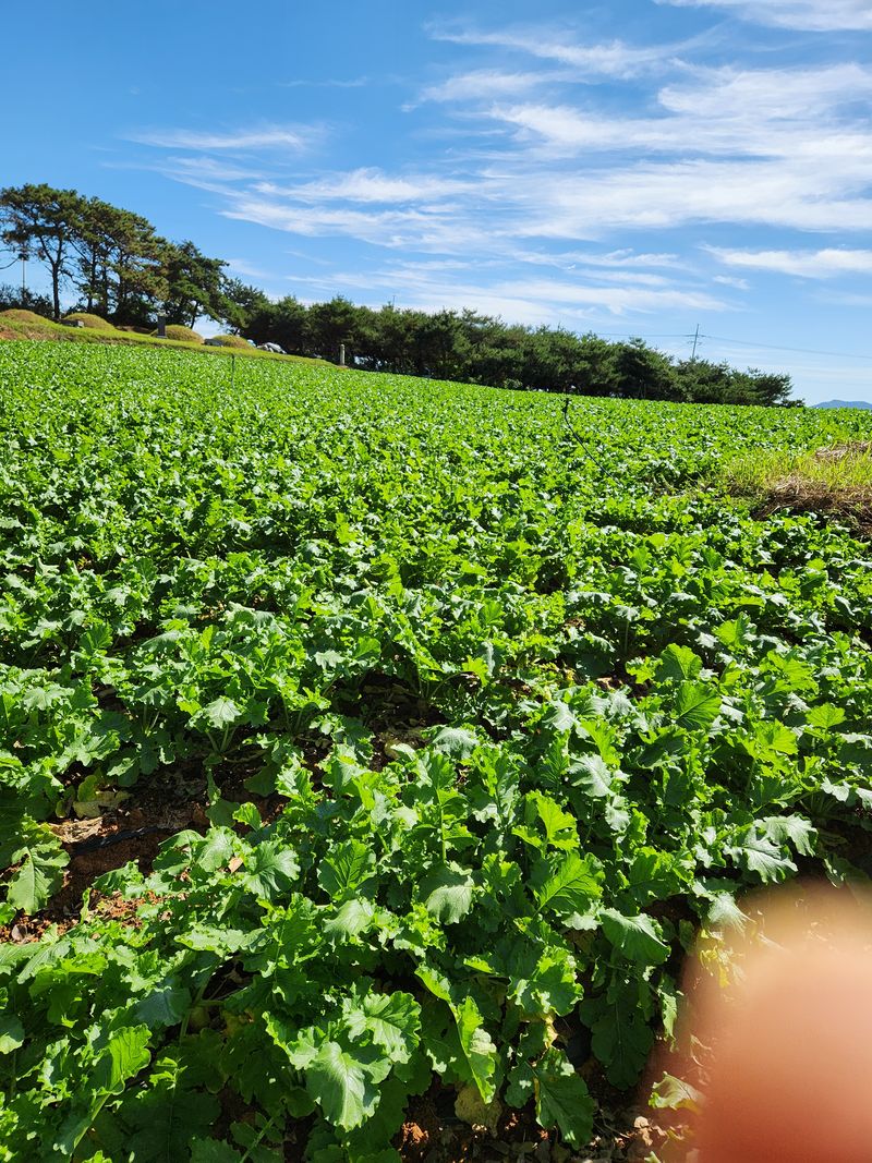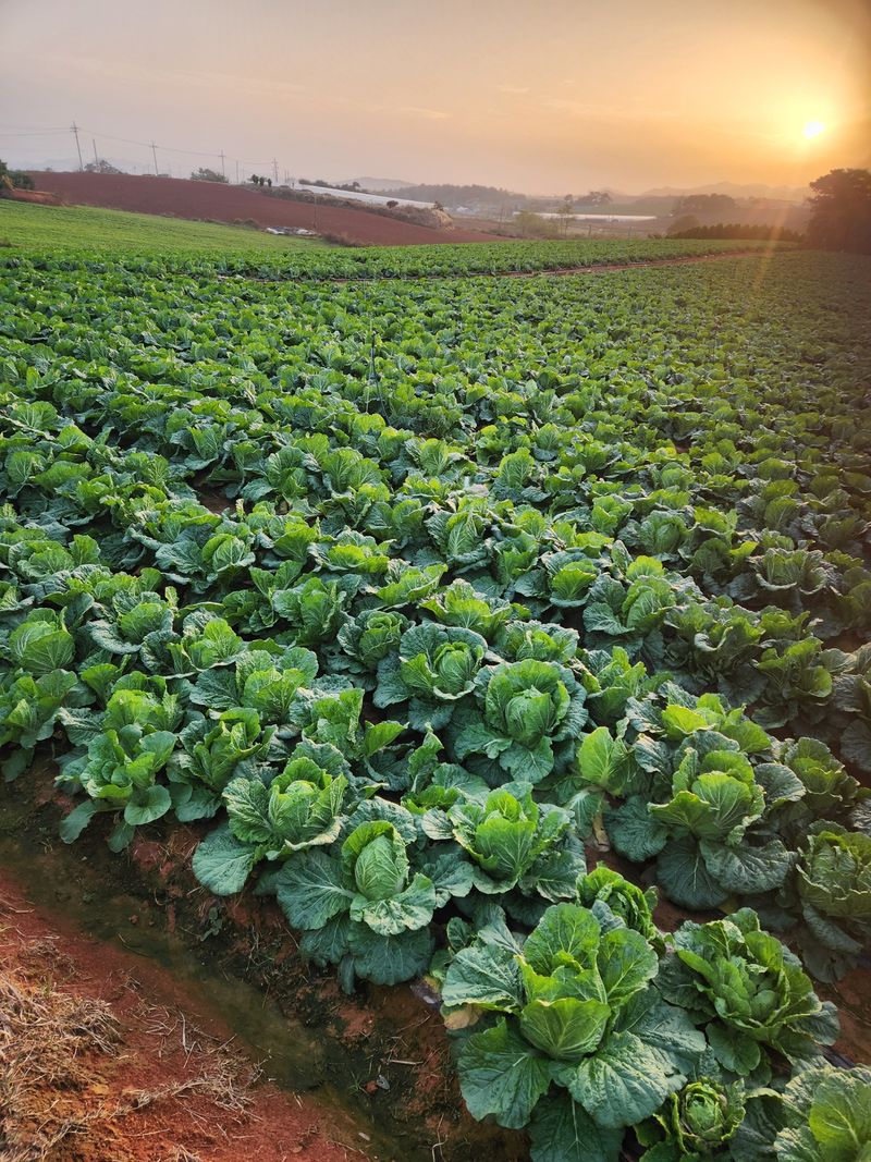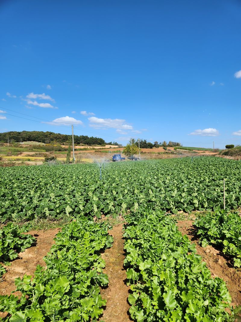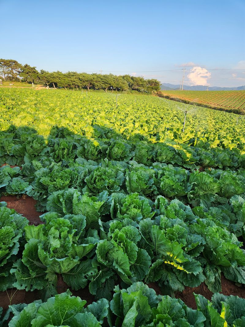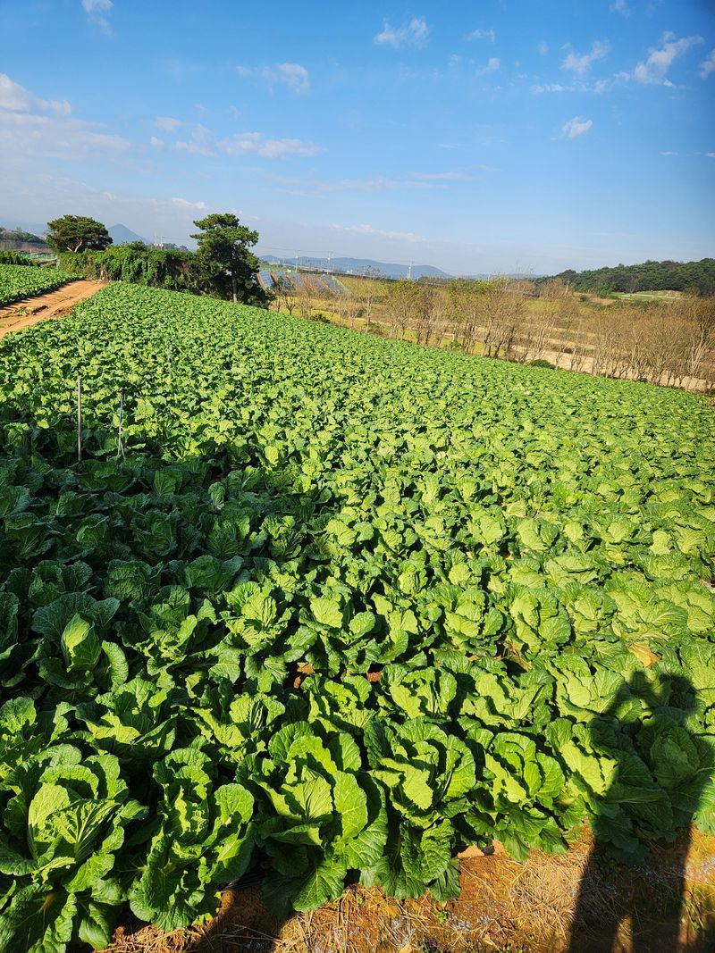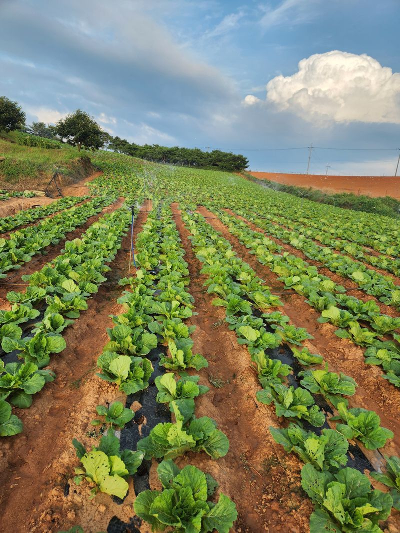 전날 비가 많이 내려서 배추밭 에 가서 생존 확인하고 옴
