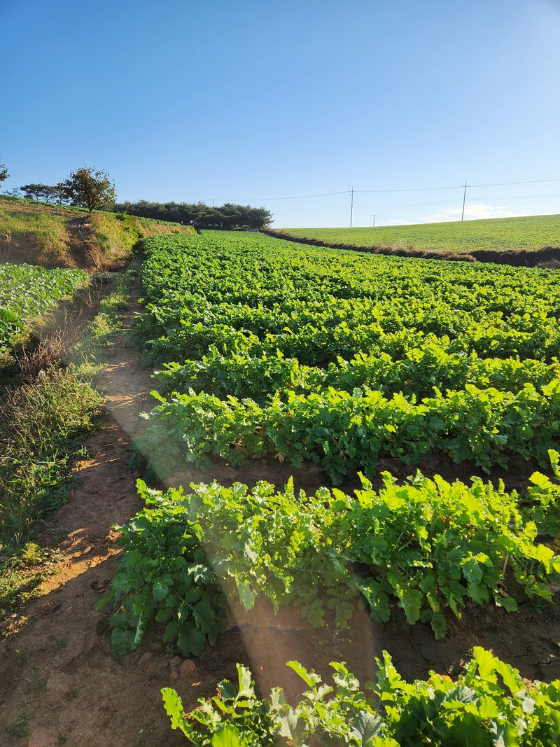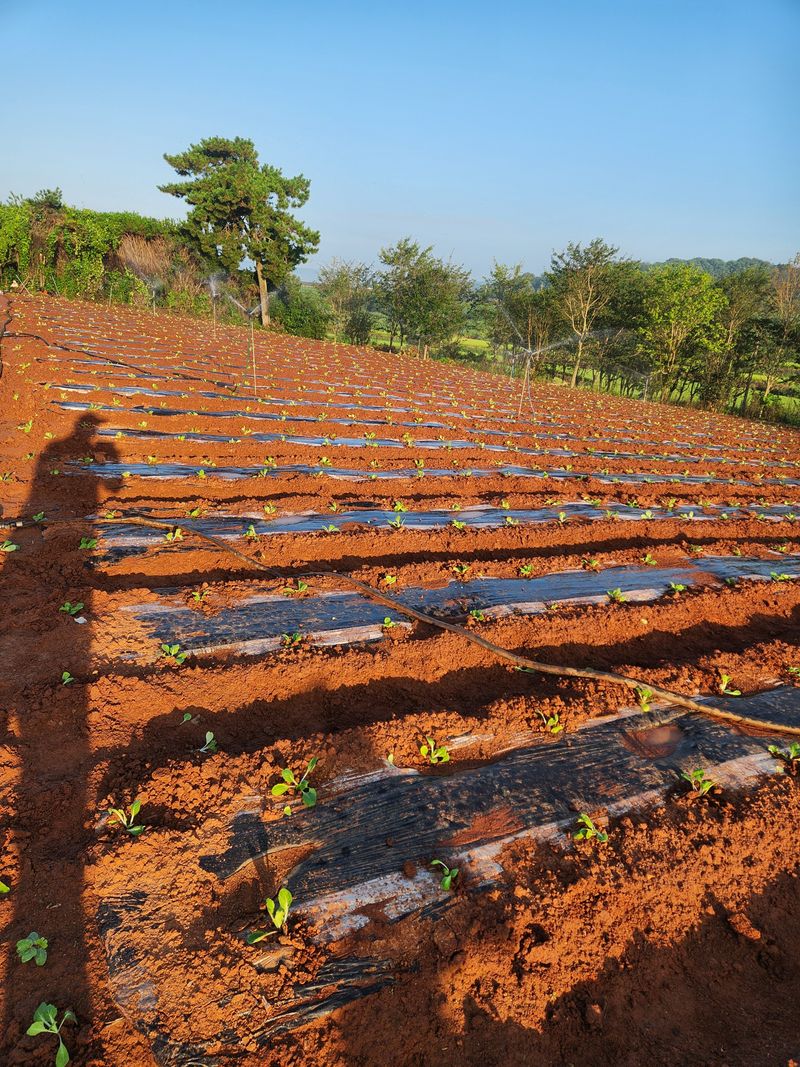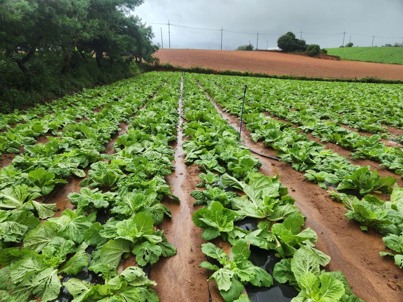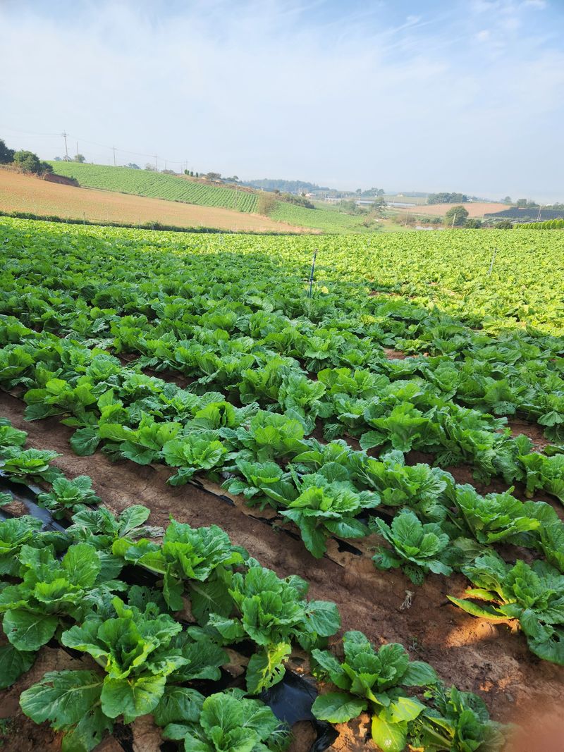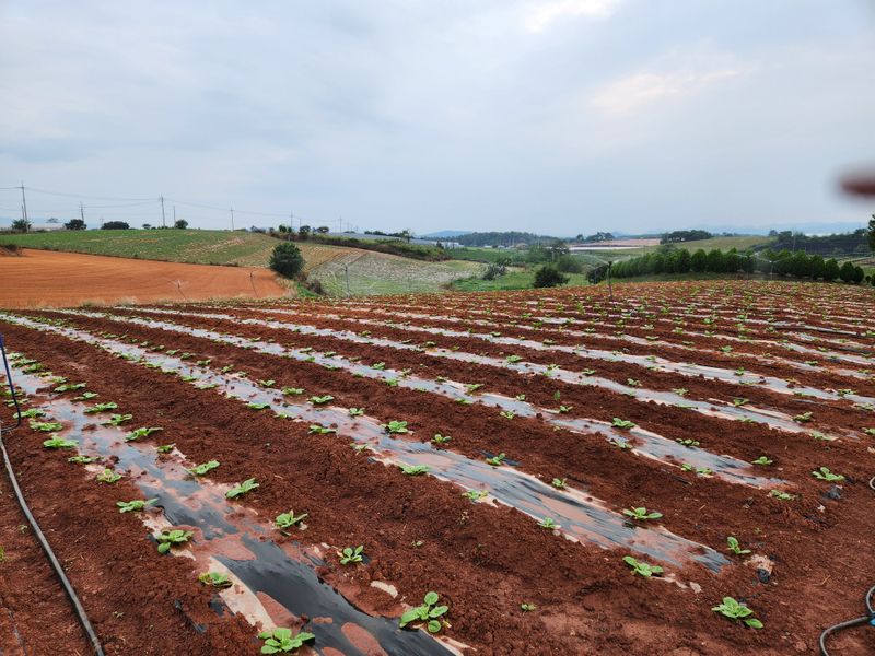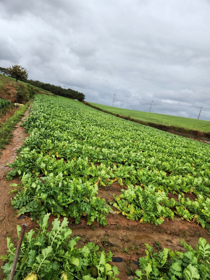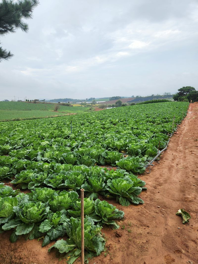 전날 비가 많이 내려서 배추밭 에 가서 생존 확인하고 옴