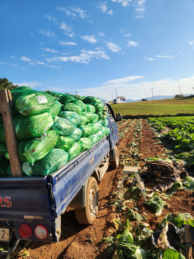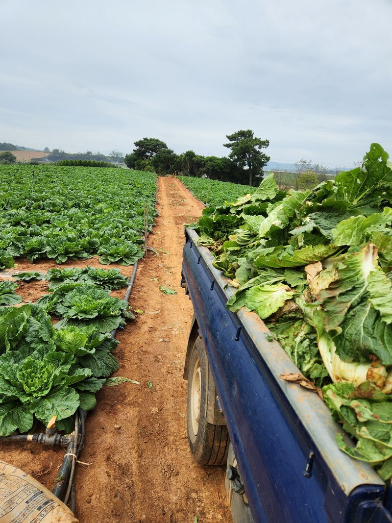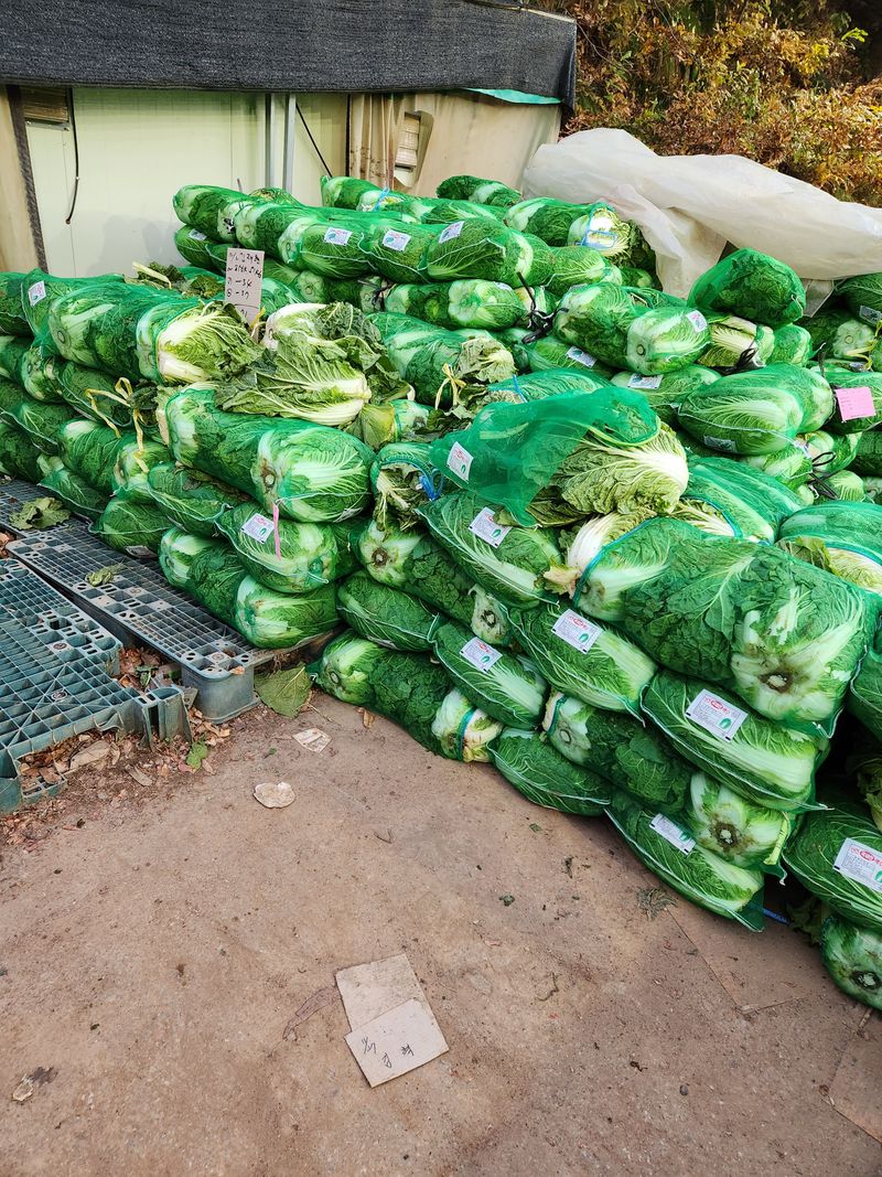 배추 작업해서 광주 농산물 경매장에 내기. 배추속이 꽉차서 너무 무거움 15k 이상 나가는것 같음