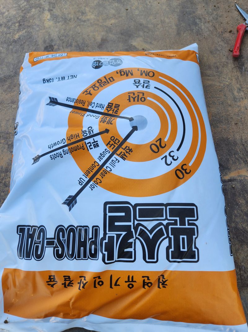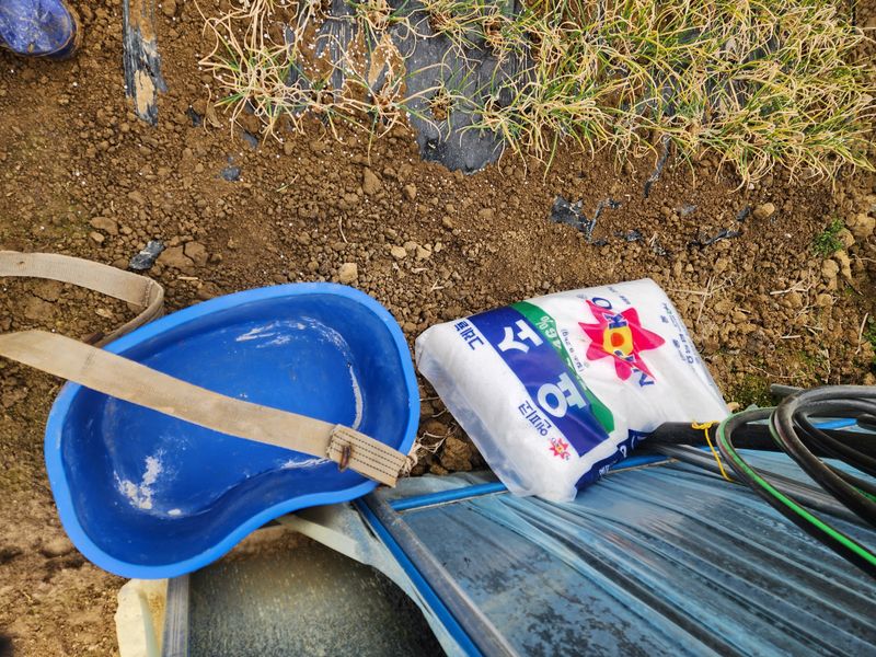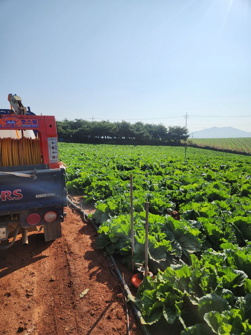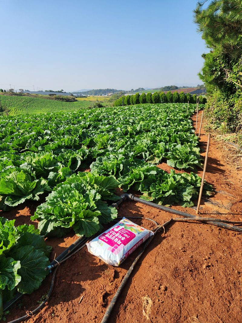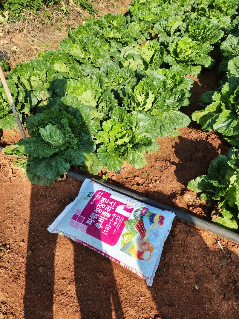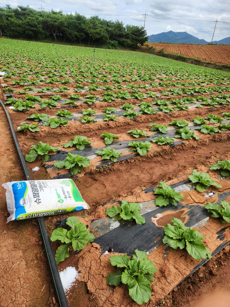 배추밭 물주고. 웃거름 비료 NK 20kg 두포 살포 작업
